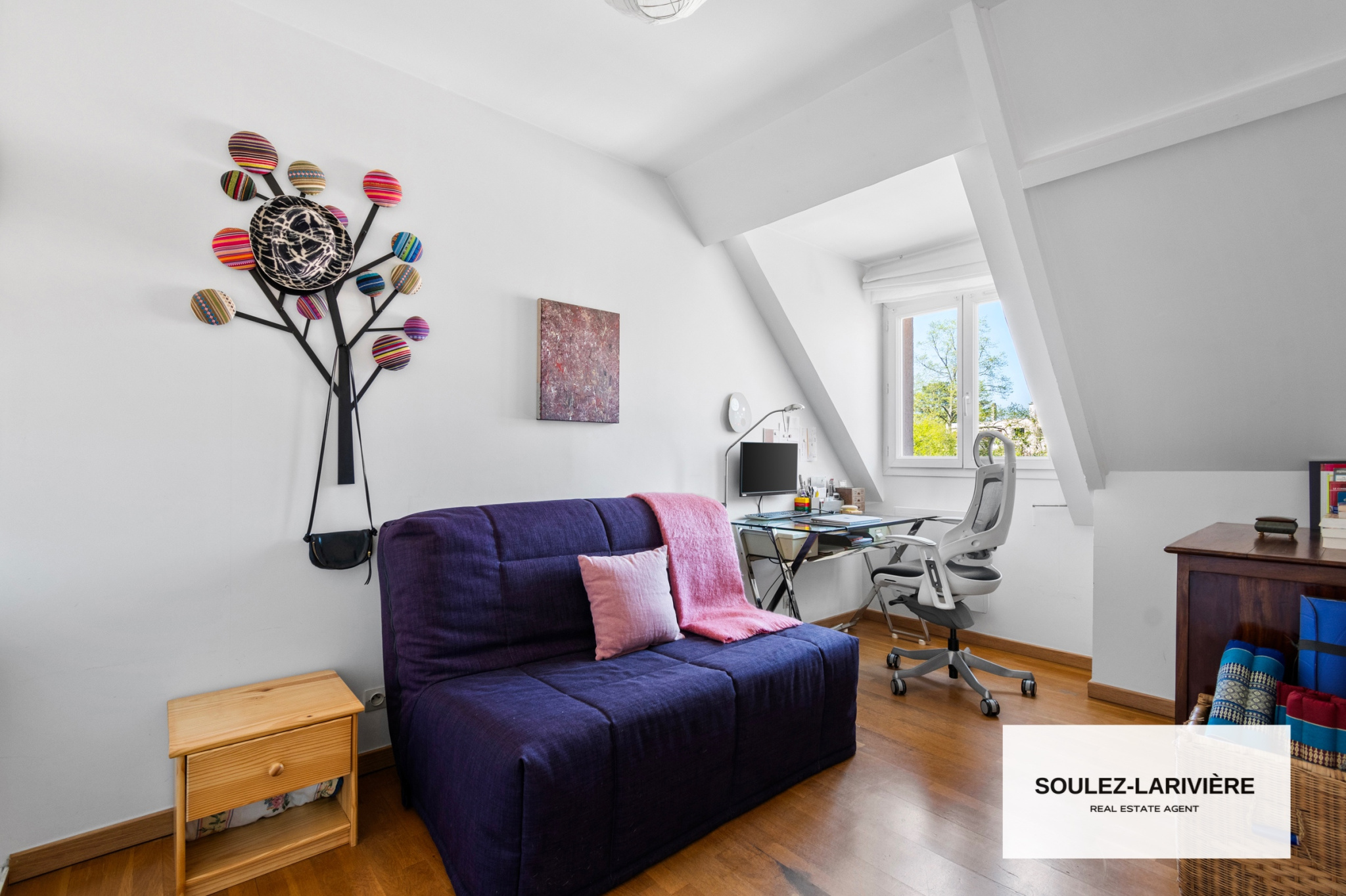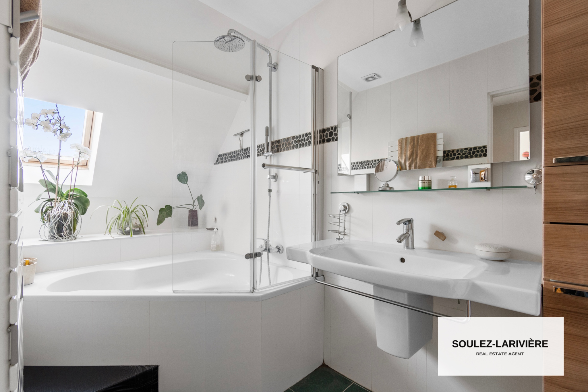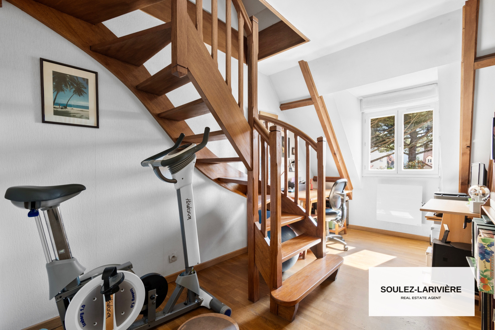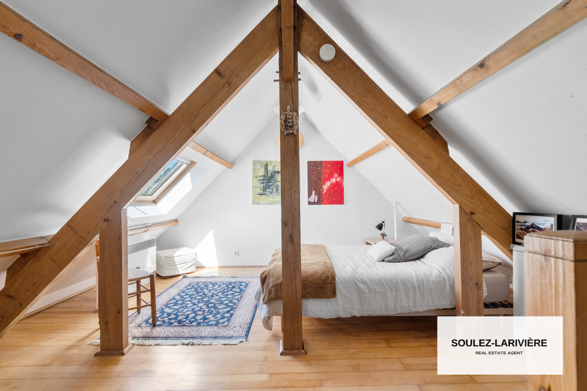 Au premier étage, vous retrouverez 2 chambres avec dressing intégré, un grand bureau avec dressing, une salle de bain moderne, un WC indépendant. Par l'escalier du bureau, vous trouverez une première suite de près de 20m2 au sol, sous comble avec salle d'eau, vasque et dressing.