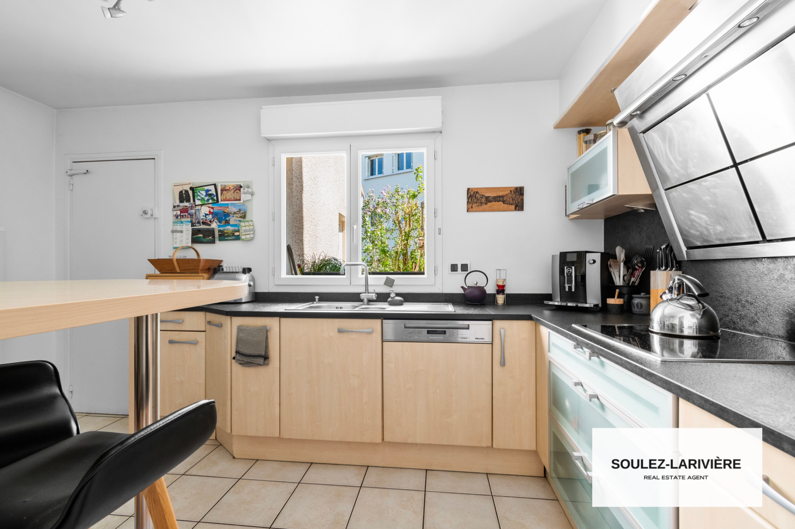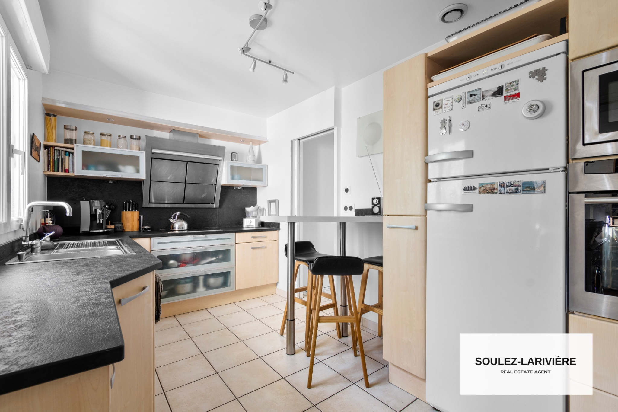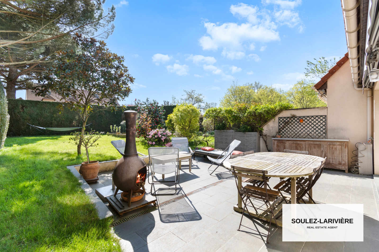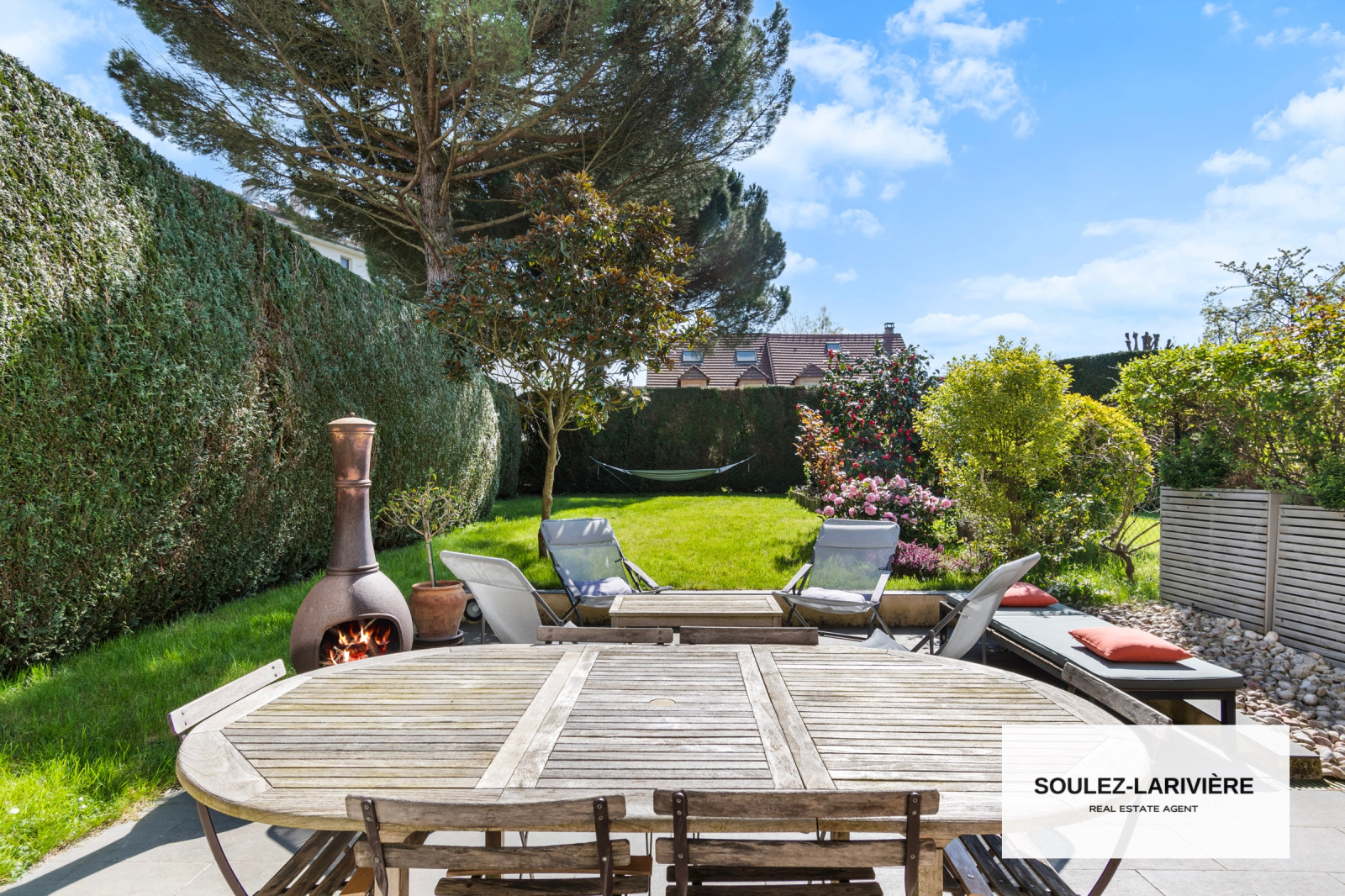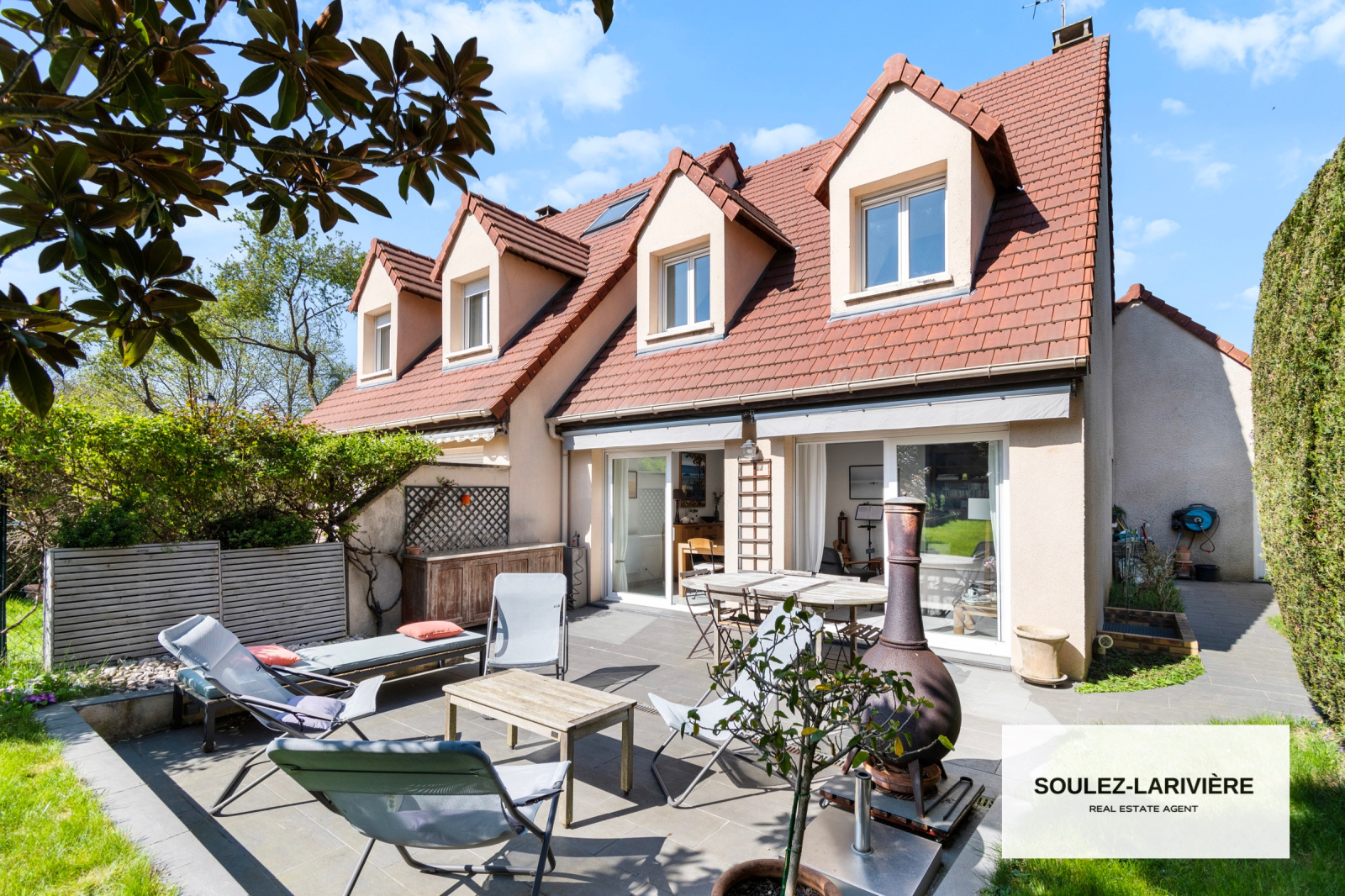 Construite en 1998, elle se compose au rez-de-chaussée : d'une entrée avec dressing, d'un double séjour de 30m2 (possibilité d'y installer une cheminée, insert ou poële) donnant sur une terrasse de 30m2 et sur le jardin clos et arboré de près de 300m2 (grand pin, magnolia grandiflora, camélia, lillas..), d'une cuisine indépendante aménagée par le cuisiniste NOLTE (Plan de travail en granit et équipements NEFF), d'un WC d'invité avec lave main et d'une buanderie avec un deuxième accès au jardin par son espace potager.