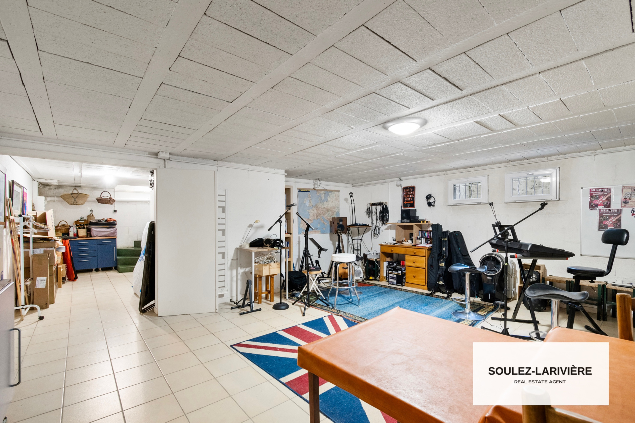Au sous-sol, une pièce faisant office d'atelier, garde manger et cave à vin d'une surface de 15m2, un dégagement, et une grande pièce de plus de 30m2 pouvant faire office de salle de jeux, musique ou salle de cinéma.