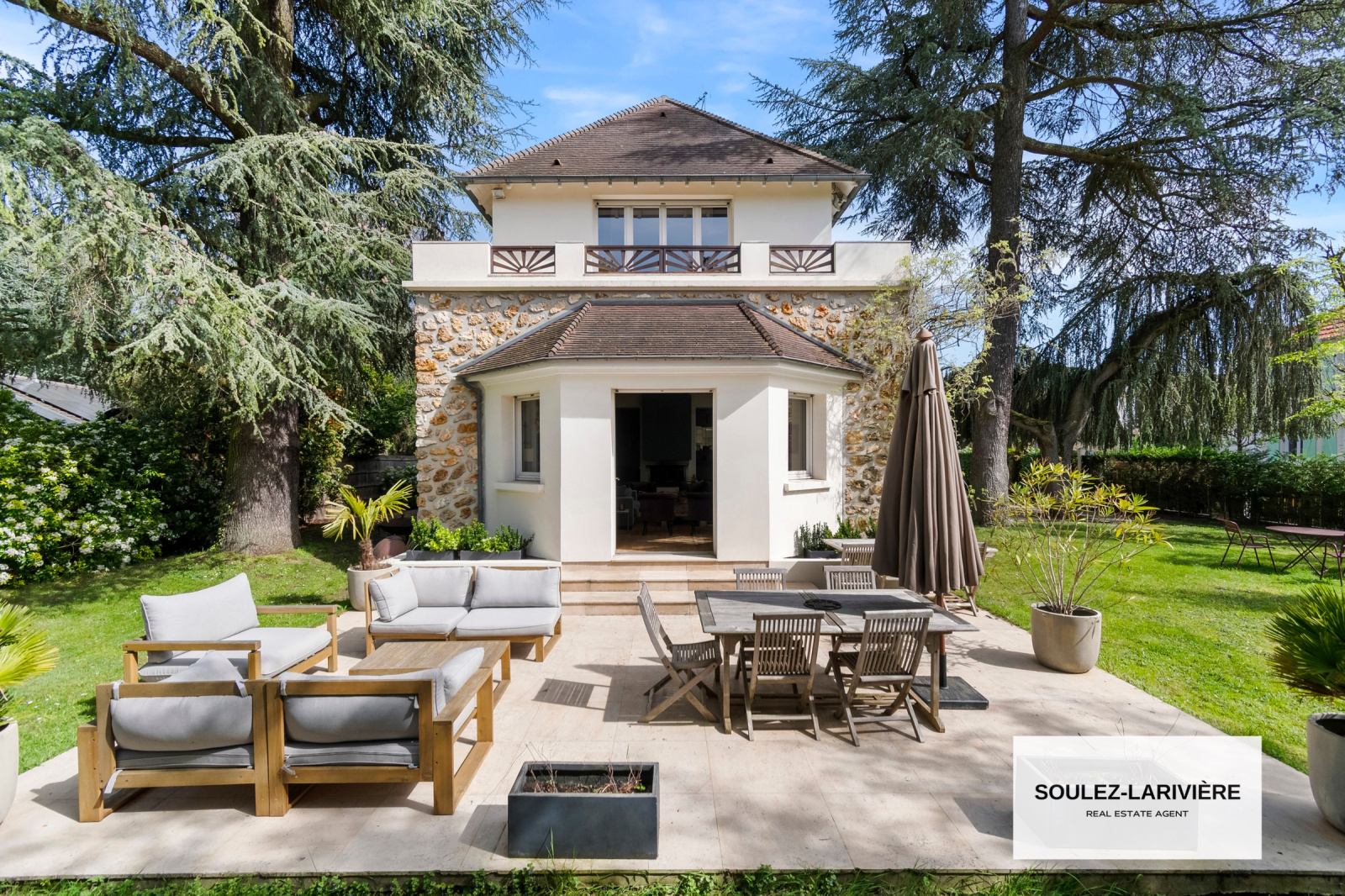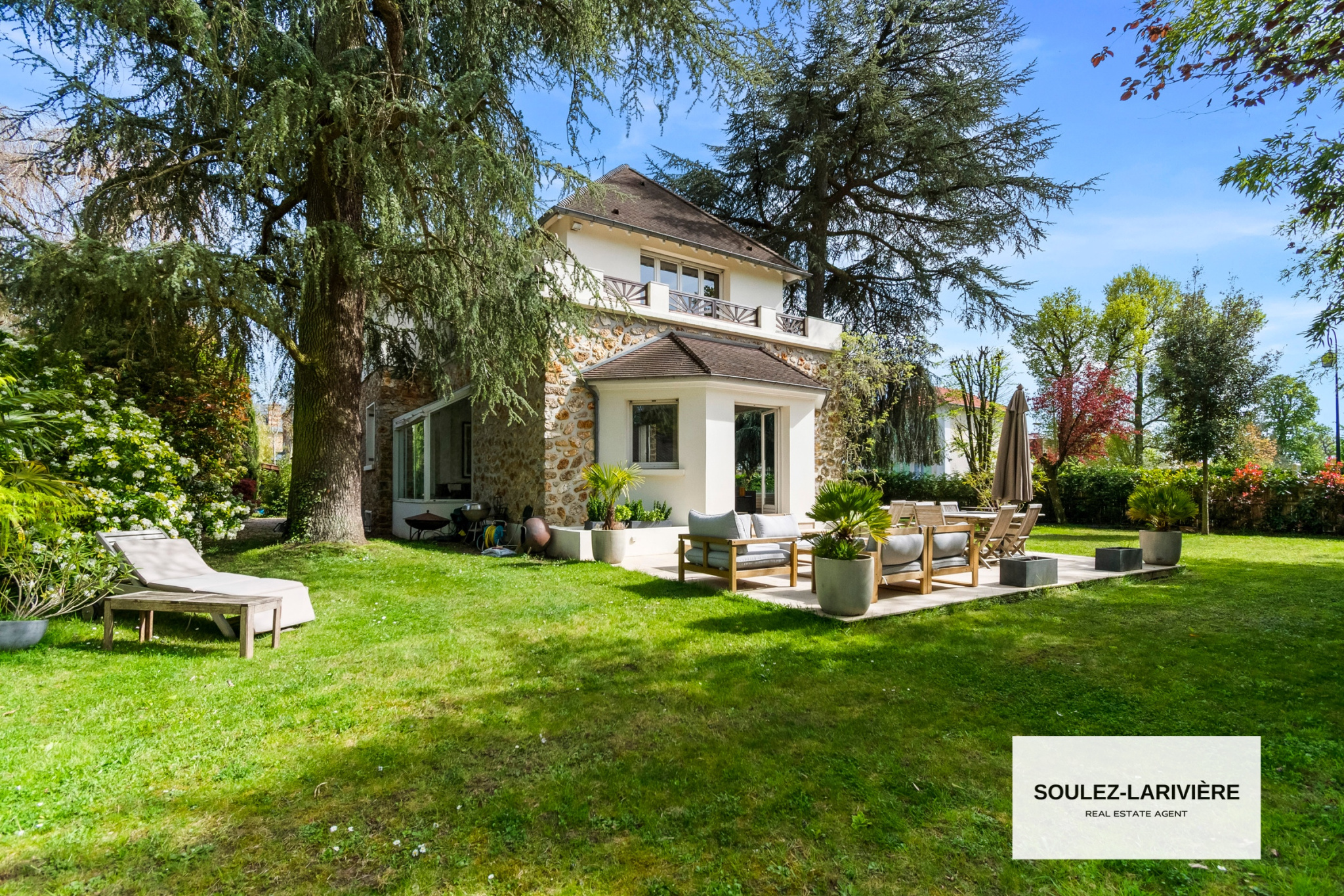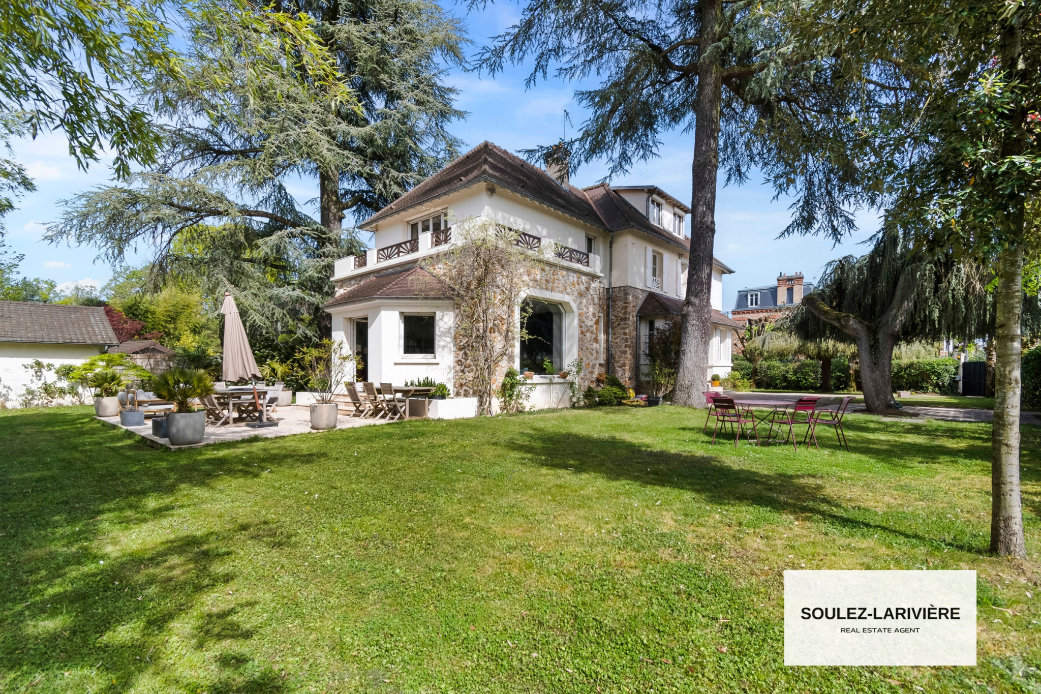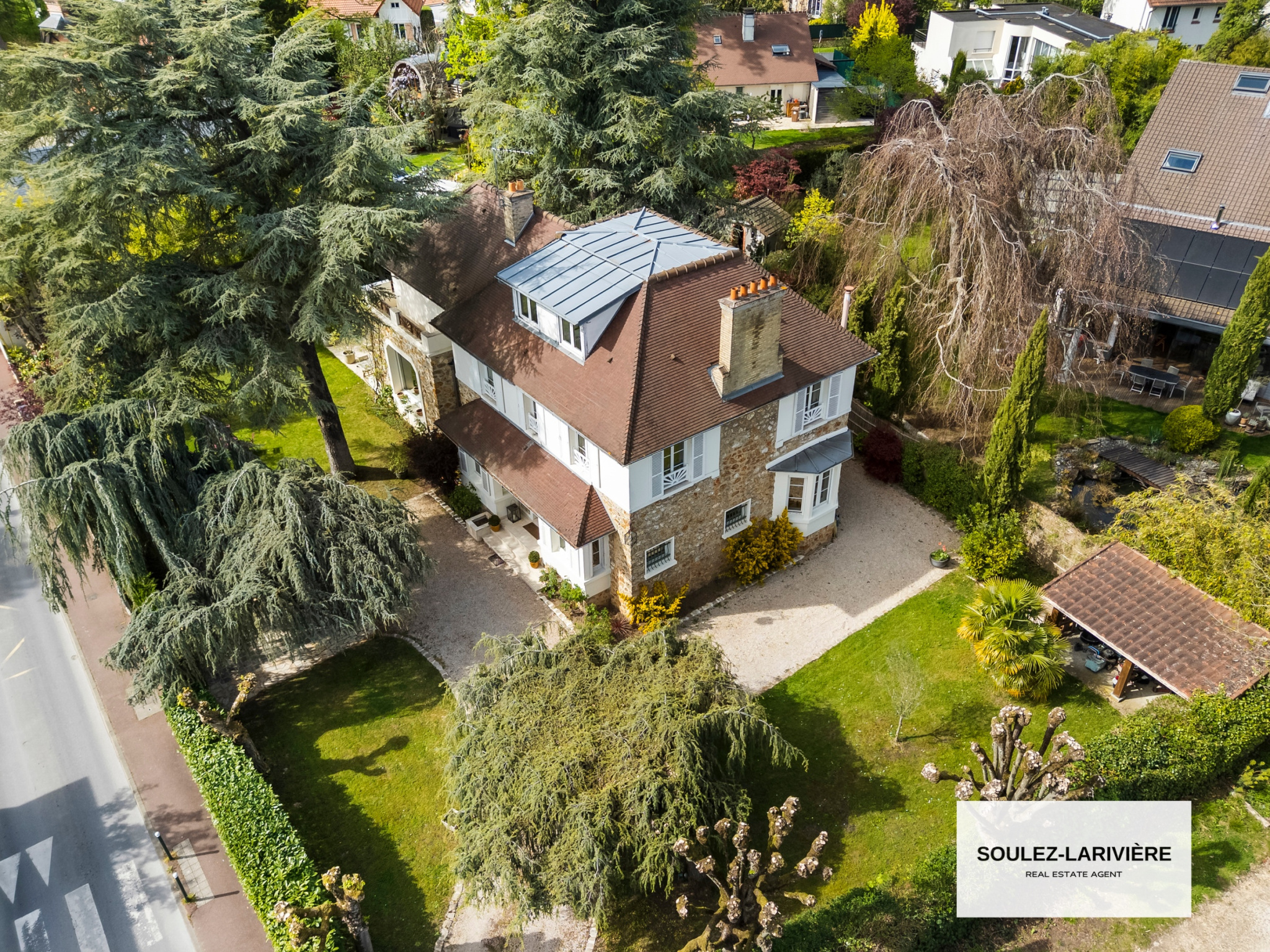 Situé sur le plateau de Vaucresson, dans le secteur de la division Théry, nous vous proposons à la vente cette propriété de charme de 267m2 habitables (308m2 au sol hors sous-sol) composé de 10 pièces principales. La propriété s'étend sur une parcelle de 1076m2. Elle se compose d'une entrée spacieuse donnant accès sur la triple pièce de réception composé de la salle à manger situé sous une verrière zénithale et d'un vaste séjour équipé d'une cheminée en pierre fonctionnelle. Cette large pièce de réception offre une superficie totale de près de 60m2 avec une belle hauteur sous le plafond et une triple exposition donnant sur chaque espace extérieur de la maison. Une cuisine indépendante entièrement aménagée et équipée est à proximité de la grande pièce à vivre. Vous retrouverez un salon TV de près de 20m2 avec cheminée. Ce salon donne sur un grand bureau avec une cheminée Art Déco. Au premier étage, vous retrouverez 4 chambres dont une suite parentale de 30m2 avec salle de bains, dressings et balcons ainsi qu'une deuxième de salle de bains et un toilette à disposition des trois autres chambres. Au deuxième étage, deux chambres et un espace sous combles isolé et aménagé pouvant faire office de pièce de jeux, bureau supplémentaires etc.. Un sous-sol entièrement aménagé d'une superficie de 80m2 qui offre de multiples possibilités comme une salle de cinéma, salle de jeux ou salle de fêtes. Cette propriété a conservé tout son charme de l'ancien (parquet en chêne massif, cheminée d'époque, hauteur sous plafond