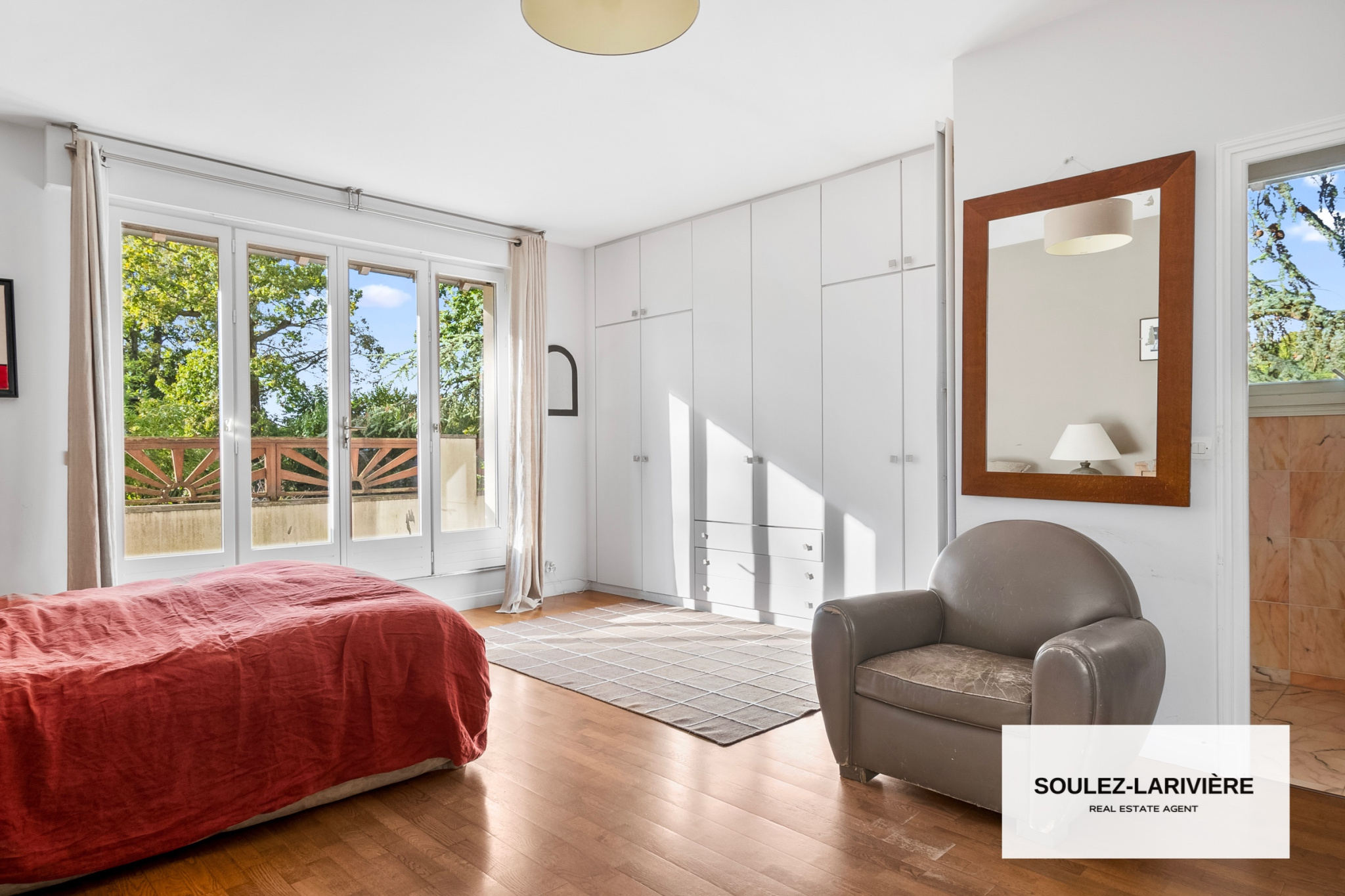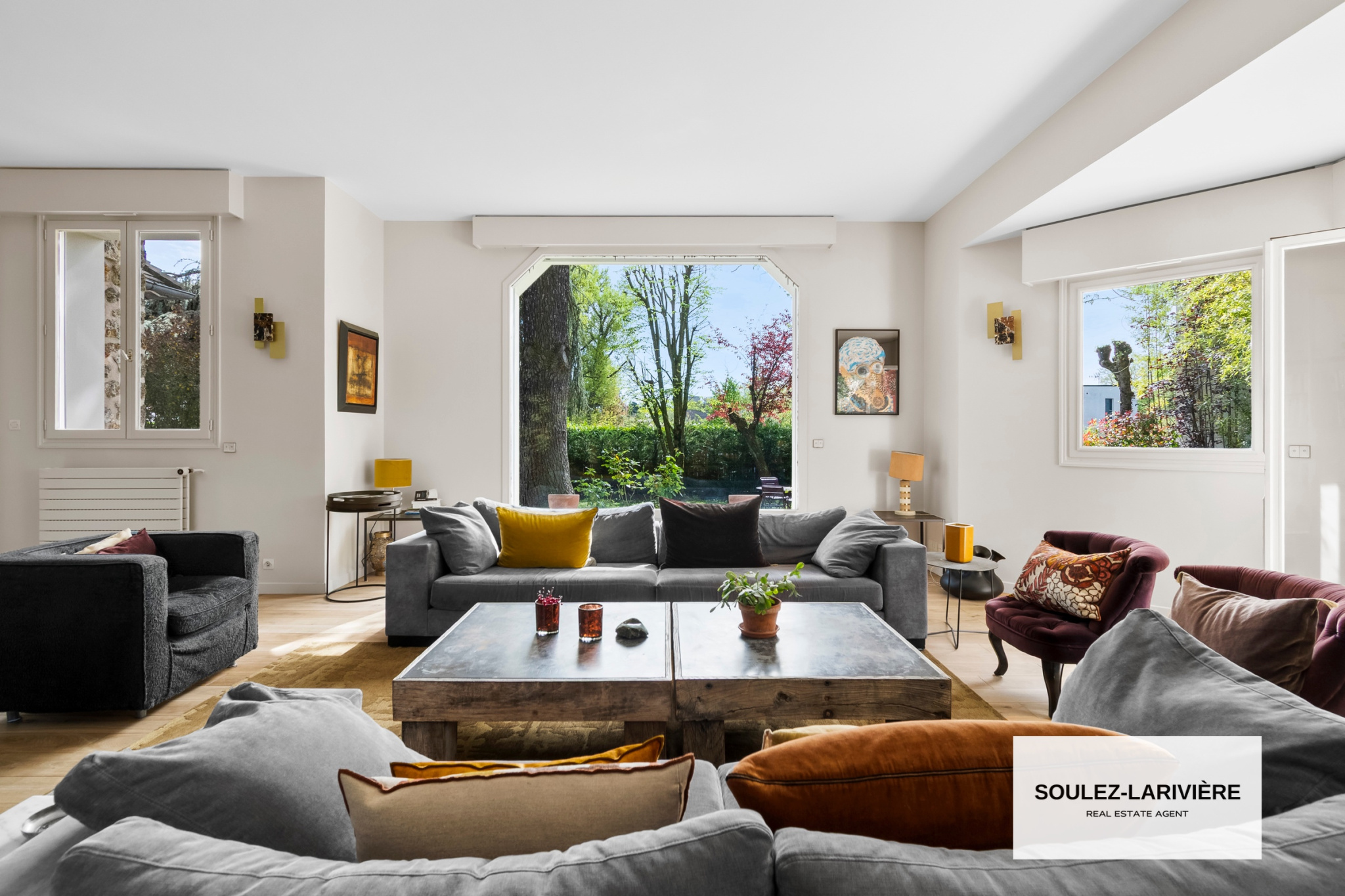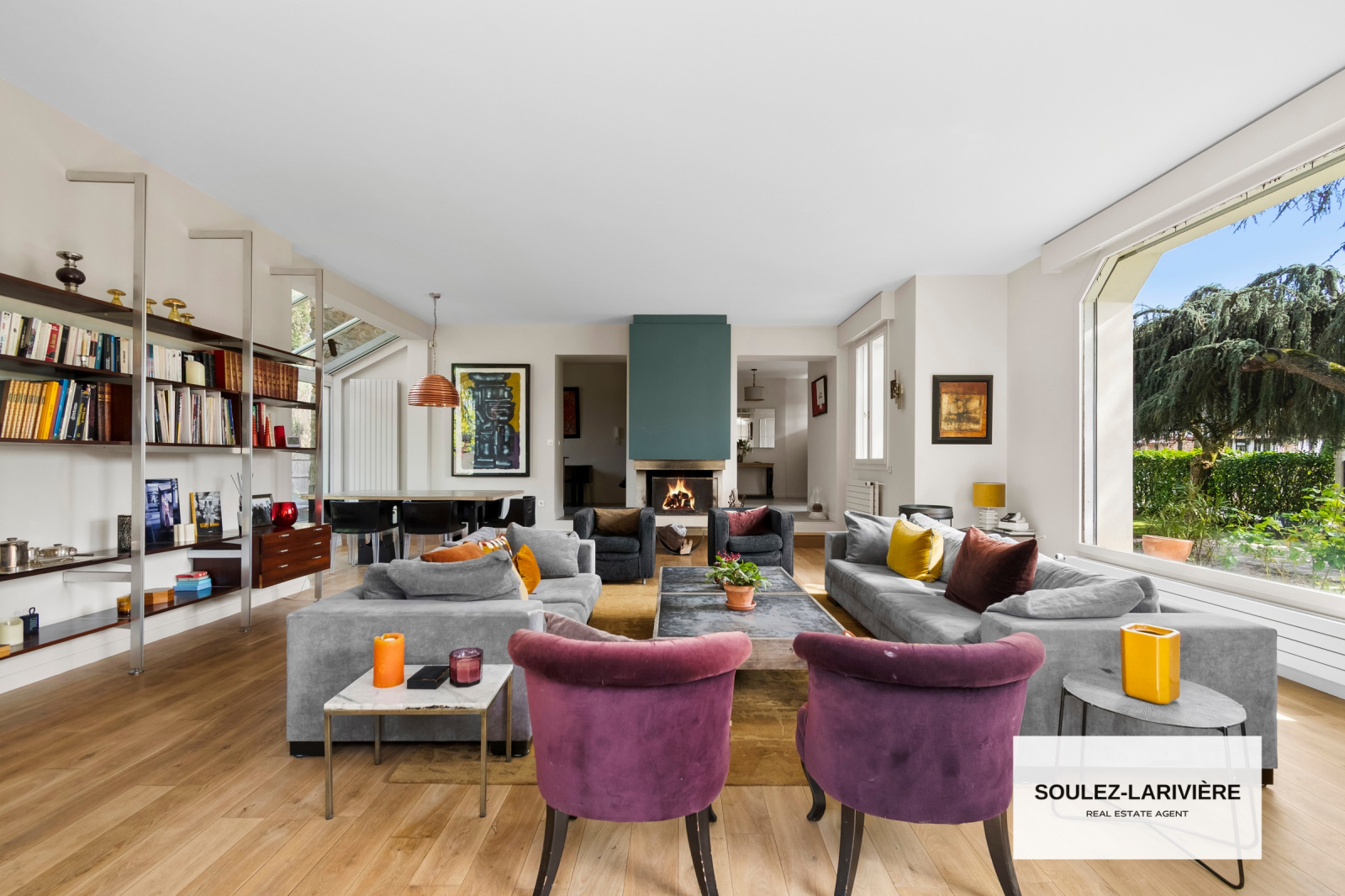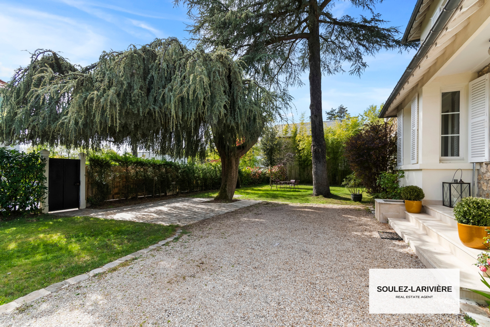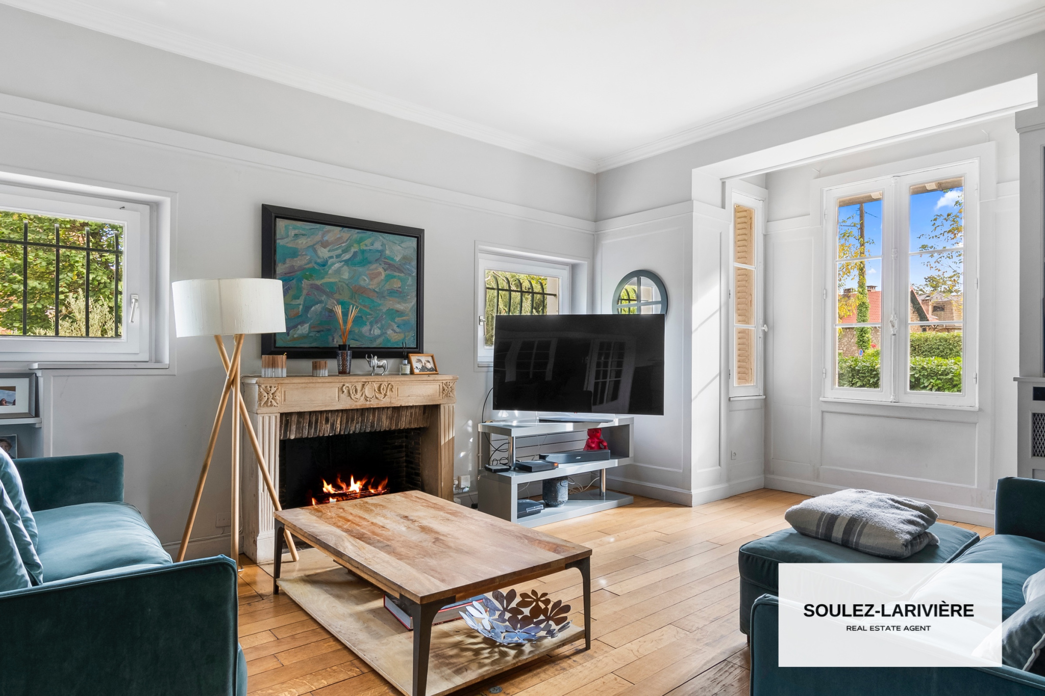 Situé sur le plateau de Vaucresson, dans le secteur de la division Théry, nous vous proposons à la vente cette propriété de charme de 267m2 habitables (308m2 au sol hors sous-sol) composé de 10 pièces principales. La propriété s'étend sur une parcelle de 1076m2. Elle se compose d'une entrée spacieuse donnant accès sur la triple pièce de réception composé de la salle à manger situé sous une verrière zénithale et d'un vaste séjour équipé d'une cheminée en pierre fonctionnelle. Cette large pièce de réception offre une superficie totale de près de 60m2 avec une belle hauteur sous le plafond et une triple exposition donnant sur chaque espace extérieur de la maison. Une cuisine indépendante entièrement aménagée et équipée est à proximité de la grande pièce à vivre. Vous retrouverez un salon TV de près de 20m2 avec cheminée. Ce salon donne sur un grand bureau avec une cheminée Art Déco. Au premier étage, vous retrouverez 4 chambres dont une suite parentale de 30m2 avec salle de bains, dressings et balcons ainsi qu'une deuxième de salle de bains et un toilette à disposition des trois autres chambres. Au deuxième étage, deux chambres et un espace sous combles isolé et aménagé pouvant faire office de pièce de jeux, bureau supplémentaires etc.. Un sous-sol entièrement aménagé d'une superficie de 80m2 qui offre de multiples possibilités comme une salle de cinéma, salle de jeux ou salle de fêtes. Cette propriété a conservé tout son charme de l'ancien (parquet en chêne massif, cheminée d'époque, hauteur sous plafond