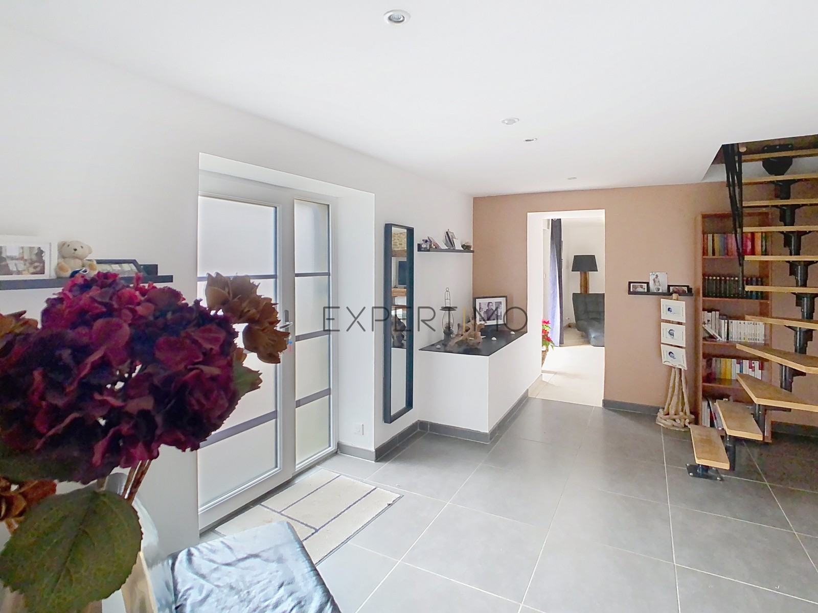 Le rez de chaussée est intégralement chauffé grâce à un puissant poêle à granulés, discret car intégré dans la cuisine et diffusant dans l'entrée et le salon...