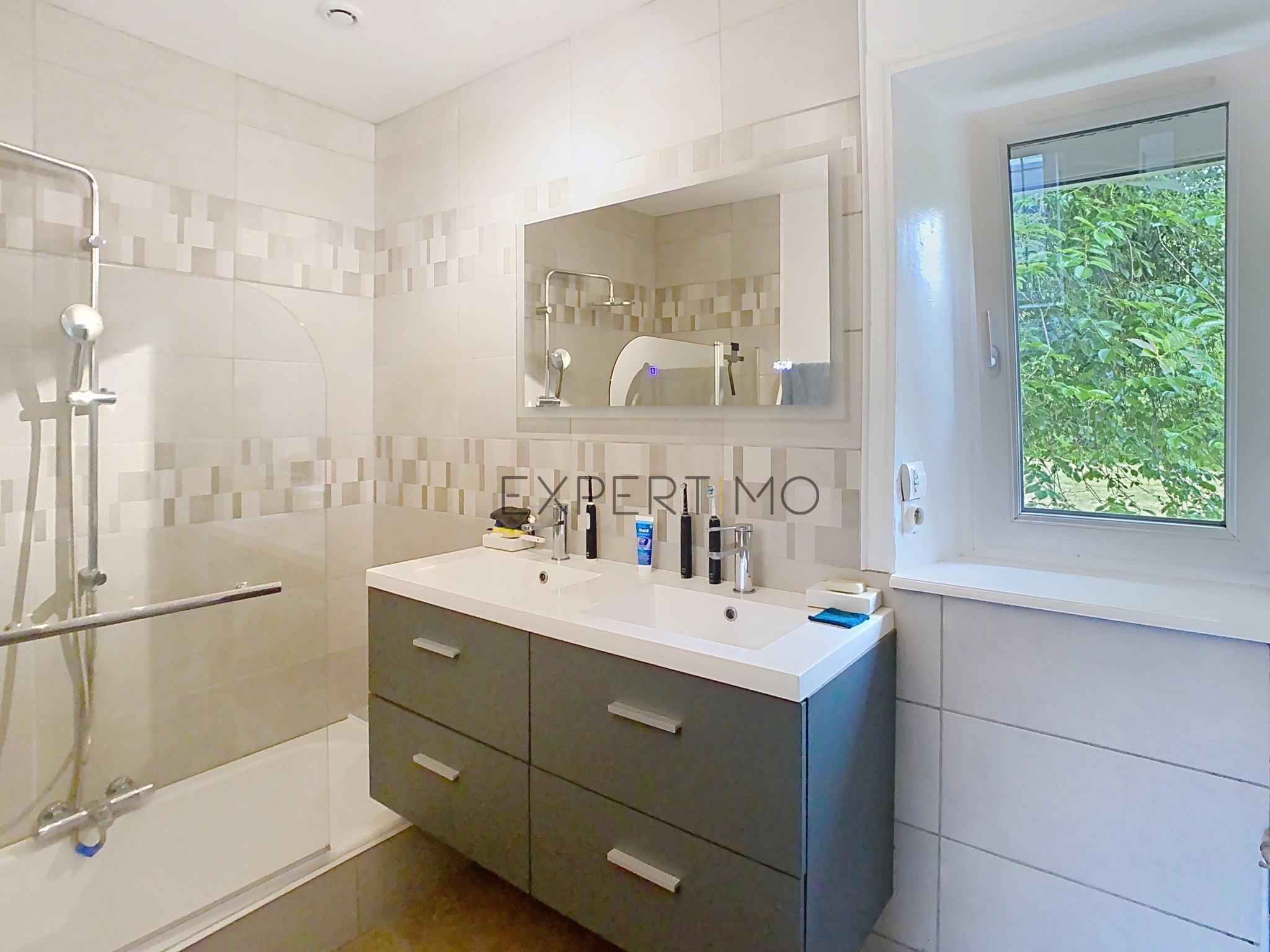 Elle dispose au rdc d'une vaste entrée de 15m², d'un penderie/buerau de 6 m², d'une cuisine aménagée et équipée ouverte sur le séjour sur un total de 45m², d'un salon de 27 m², d'une buanderie de 12.50 m² (possibilité chambre et sde ), d'un wc.