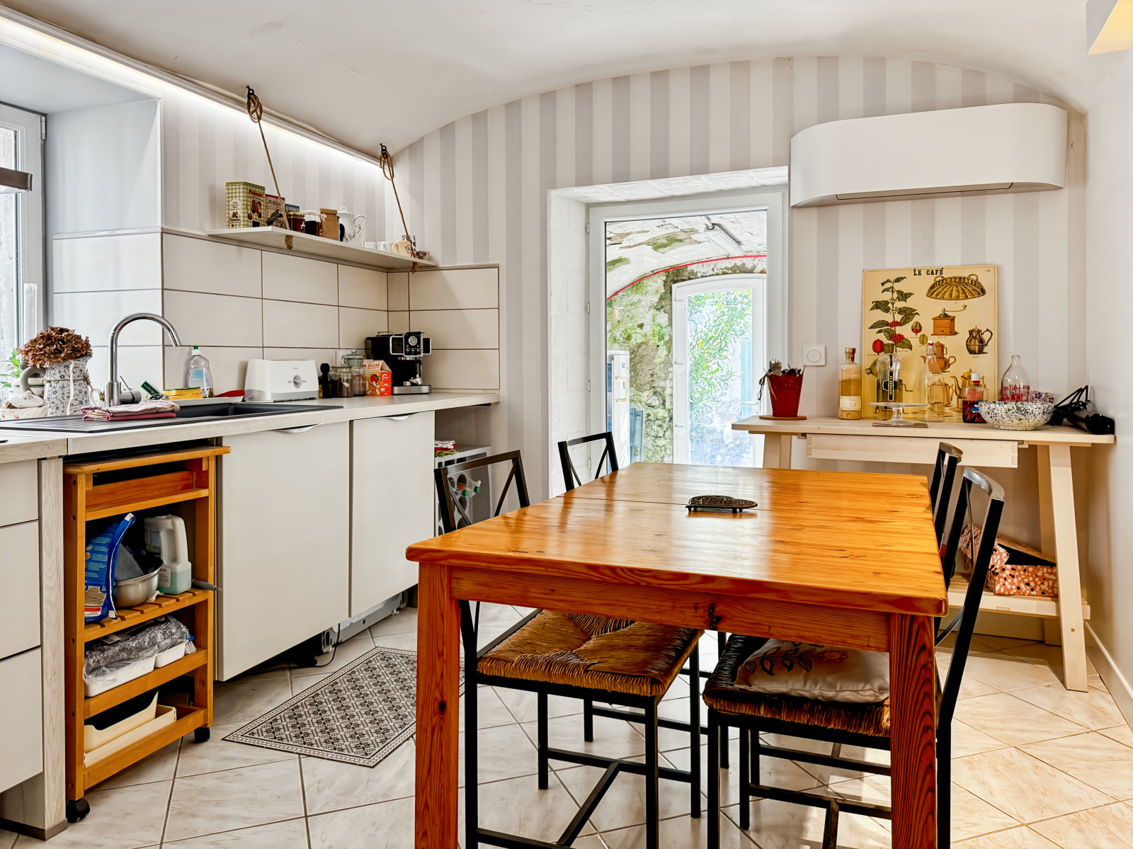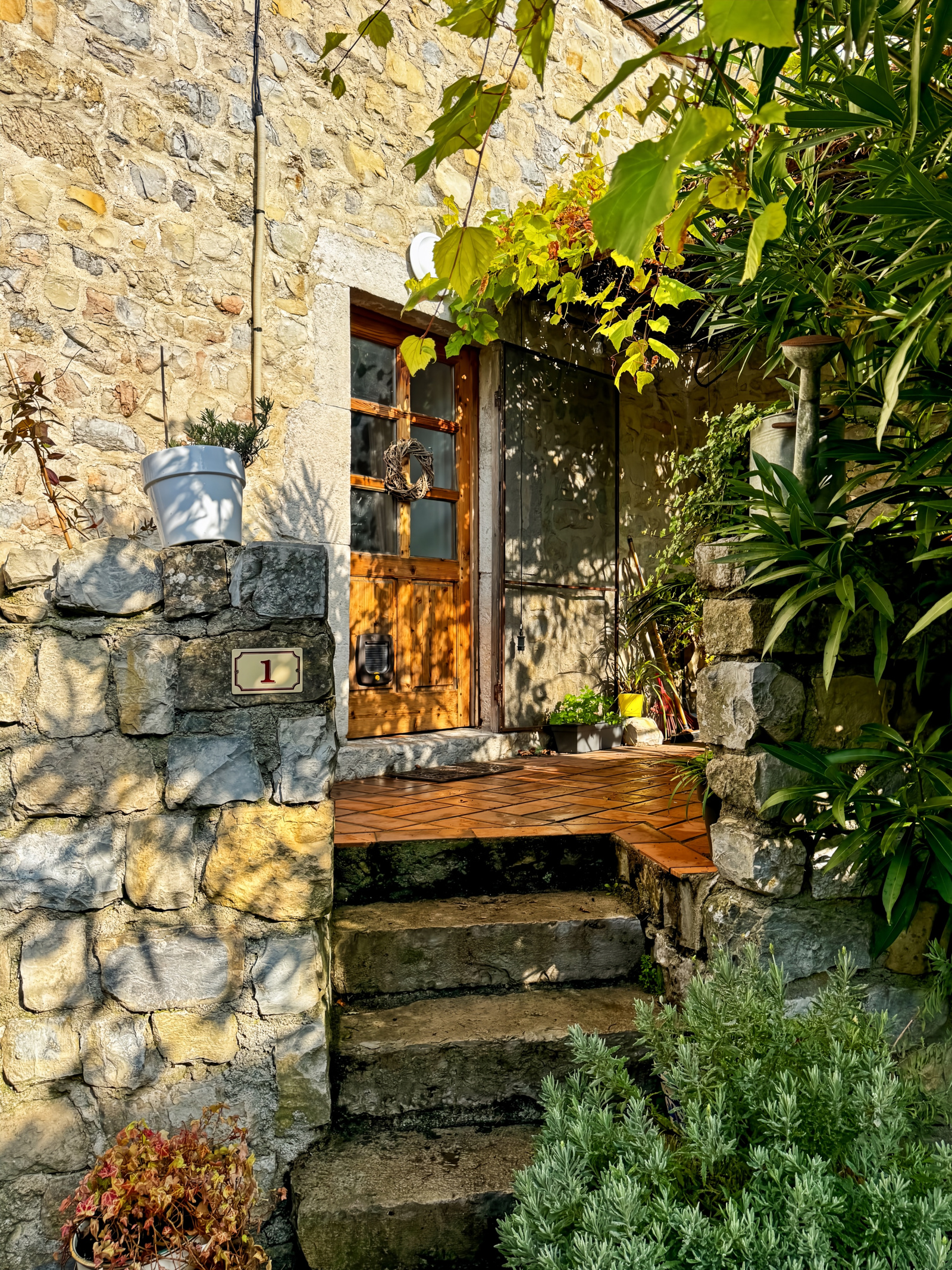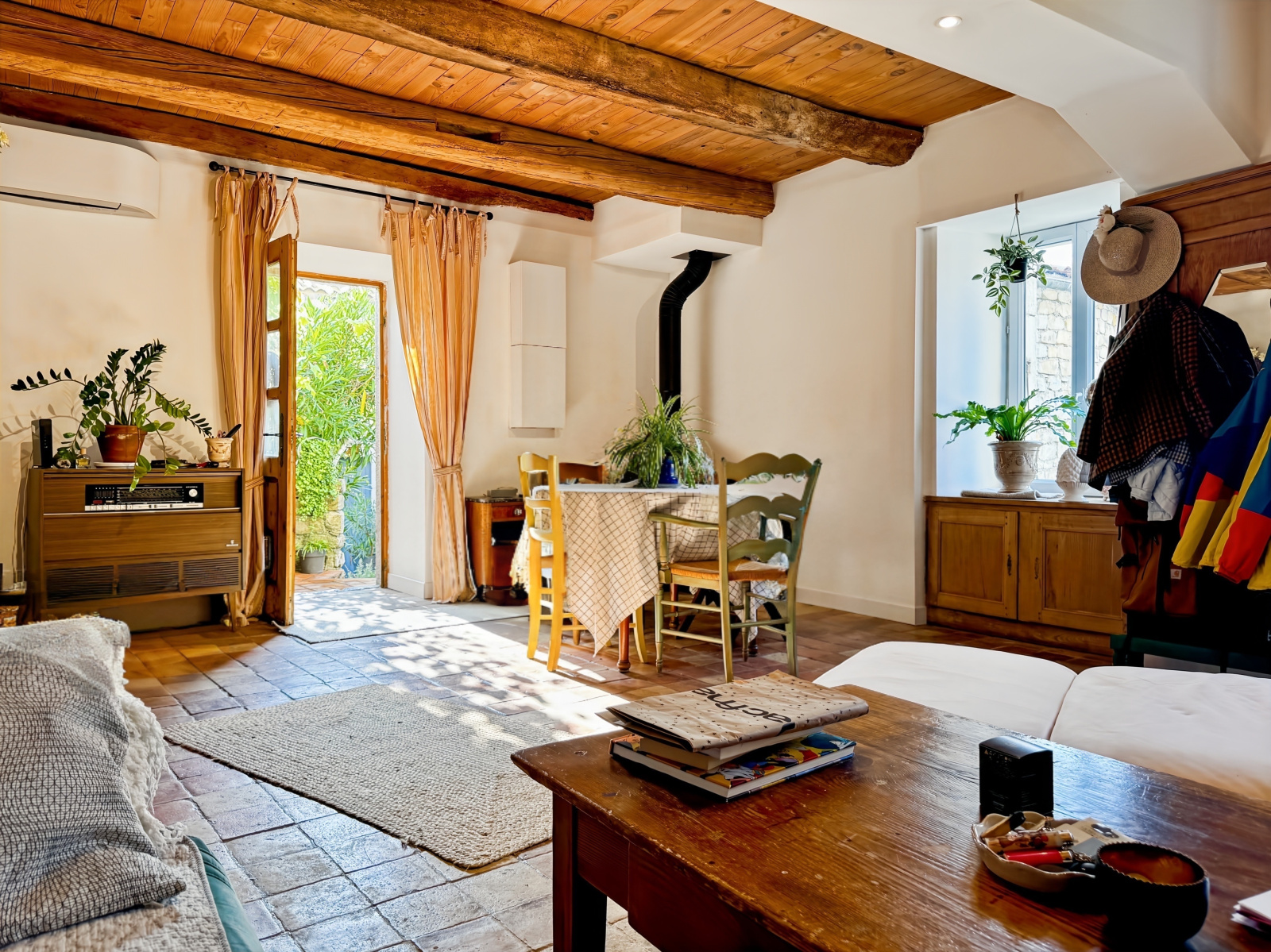Rénovation soigneuse et aboutie où le Charme et l’authenticité ont été préservés (Murs en Pierre apparent, Carrelage ancien en terre cuite, Poutres apparentes…) Chauffage Mixte (Poêle à bois et Climatisation Réversible), Menuiserie PVC double vitrage.