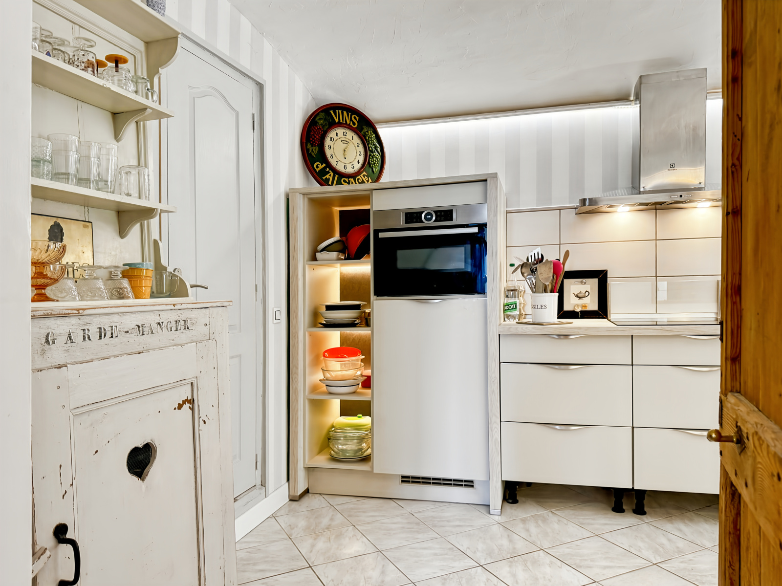 Véritable Petit nid douillet composé d’une Pièce de Vie (Salon / Sam) lumineuse, Cosy et Chaleureuse avec son Poêle à bois JOTUL, d’une très Jolie Cuisine entièrement équipée, d’un espace Buanderie avec Douche et WC et d’une Cave.