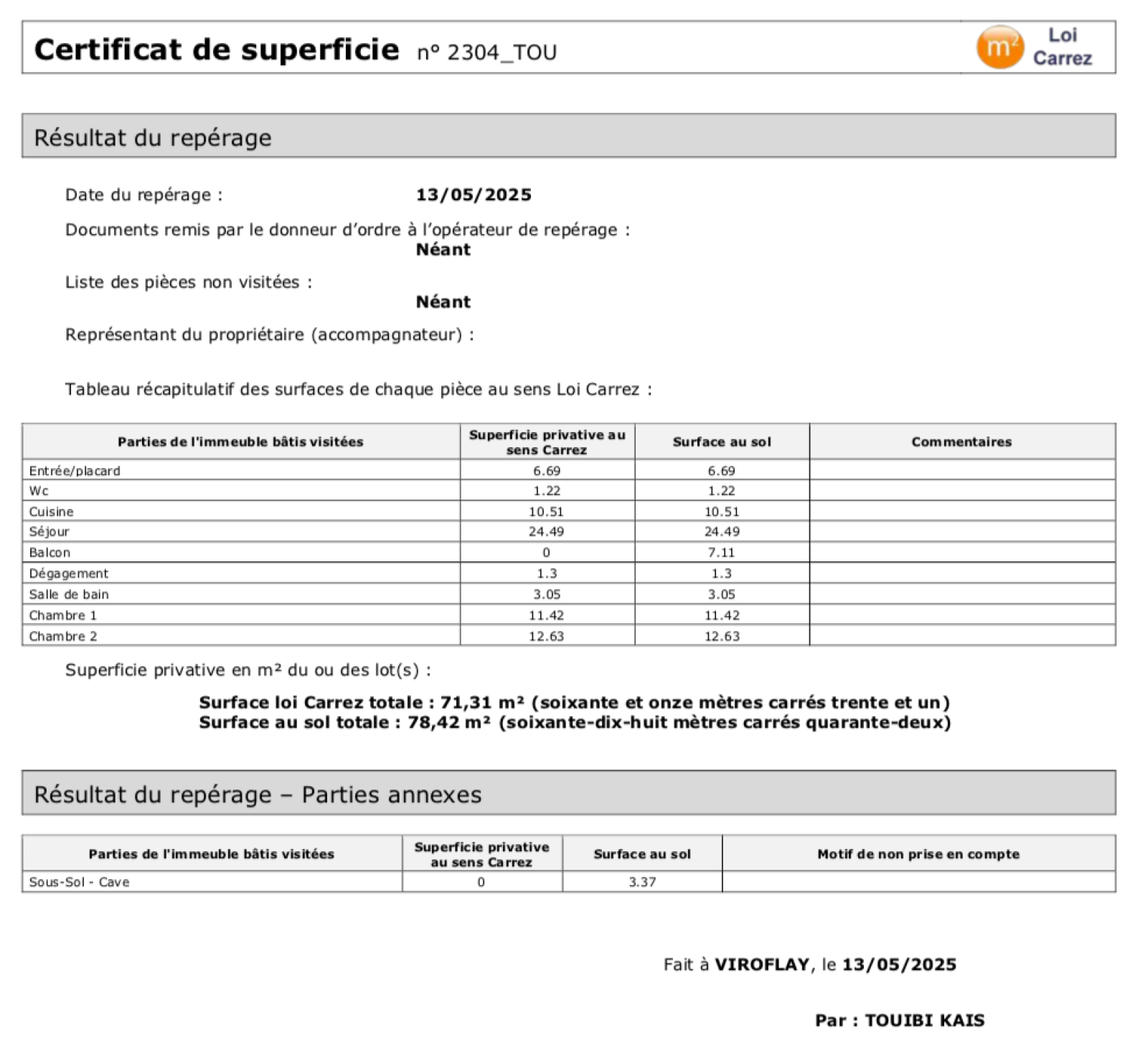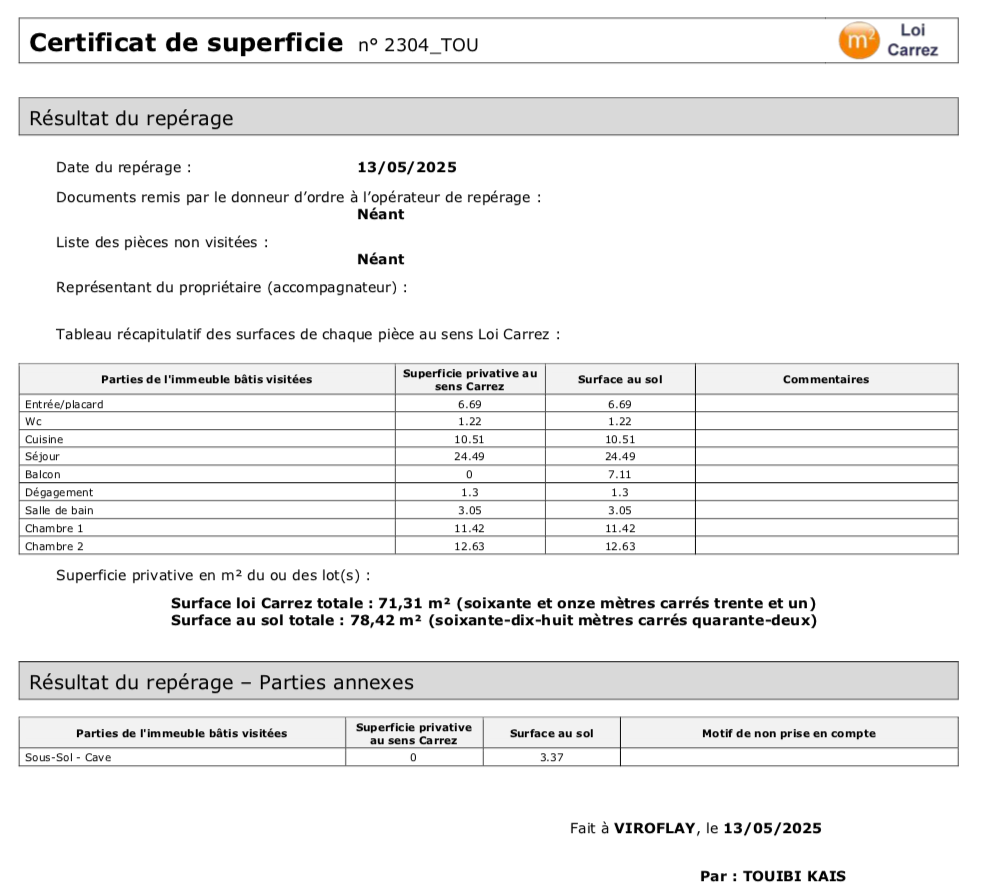 D'une superficie carrez de 71,31m2, il se compose d'une entrée avec dressing intégré, d'un WC d'indépendant, d'un double séjour / salle à manger exposé plein Sud d'une superficie de 25m2 s'ouvrant sur un large balcon couvert de 7m2, d'une cuisine indépendante entièrement équipée avec des matériaux et équipements de qualités (électroménagé DE DIETRICH), d'une salle de bains avec vasque et baignoire, d'un dégagement, deux chambres de 11,50m2 et 12,60m2. L'appartement dispose d'une cave ainsi que d'une place de parking en sous-sol sécurisée.