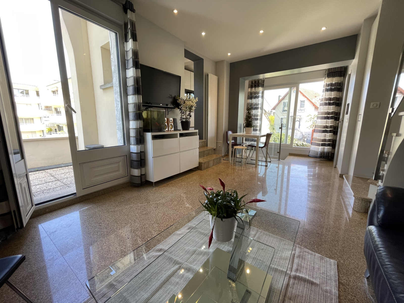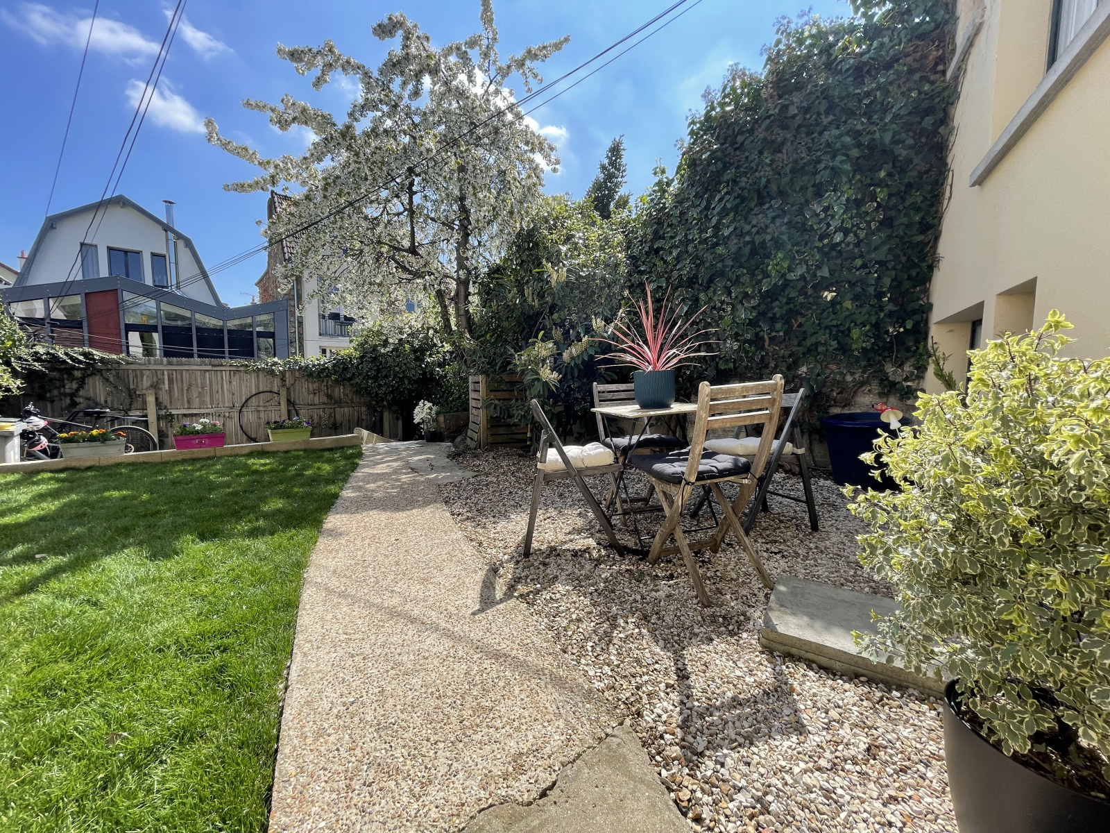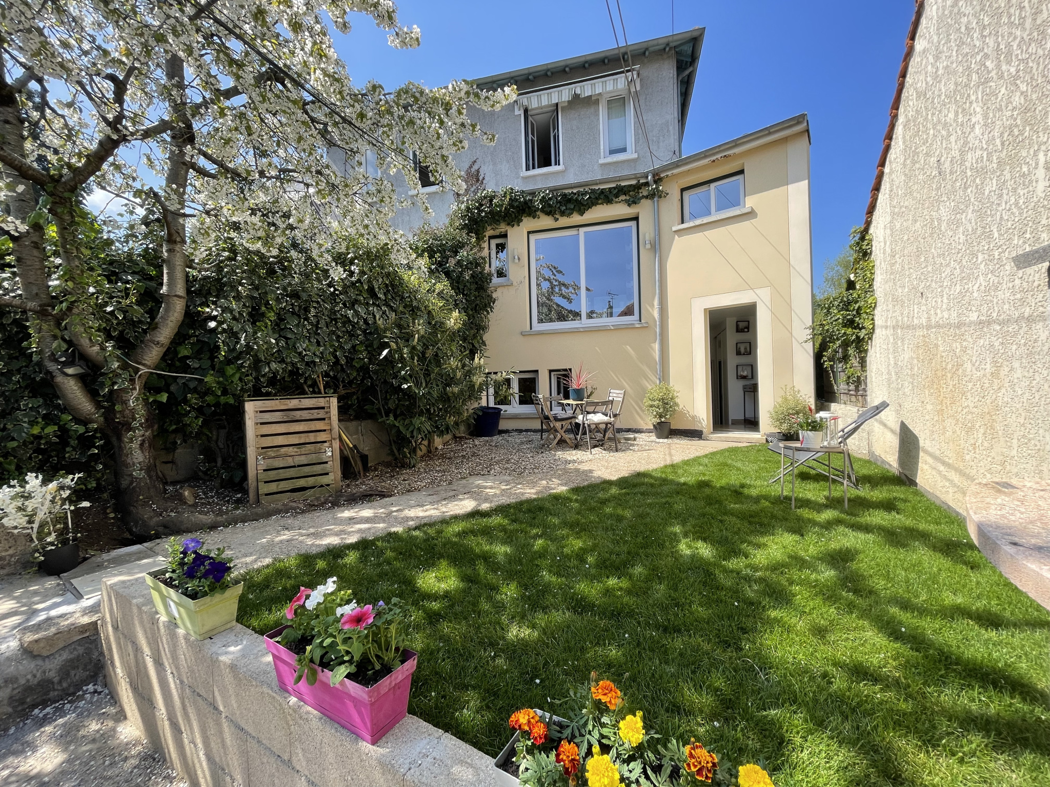*** BIEN VENDU *** VIROFLAY CENTRE- QUARTIER LE HARAS - MAISON DE VILLE OU TRIPLEX en plein centre de Viroflay avec JARDIN de 77m2 - EXPOSITION OUEST - EMPLACEMENT IDEAL à 5 minutes des commerces (boulangerie, marché, restaurant, bus) et à 400 m du RER C Viroflay Rive Gauche et 500m Viroflay Rive Droite - 2 places de PARKING en location avec faibles coûts. Maison de 100 m2 environ utiles (77 m2 habitables) + grand extérieur de 77 m2 avec jardin - Maison rénovée dans un très bon état avec actuellement 2 chambres et pouvant se transformer en 4 pièces (3ème chambre possible avec plan et devis) au calme et aménagée sur 3 plateaux. Dès votre arrivée, vous découvrirez la vaste terrasse avec barbecue de 77m2 avec coin pour stockage vélo. En rez de jardin, la maison vous offre une entrée avec dressing aménagé, une suite parentale avec coin bureau et sa salle d'eau privée complètement aménagée, une buanderie pour stockage, machines et chaudière. Au 1er étage, vous trouverez un salon avec cheminée donnant sur un balcon, une cuisine ouverte totalement équipée et wc séparés. Au 2ème étage, autre suite parentale avec chambre, dressing, placard et salle d'eau avec wc. Combles de 16m2 pour le stockage. Situation idéale à 5 minutes des commerces (boulangerie, marché, restaurant, bus) et à 400 m du RER C Viroflay Rive Gauche et 500m Viroflay Rive Droite, tramway T6 (Viroflay-Rive Gauche) *** Maison de ville sur 3 niveaux avec escaliers - IDEAL pour acquéreurs désirant une maison de ville très bien placée, au centre de Viroflay et avec un bel extérieur, colocation aisée, vous recherchez ce type de bien, venez vite la découvrir !***