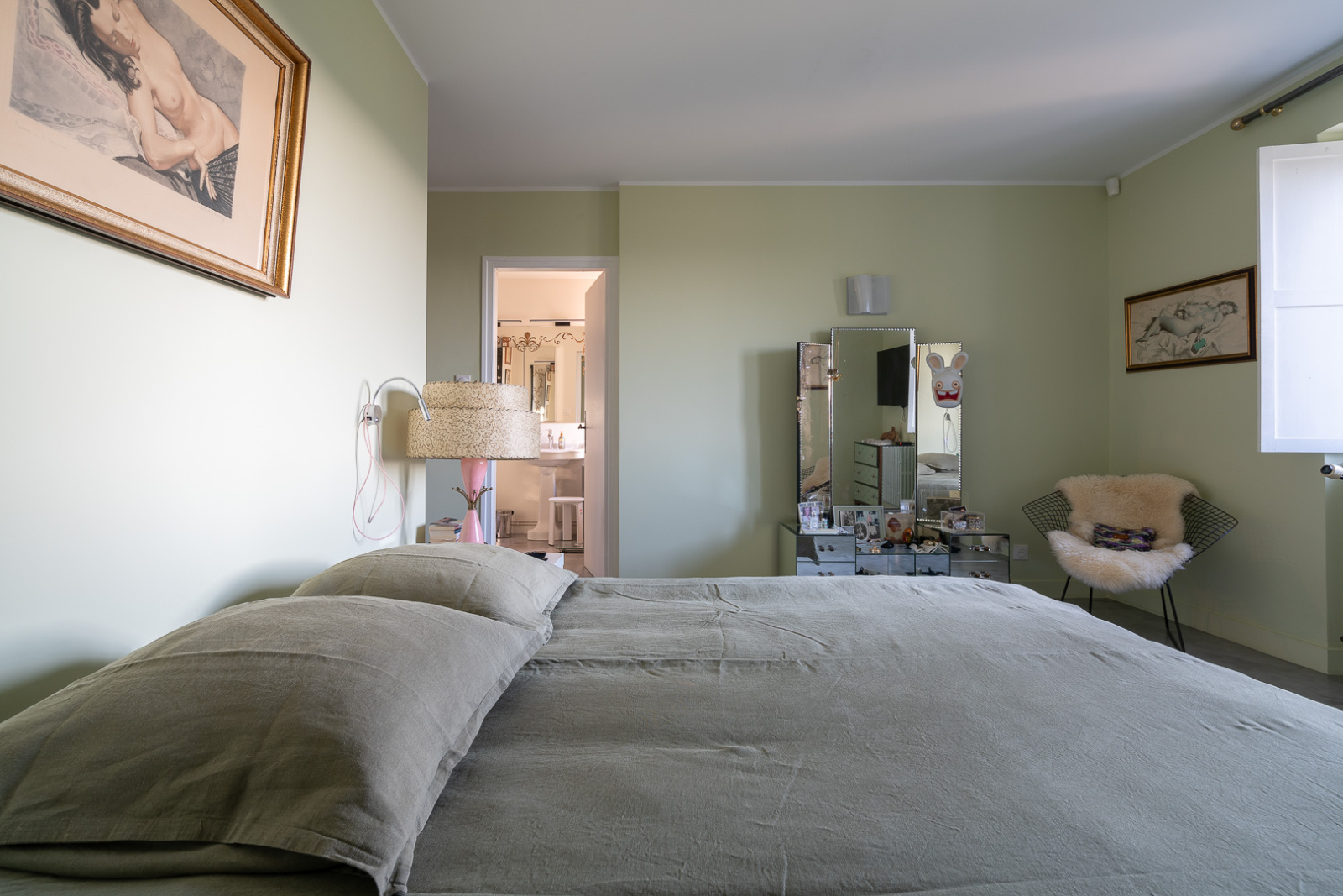 Deux escaliers situés de part et d'autre de la maison assurent l'accès à l'étage garantissant une intimité appréciable. Trois suites parentales, deux chambres, un grand dressing, un home cinéma et un wc composent l'étage.