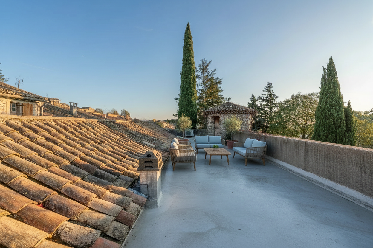 Atout supplémentaire : une terrasse avec vue imprenable sur le village et la campagne.