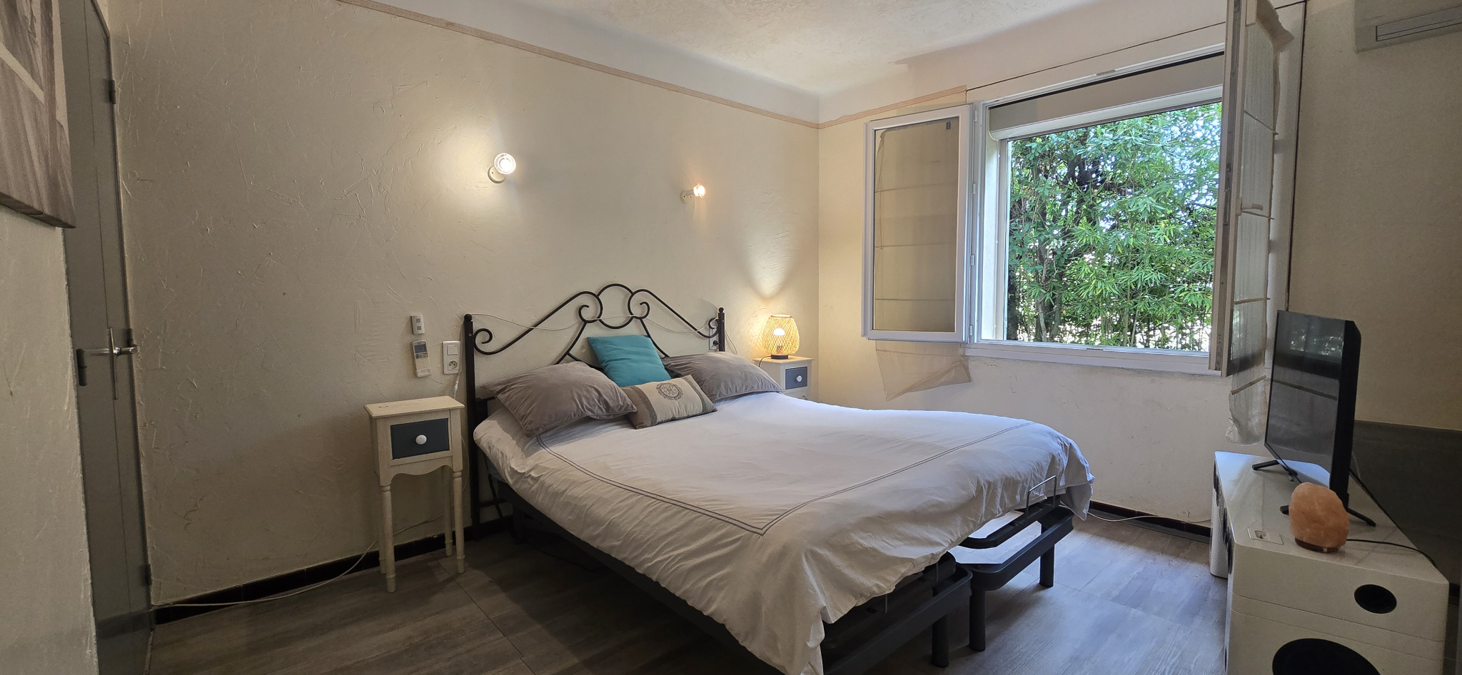 Le second logement également climatisé, développe 133 m² habitables. Il dispose d’un accès indépendant par l’extérieur, tout en restant relié intérieurement.