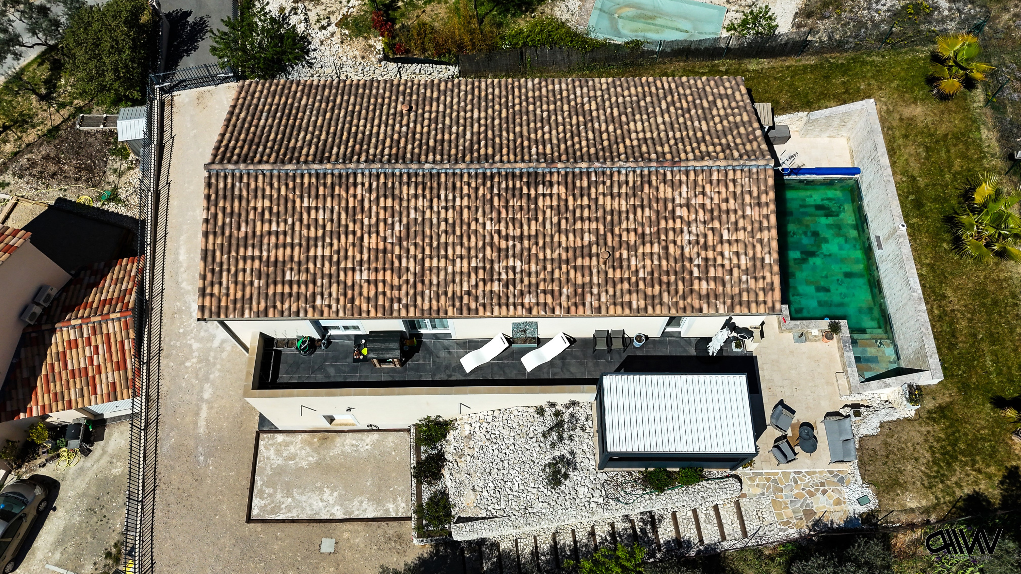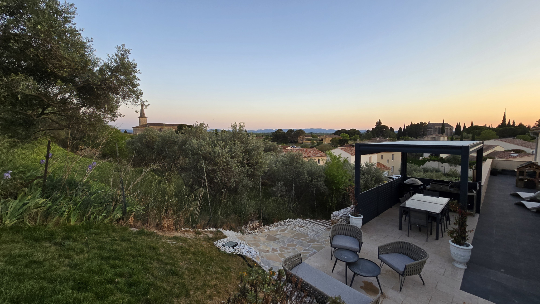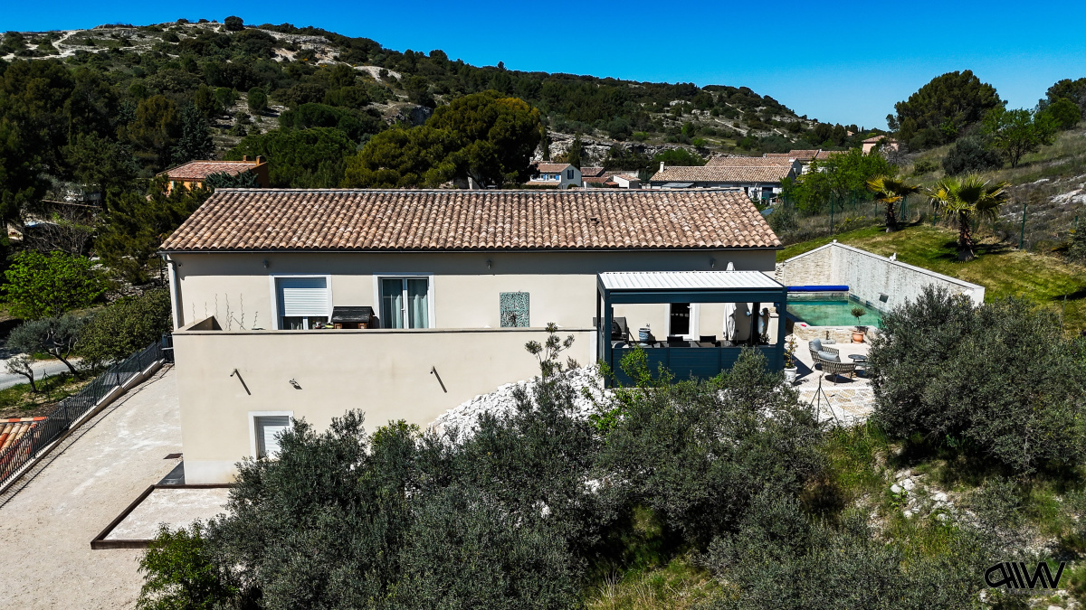 Développant 146 m² habitables sur un terrain de 847 m², elle offre une vue dégagée remarquable sur les Alpilles et des prestations haut de gamme.