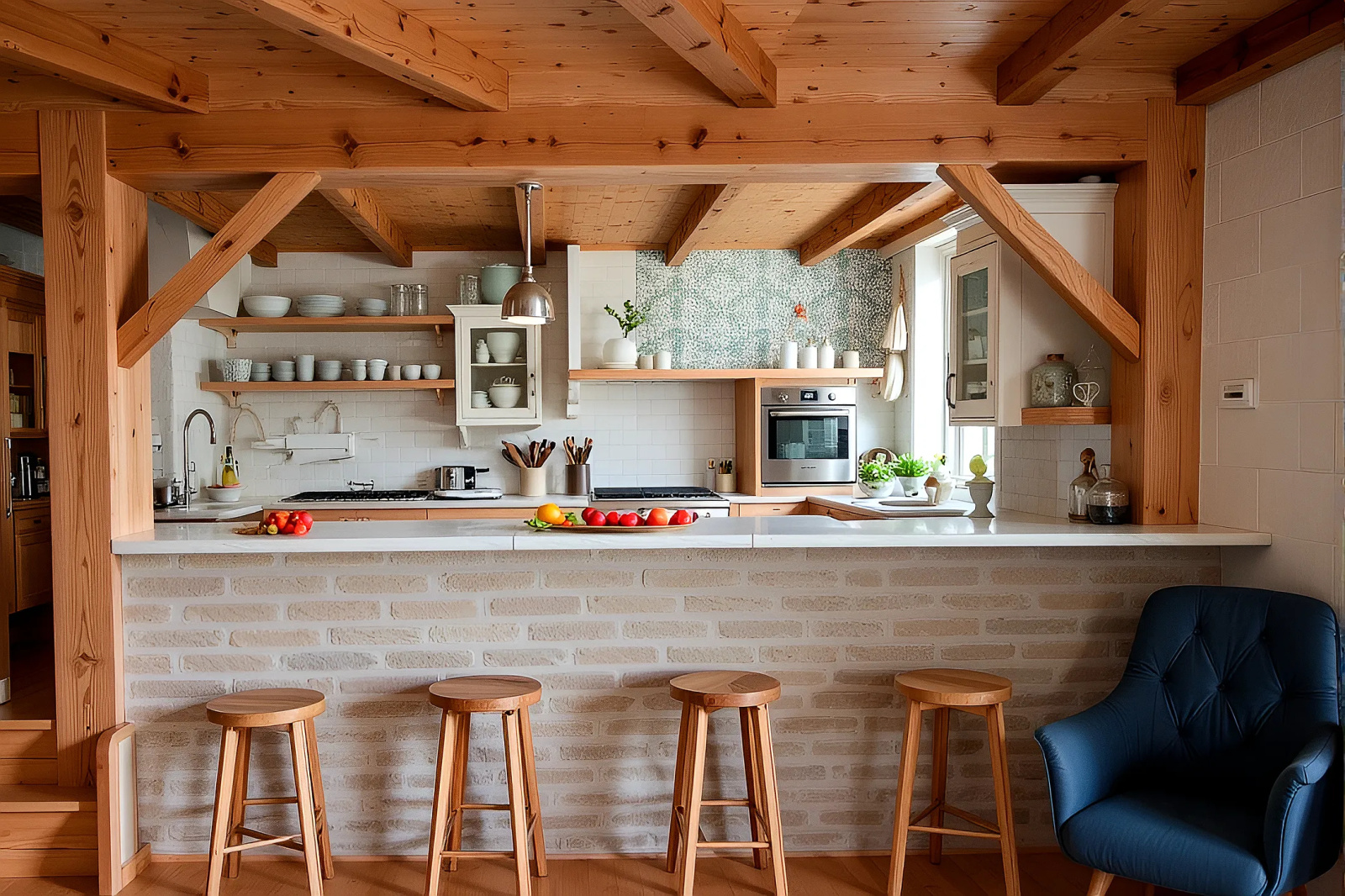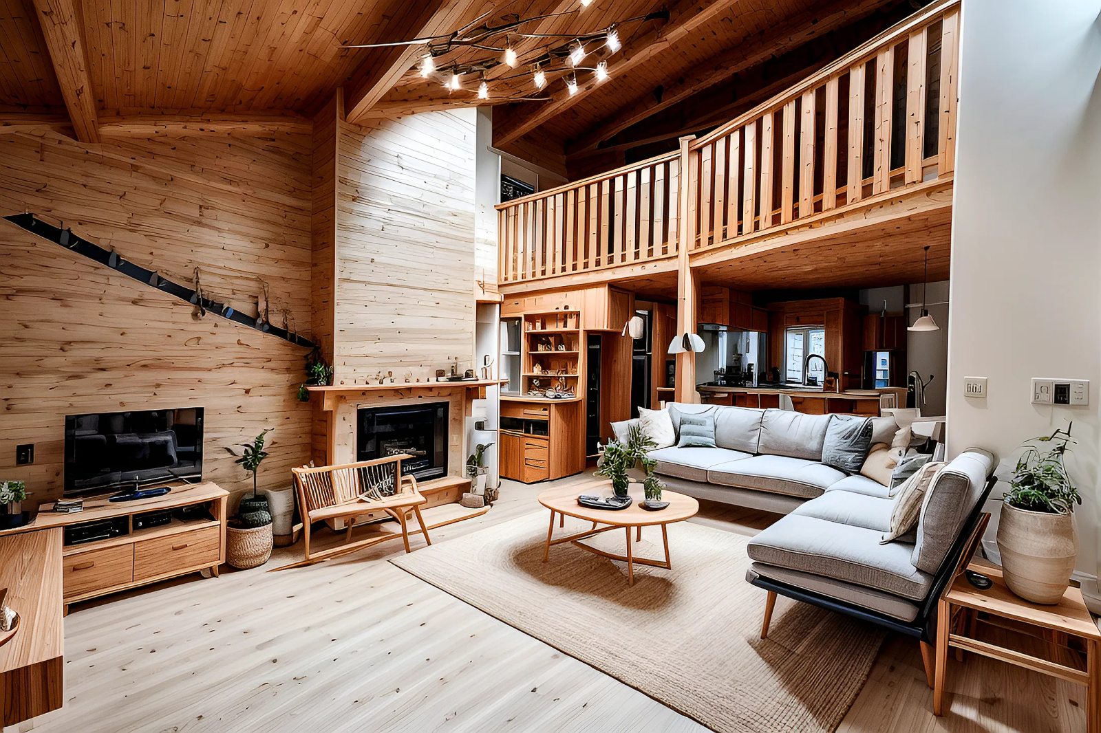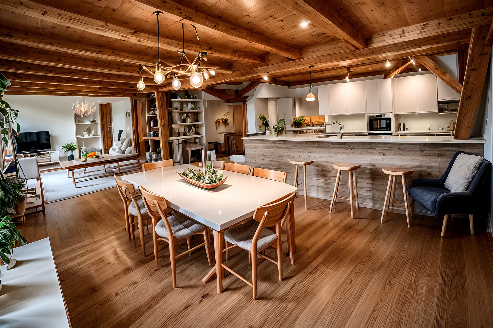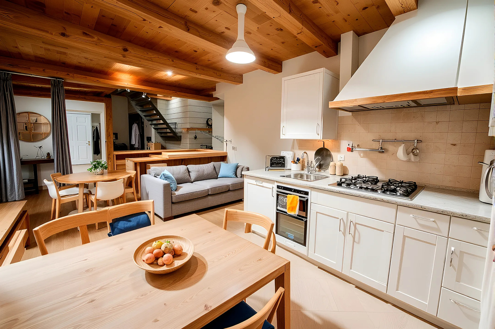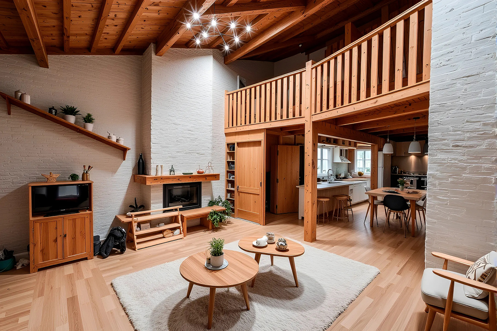 Au premier étage, un vaste salon séjour cuisine, une chambre et une salle de bains,