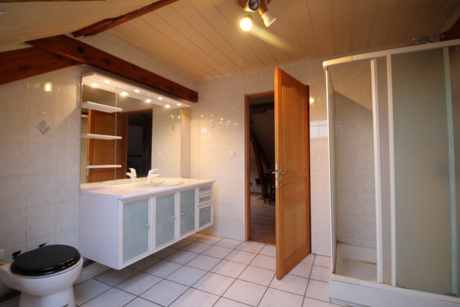 à l'étage un palier dessert 2 chambres, 1 salle de bains et 1 pièce qui pourrait devenir un dressing.