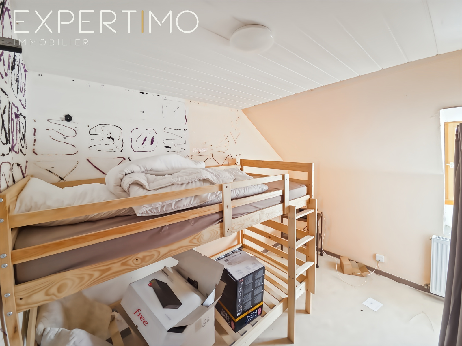 À l’étage, l’espace nuit se compose de quatres chambres, offrant de belles possibilités d’aménagement pour une famille, le télétravail ou une maison de vacances.