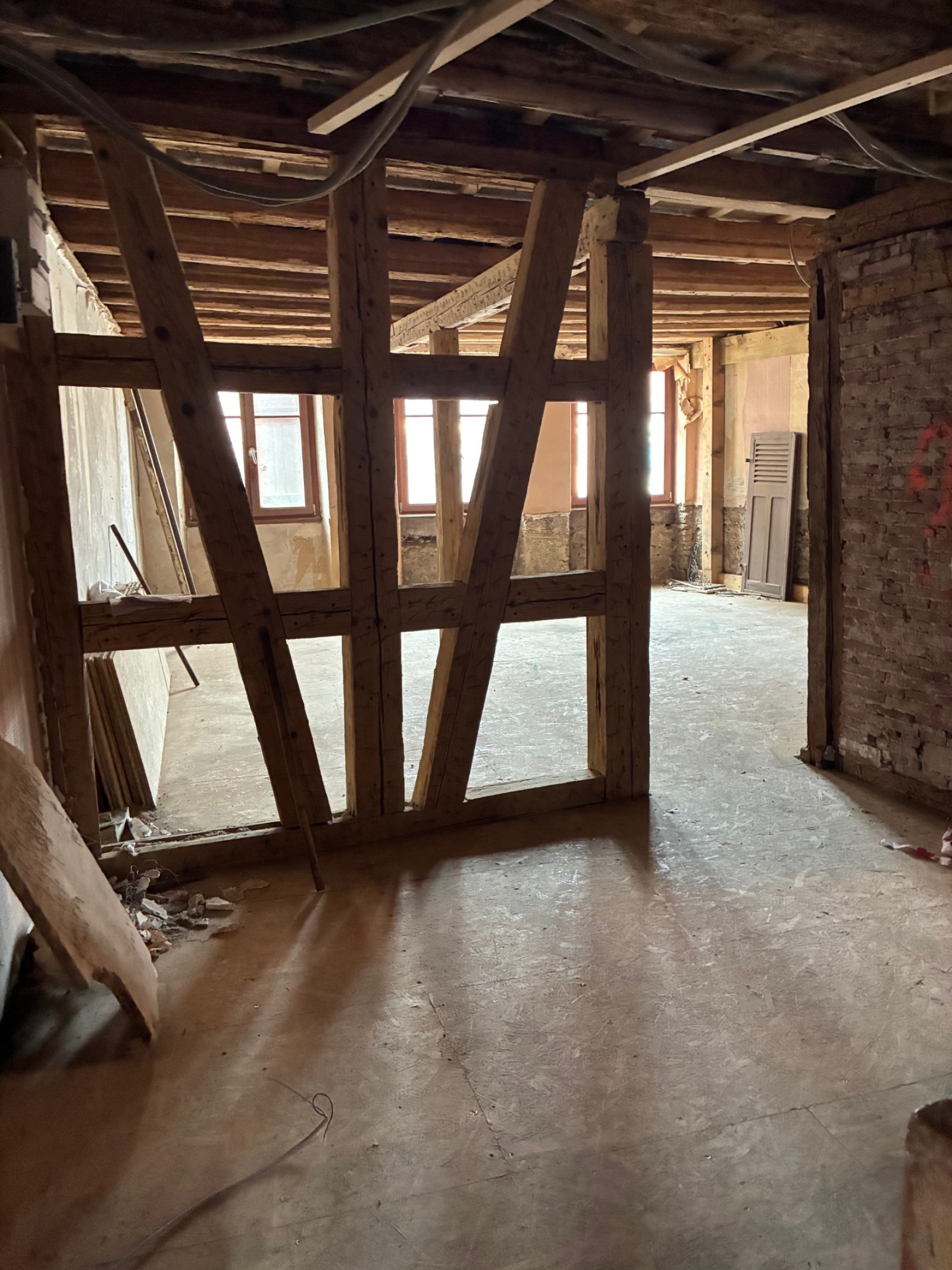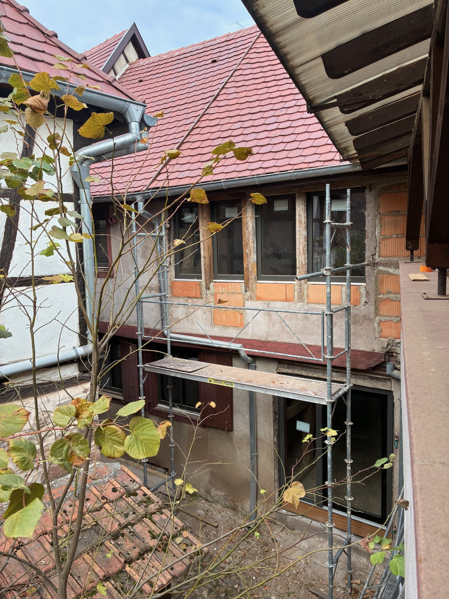 Cette maison Alsacienne très ancienne a fait l'objet d'une totale réhabilitation de son gros-oeuvre et toiture par des entreprises professionnelles et reconnues de la région. A ce jour, le second oeuvre est à prévoir pour un montant de 150 000€. Le projet peut être modifié. Et la création d'une copropriété envisageable.