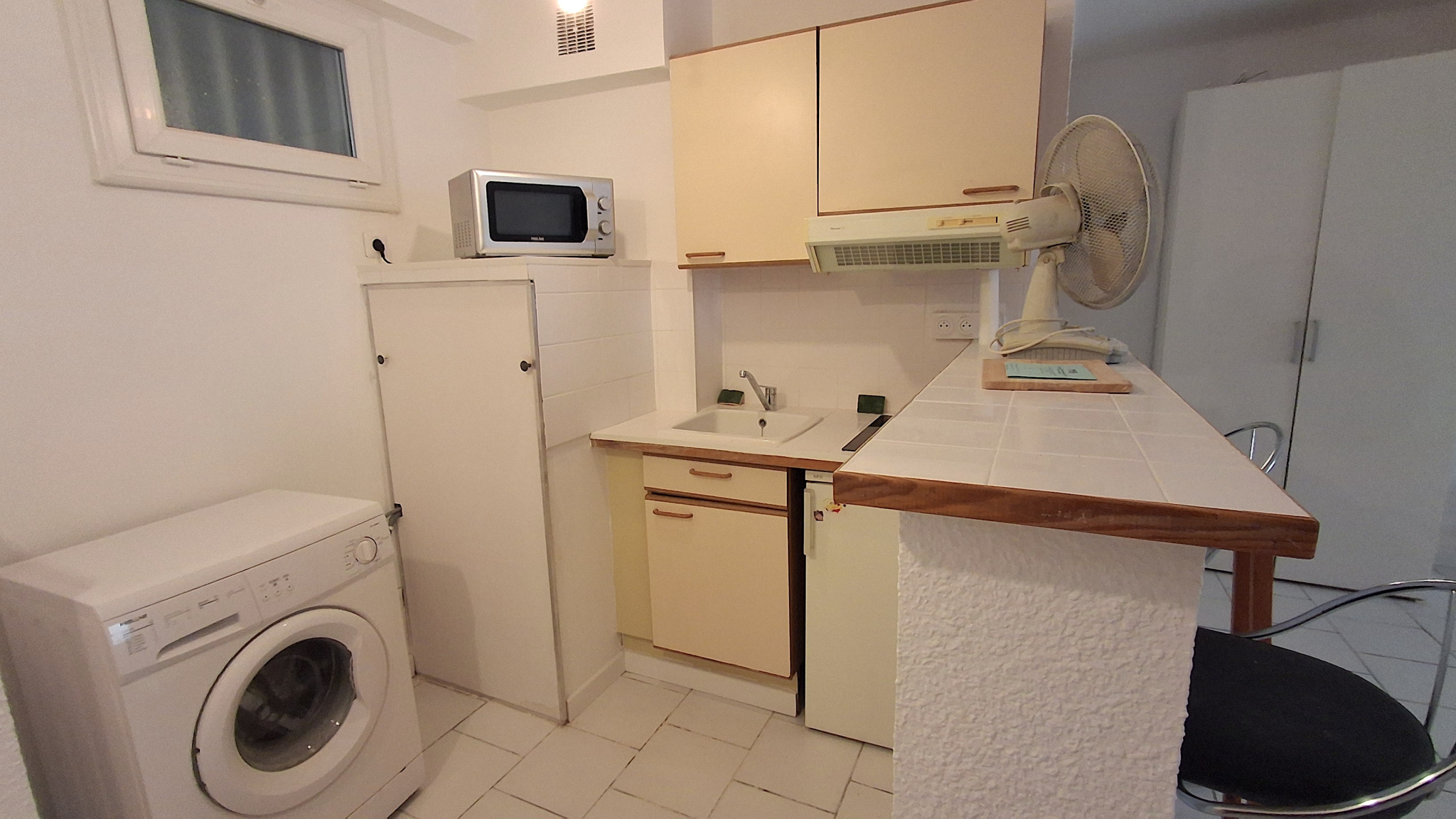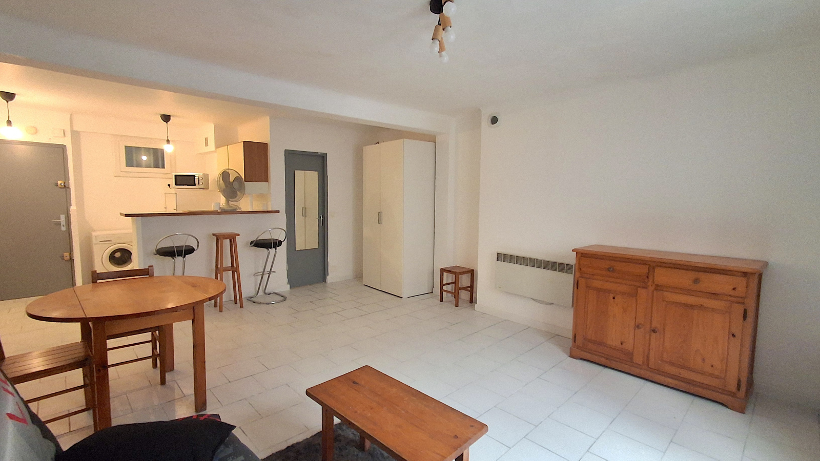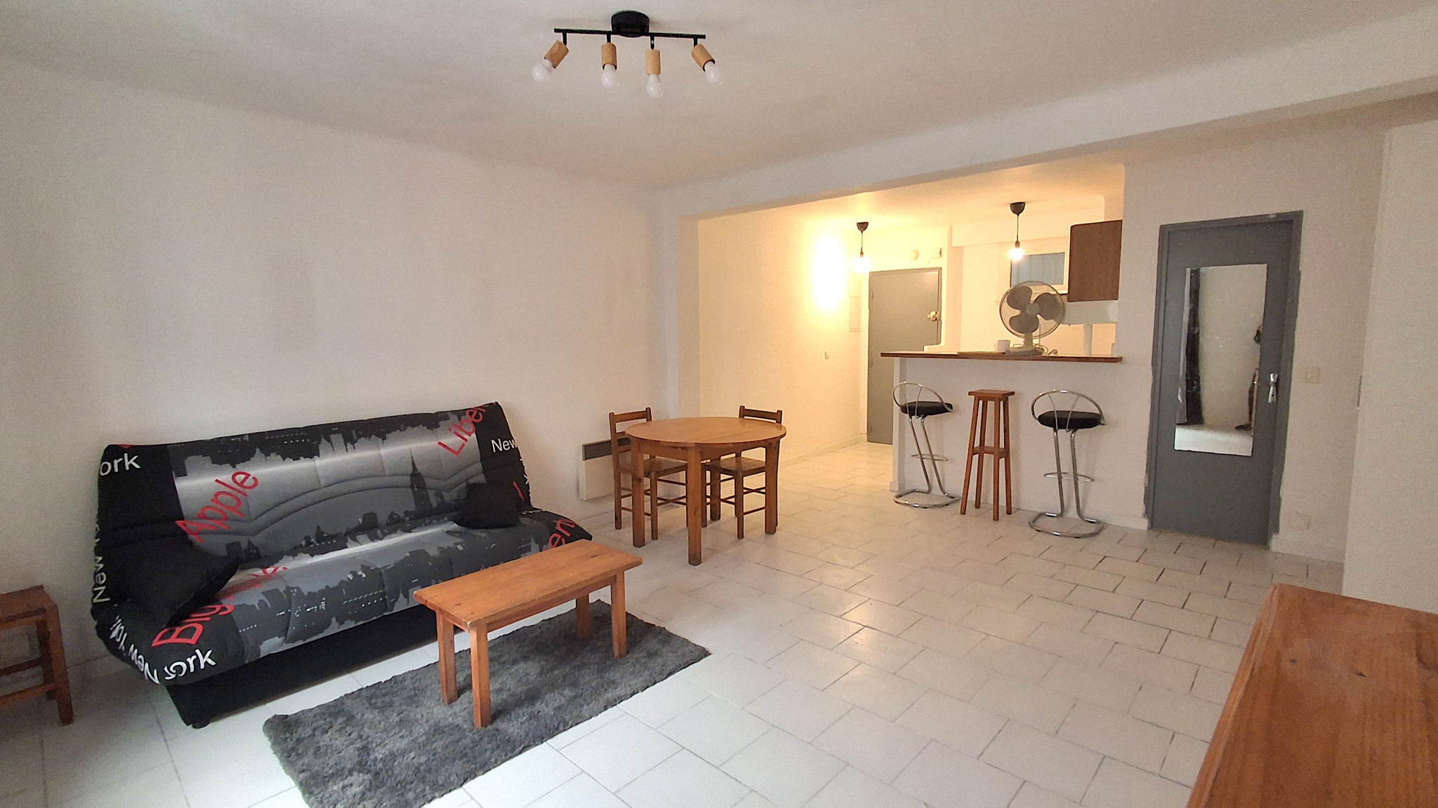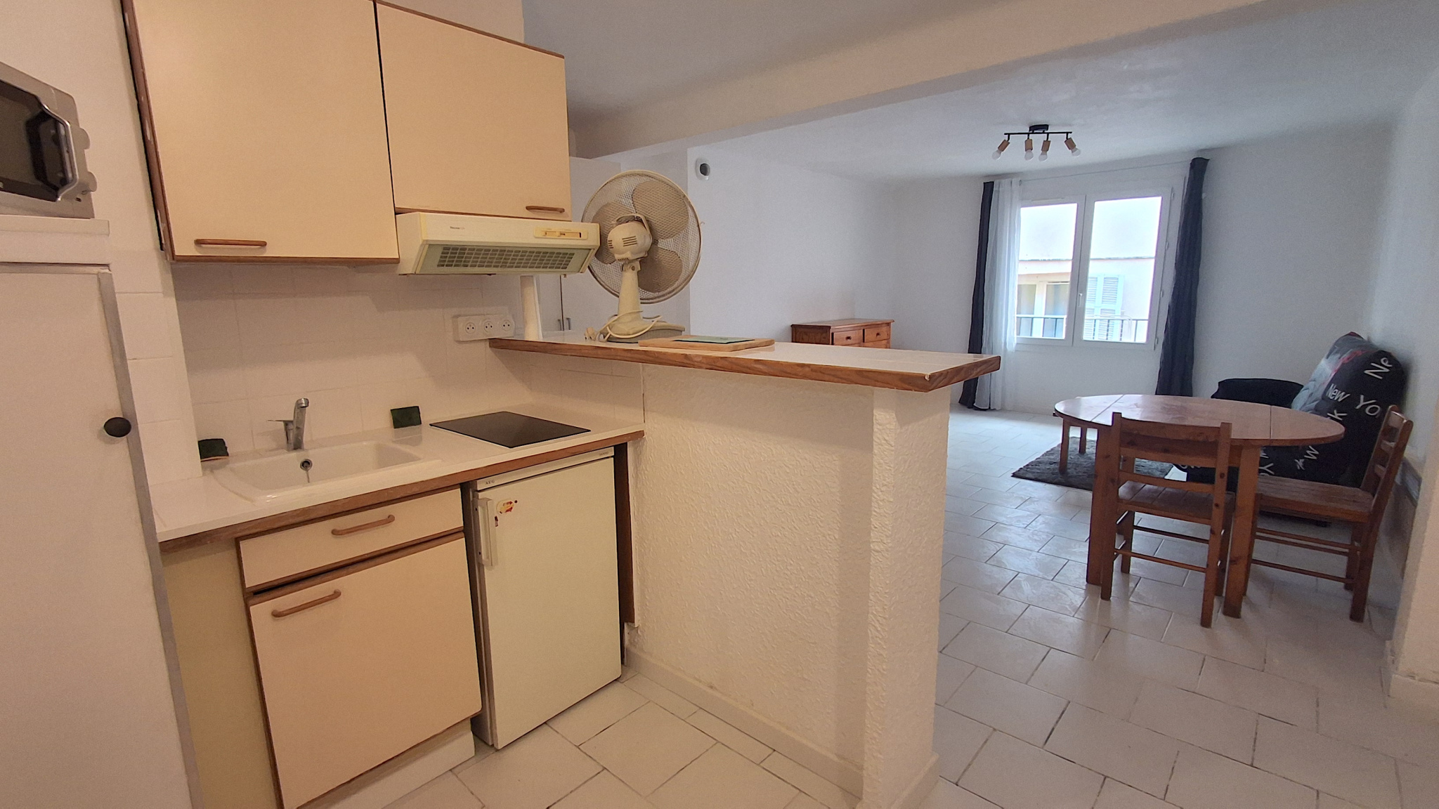 L’appartement se compose d’une grande pièce de vie lumineuse, d’une cuisine équipée fonctionnelle, ainsi que d’une salle de bain avec WC. Vendu entièrement équipé, il offre un confort moderne avec une électricité refaite, un carrelage uniforme et du double vitrage .