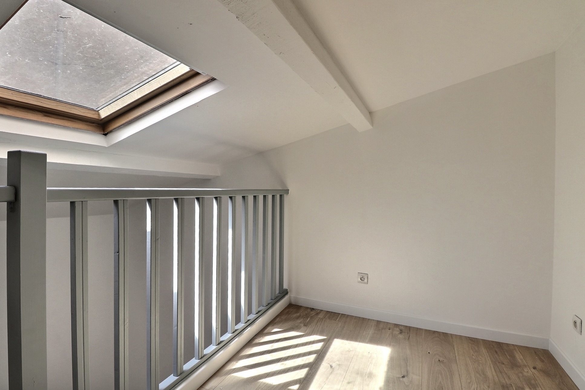 L'appartement se compose d’un salon-séjour de 26 m², sublimé par une belle hauteur sous plafond de plus de 3 mètres et de magnifiques poutres apparentes, qui confèrent un charme indéniable à la pièce de vie. Également, une cuisine équipée et fonctionnelle grâce à son emplacement au centre de l’appartement, deux grandes chambres : l’une de 13.5m2 avec mezzanine, l’autre d’une superficie de 14,5 m² avec un grand placard intégré. Une salle d’eau moderne avec WC complète l’ensemble