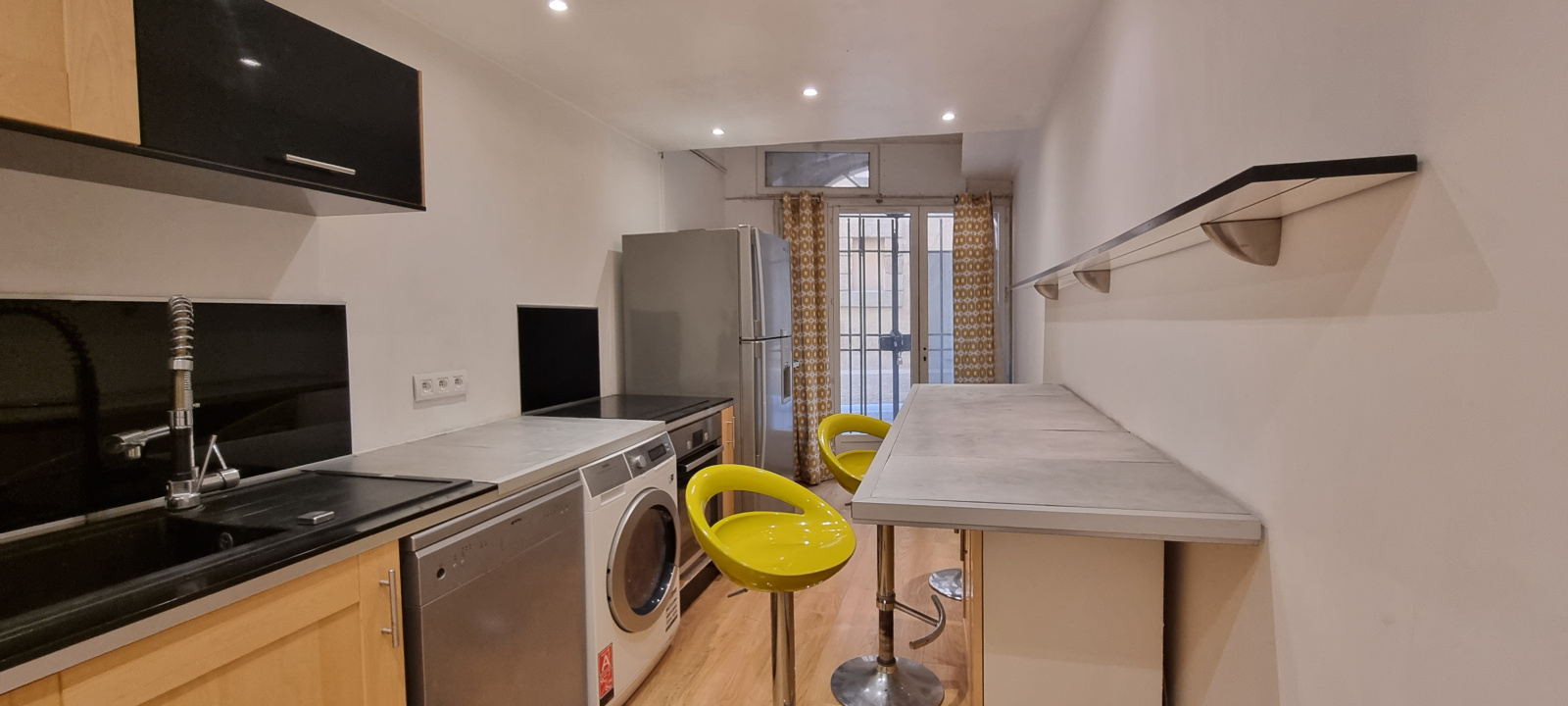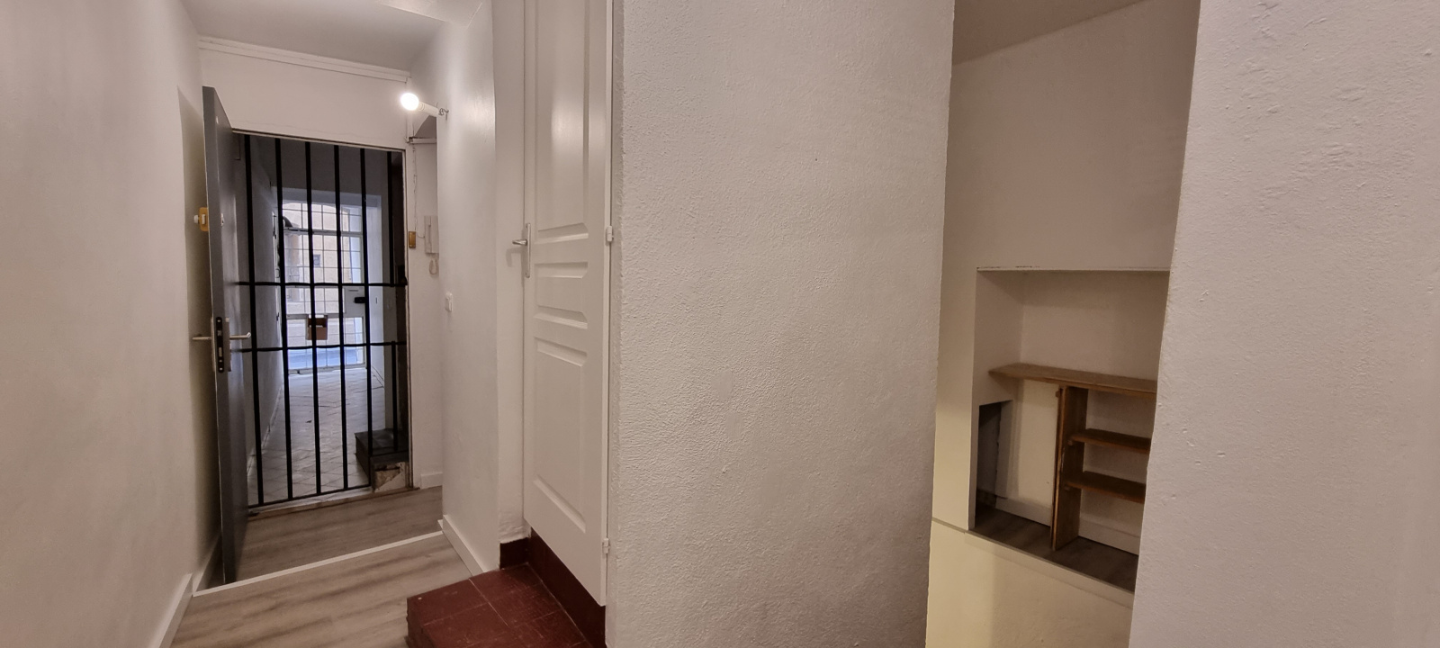 En surface Carrez, le bien présente 13 m², avec cuisine équipée, seule pièce disposant d’une ouverture sur l’extérieur.
