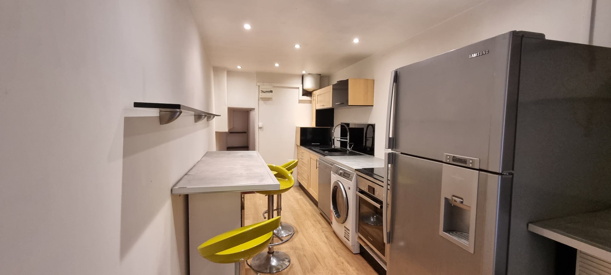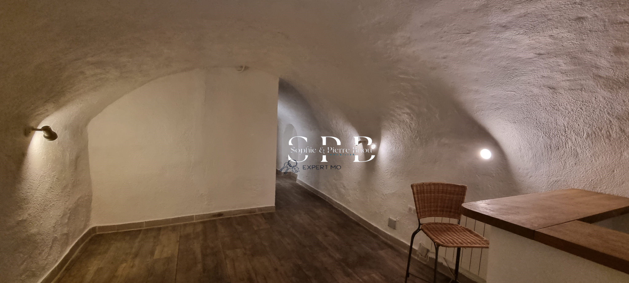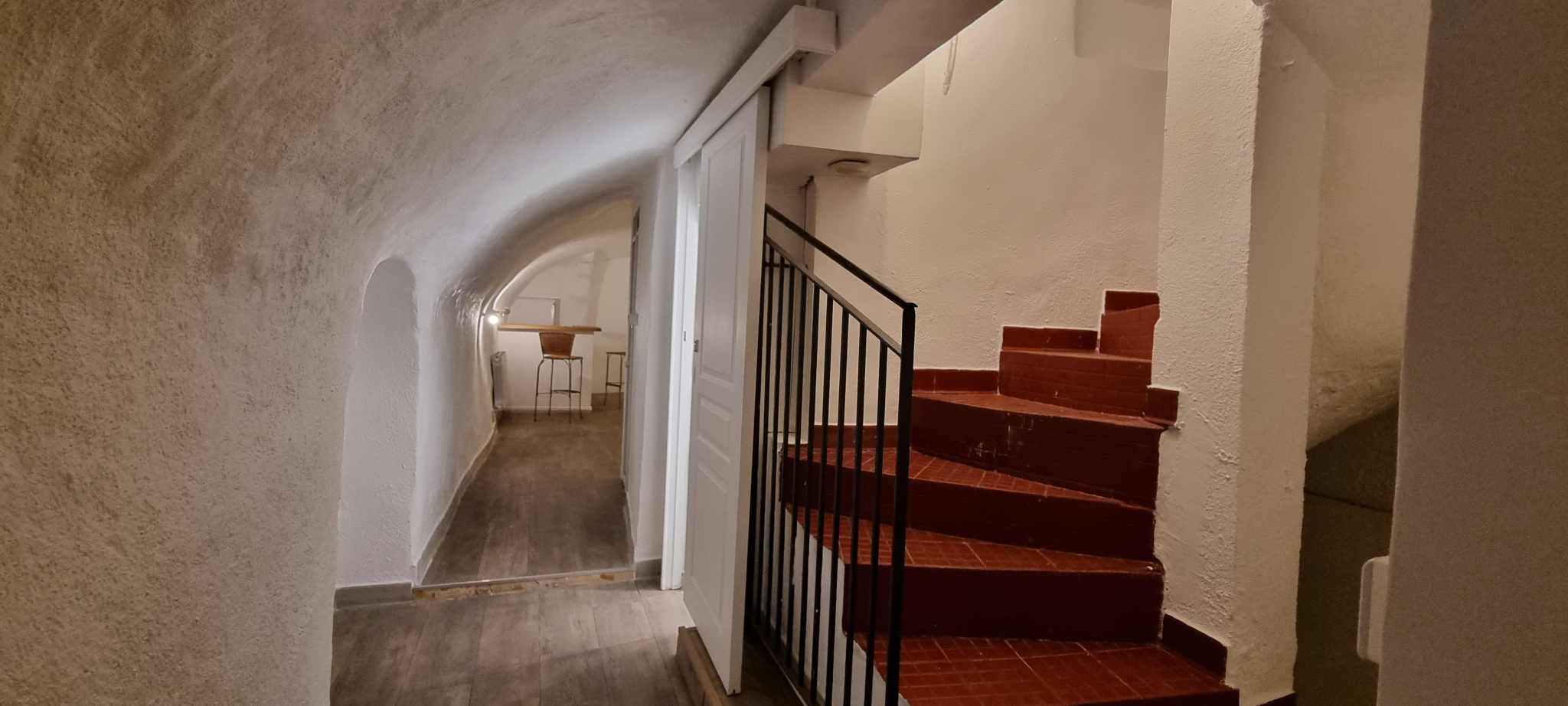 L’appartement bénéficie également d’un niveau inférieur, composé de volumes aménagés en espaces de nuit, avec un coin toilette comprenant douche et lavabo. Ces surfaces en sous-sol constituent un complément intéressant pour un acquéreur souhaitant profiter du lieu en tant que résidence principale.