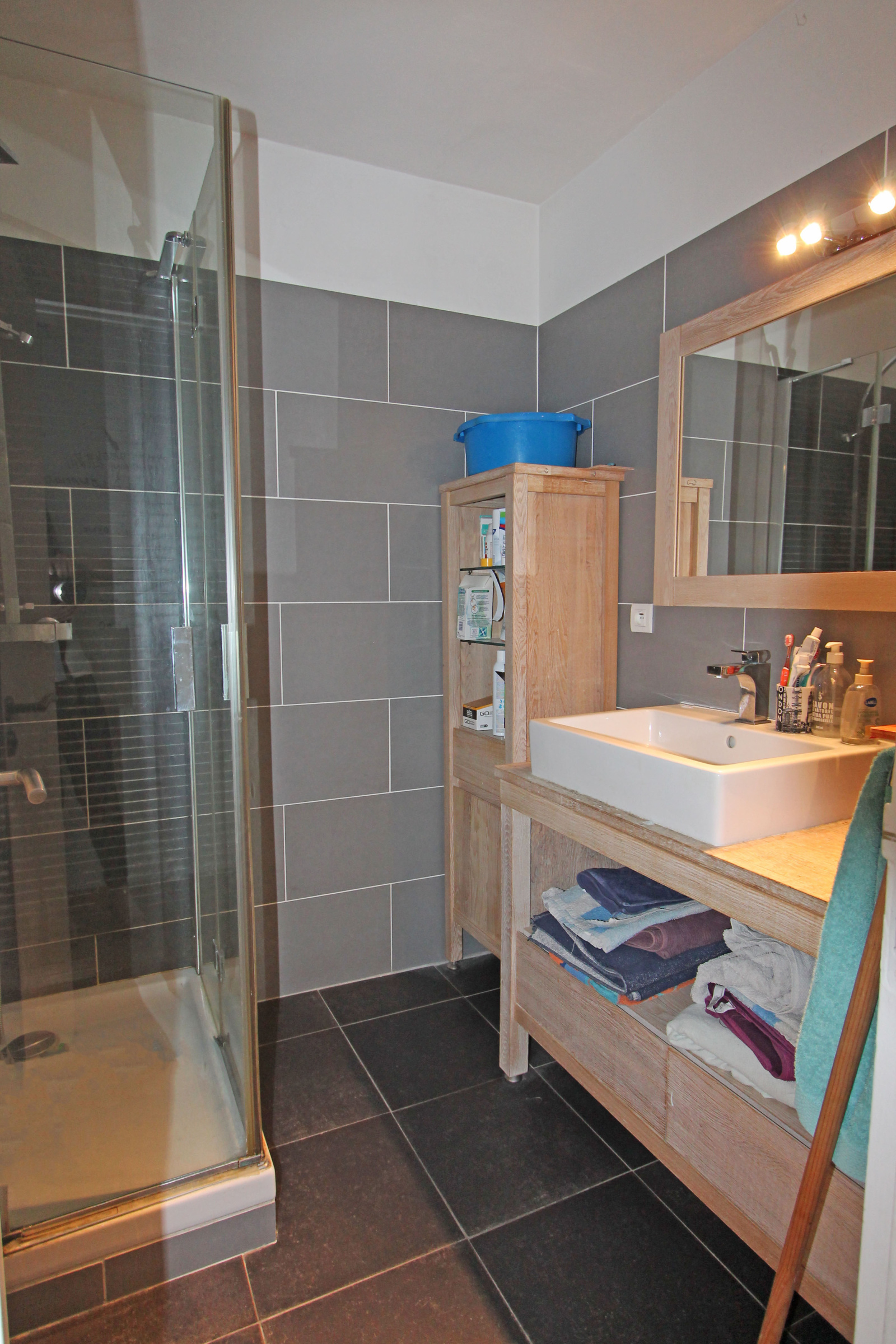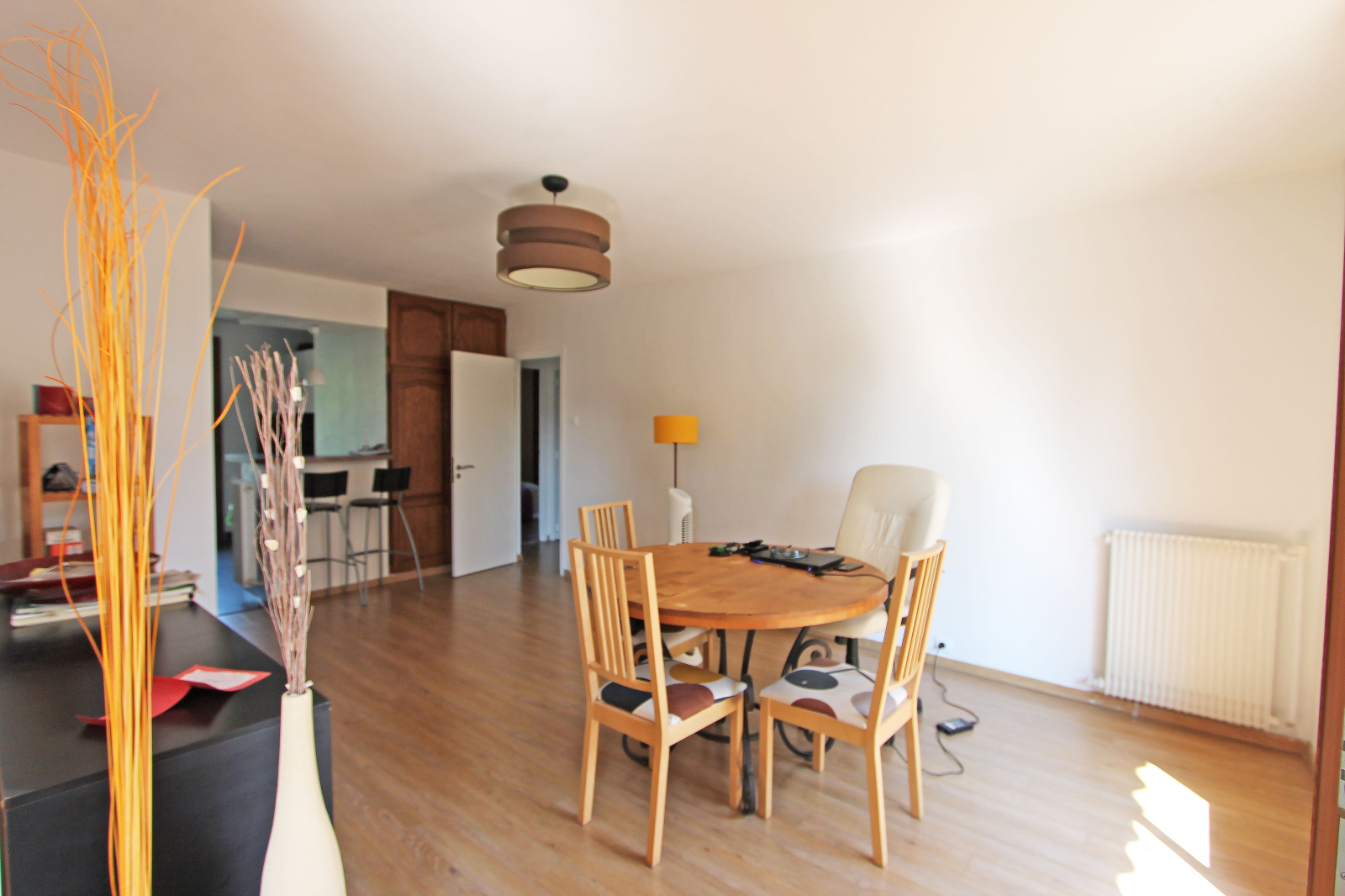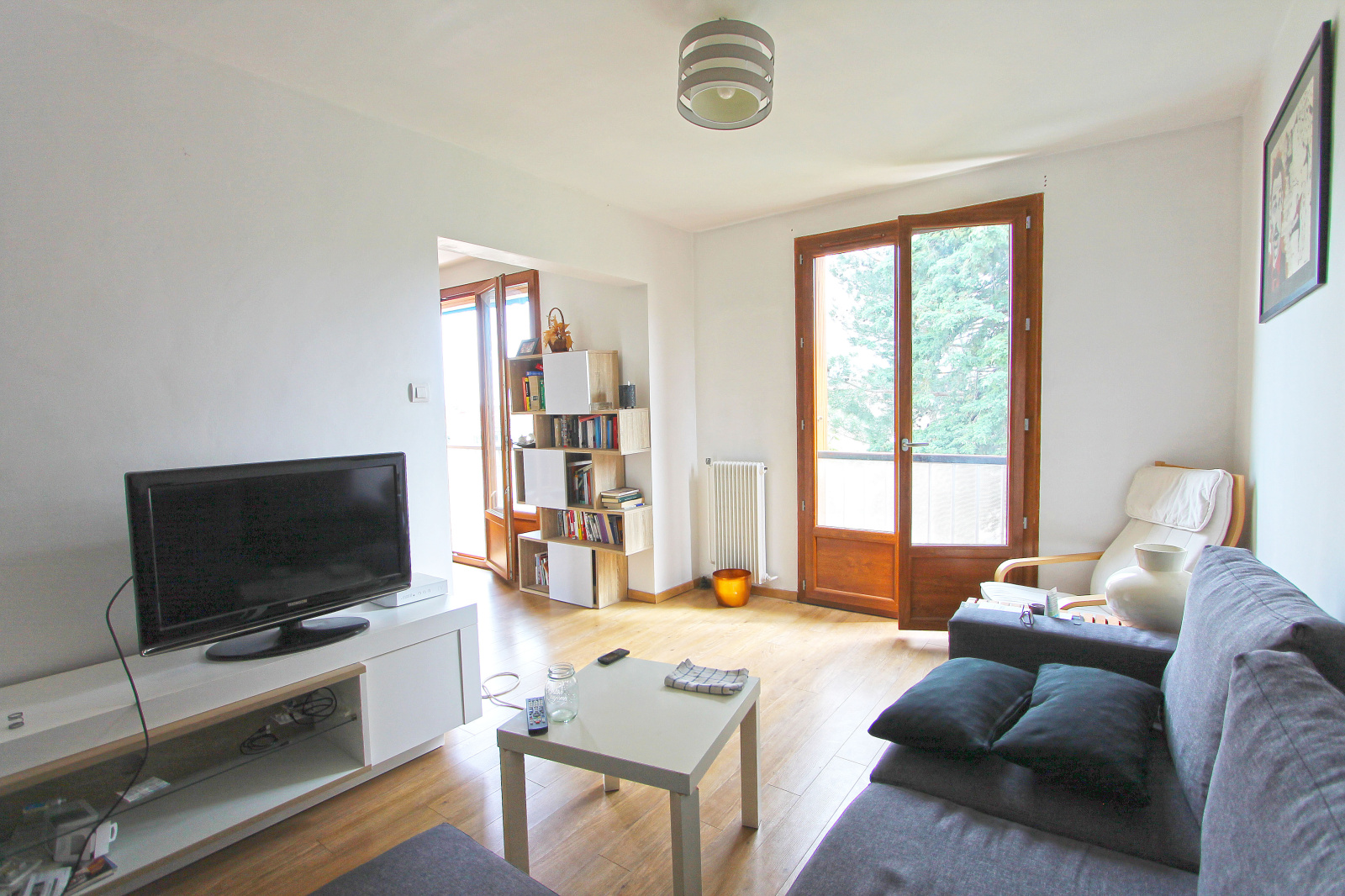 Il se compose d'un hall d'entrée, d'un séjour spacieux avec cuisine américaine, équipée de 30,55 m² avec balcon de 1,84 m², d'une loggia de 3,36 m², d'un coin salon de 12,16 m² ouvert sur le séjour, de 2 chambres avec placard de 13,31 m² et 10,41 m², d'une salle d'eau de 3,55 m², de wc séparés et d'une cave. Stationnement aisé au sein de la résidence