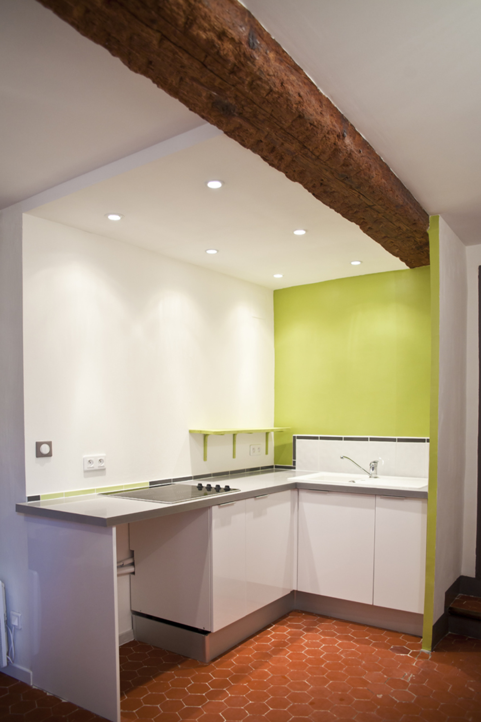 Studio de 22,65 m². Composé d’une pièce de vie avec cuisine équipée et d’une salle d’eau avec WC. Double vitrage, chauffage et chauffe-eau électriques.
