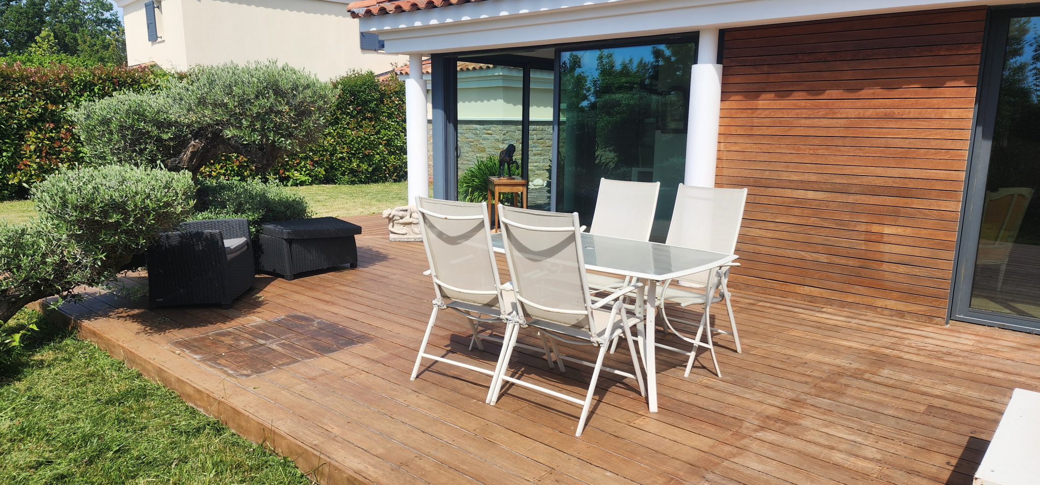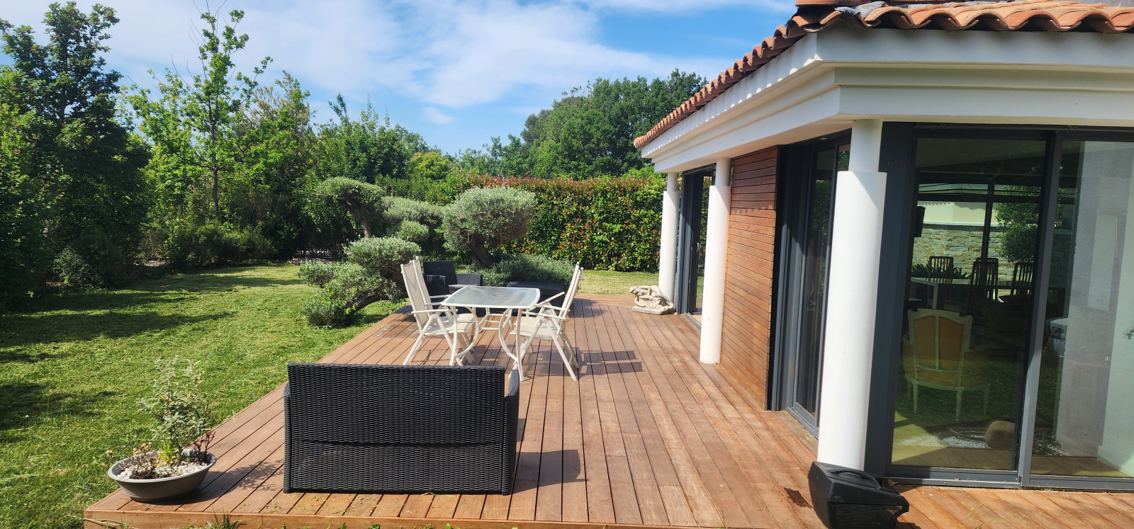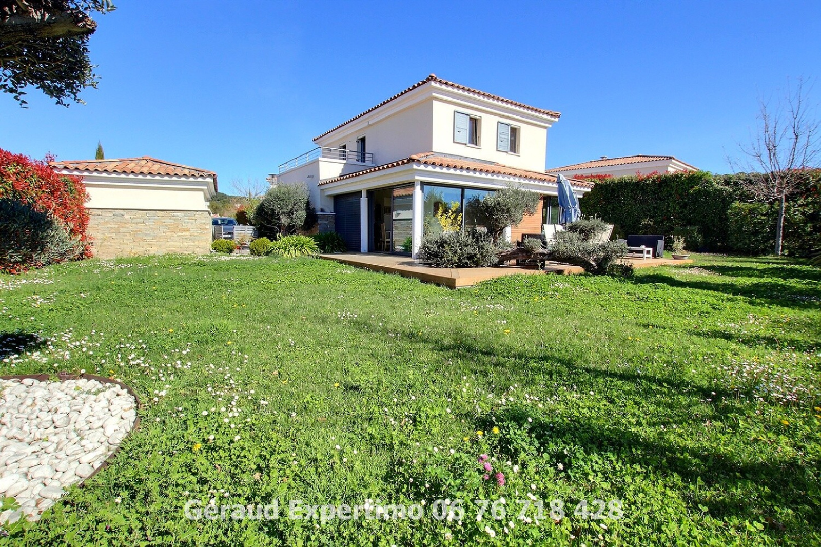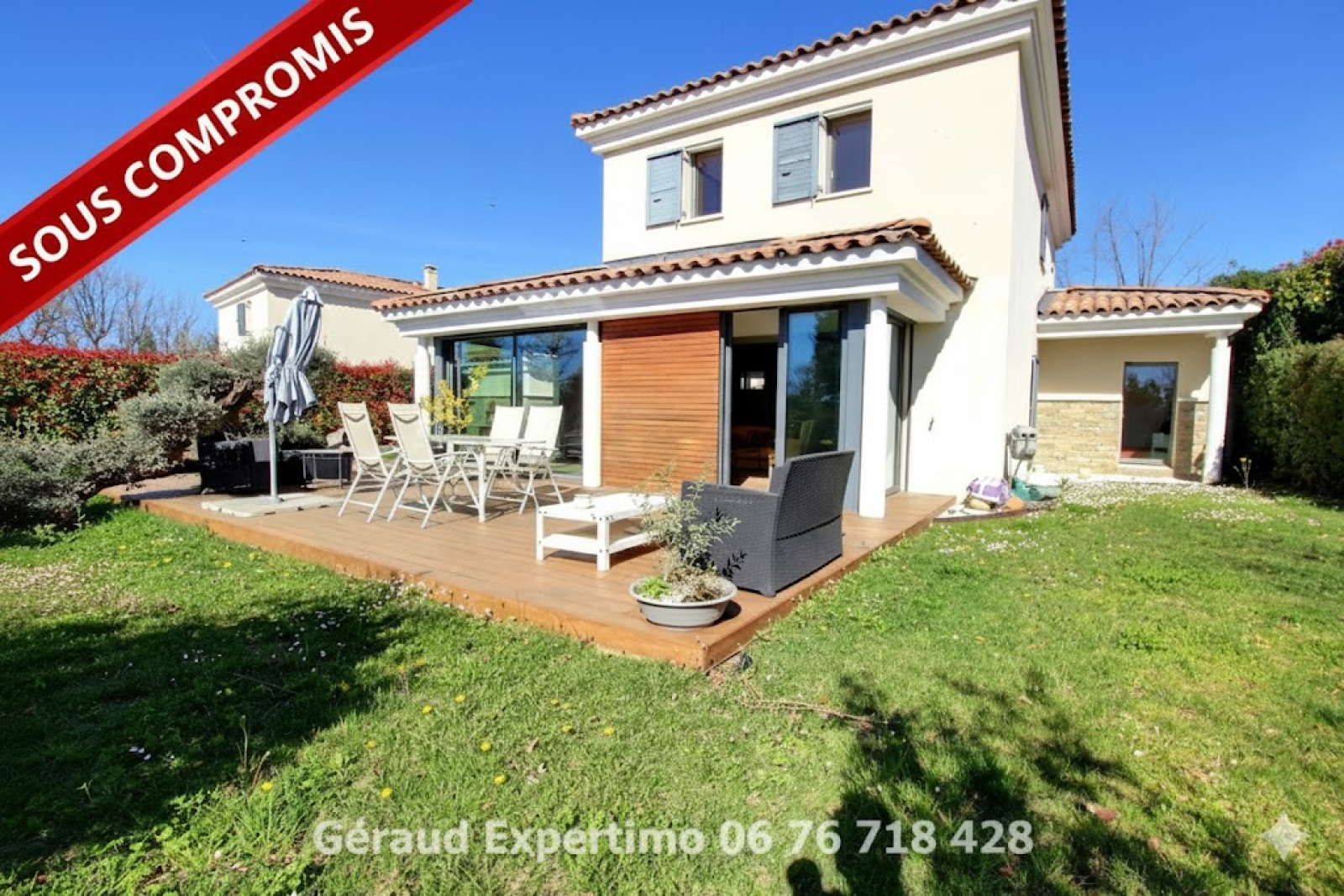 VENDU Exclusivité Expertimo . Située aux portes d’Aix-en-Provence, au sein d’une résidence sécurisée et recherchée, cette magnifique villa de 135 m² habitables allie élégance, confort et qualité de vie. Dès l’entrée, vous serez séduit par une vaste pièce de vie de 50 m², baignée de lumière, avec une cuisine ouverte contemporaine prolongée par un séjour chaleureux — l’espace idéal pour recevoir famille et amis. Le rez-de-chaussée propose également une belle suite parentale avec salle de bain privative, une buanderie fonctionnelle, ainsi qu'une grande terrasse en bois, parfaite pour partager des moments conviviaux en toute intimité. À l’étage, deux chambres lumineuses — dont une offrant une vue imprenable sur le golf et le massif de l’Étoile — deux salles d’eau et un vaste dressing avec accès à une terrasse privée viennent parfaire ce lieu de vie raffiné. L’ensemble est niché sur un terrain arboré, au calme, avec une vue apaisante sur le golf, dans un environnement verdoyant et privilégié. Un garage complète cette propriété rare sur le marché. Un véritable havre de paix, alliant proximité de la ville et sérénité. La piscine de la résidence sera à votre disposition. Coup de cœur garanti. Pour plus d'informations ou organiser une visite : Votre contact privilégié : Géraud LAVEISSIÈRE, EI ???? 06 76 71 84 28 — disponible 24h/24 Réseau Expertimo – L’expert immobilier proche de vous Mandataire indépendant – RCS Aix-en-Provence 391 592 623