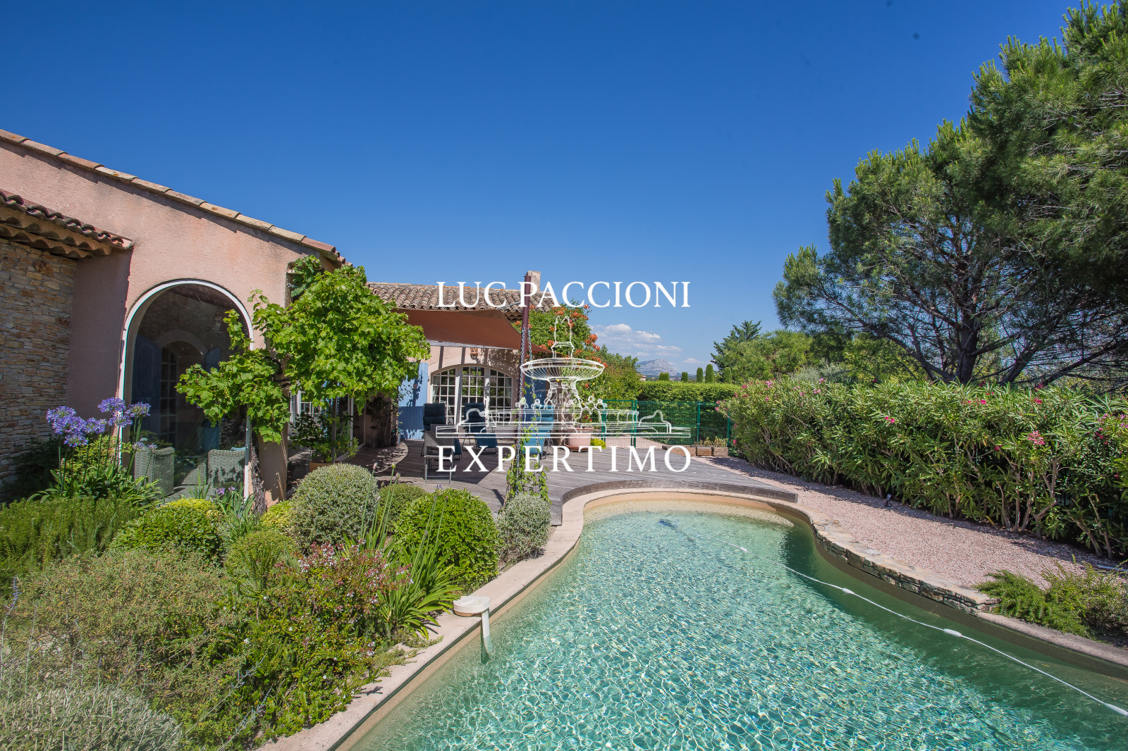 EXCLUSIVITE !! Charmante villa traditionnelle de plain pied de 190 m2 situé dans une résidence de standing sécurisée du quartier Saint Mitre. Elle se compose d'un double séjour, d'un grand salon d'hiver donnant sur grande terrasse en teck, 3 grandes chambres, spacieuse cuisine indépendante équipée avec îlot central, 2 salles d'eau, grand cellier, buanderie, cave a vin, abri voiture + parking dans la résidence, terrain arboré de 735 m2, belle piscine (au sel) avec vue sur la Sainte victoire. Bus et commerces a deux pas !!