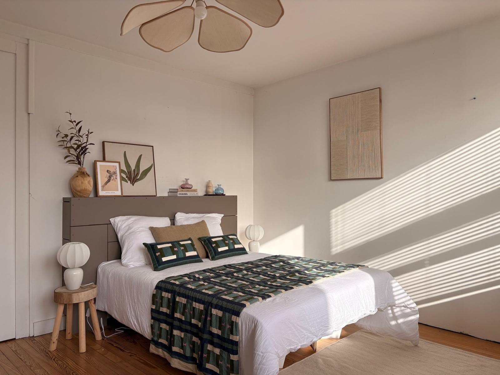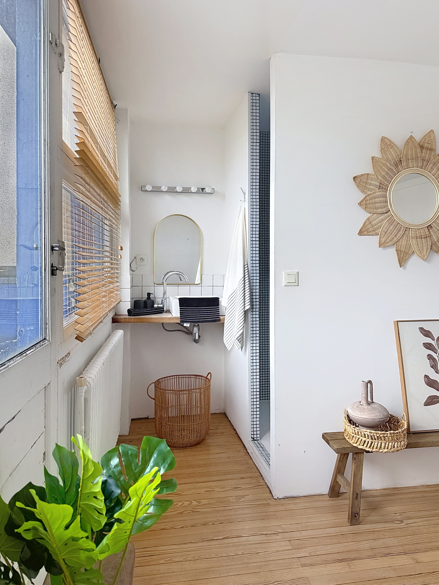 Le dernier niveau est dédié à l’espace nuit avec trois chambres sur parquet, dont une suite avec terrasse privative. Une salle de bains complète cet étage.