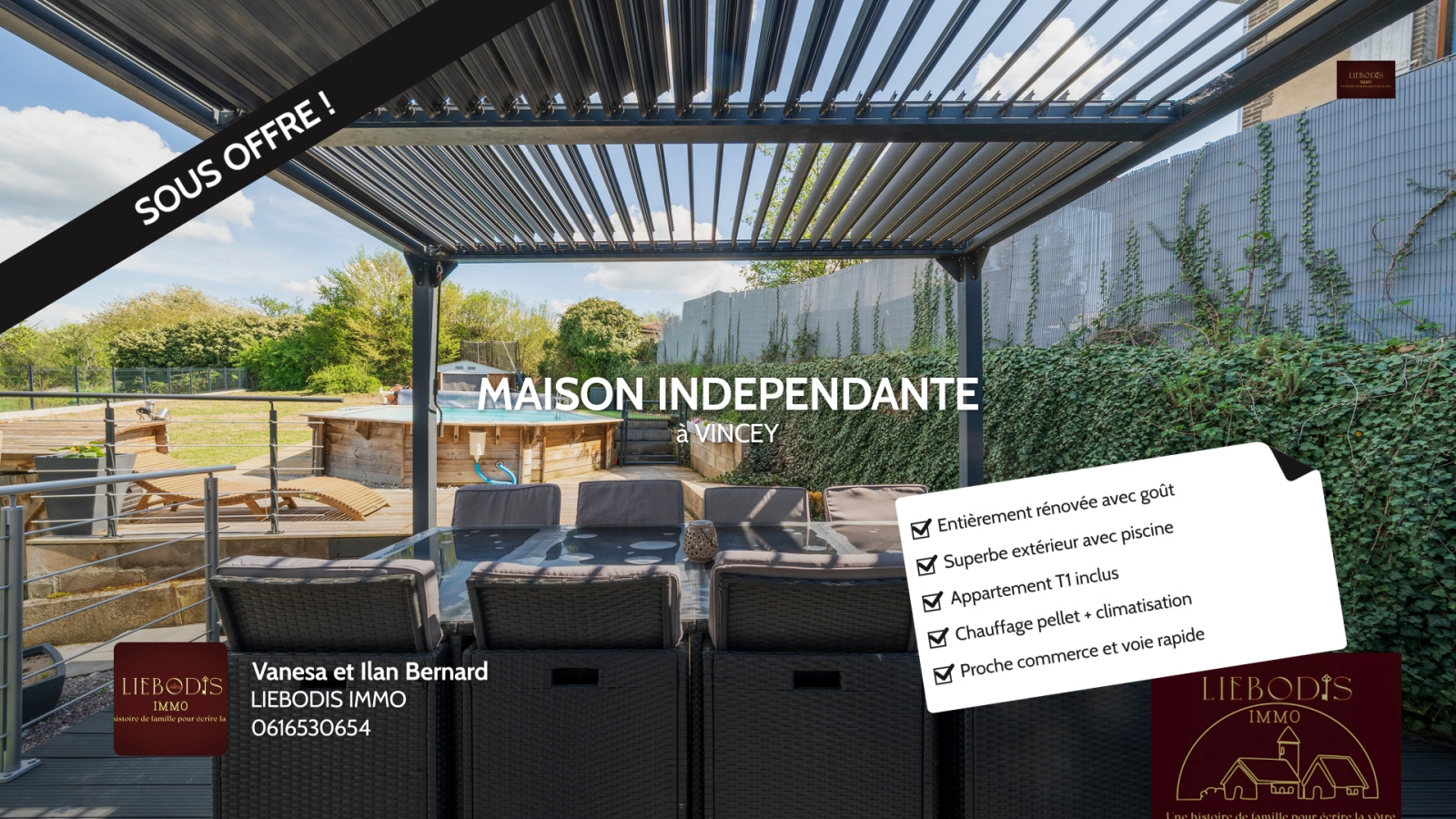 Pour tous renseignements ou visite, contactez votre conseillère Vanesa Bernard, LIEBODIS IMMO;