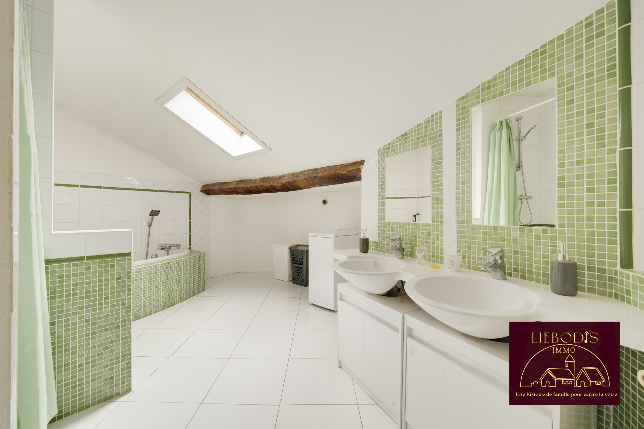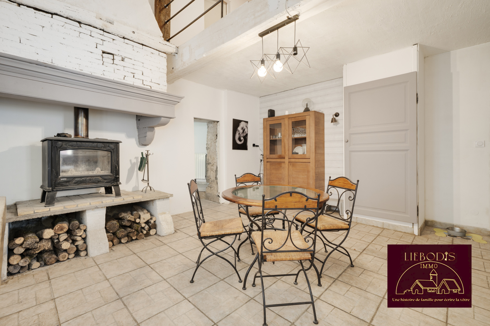 Mitoyenne d'un seul côté (par la dépendance), elle se compose en rdc d'une vaste pièce de vie de près de 45 m² en L avec une partie salon et une partie salle à manger. Agrémentée d'un poële a bois pour la petite flambée automnale, elle dispose également d'un accès direct à la terrasse et au jardin ainsi qu'un WC. Une pièce intermédiaire que nous avons rebaptisée "le salon de thé", lui aussi avec un poële à bois, pourra également servir de salle à manger plus intimiste. Cette pièce dessert d'une part la cuisine, de l'autre un bureau de 22m² pouvant servir de 6ème chambre, mais aussi la cave et l'accès la dépendance.