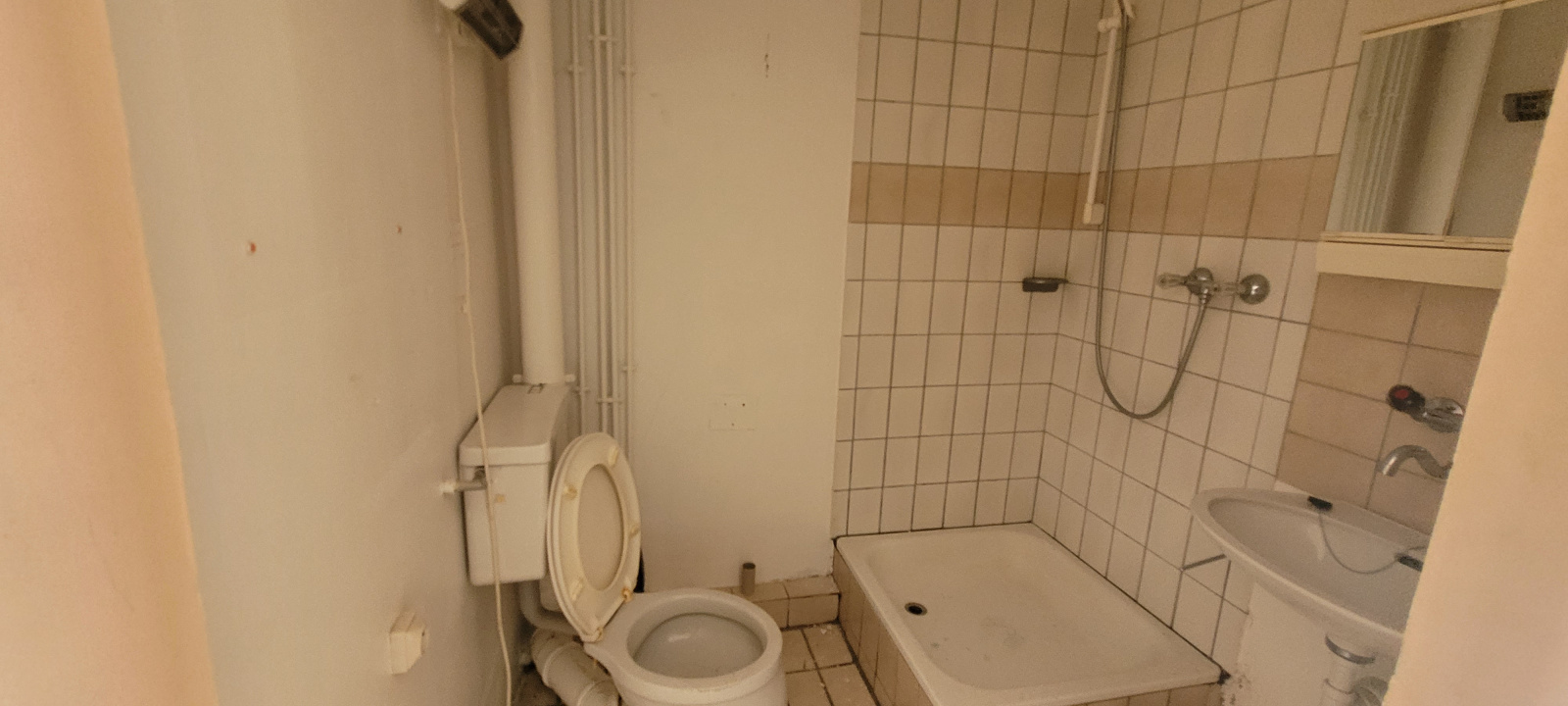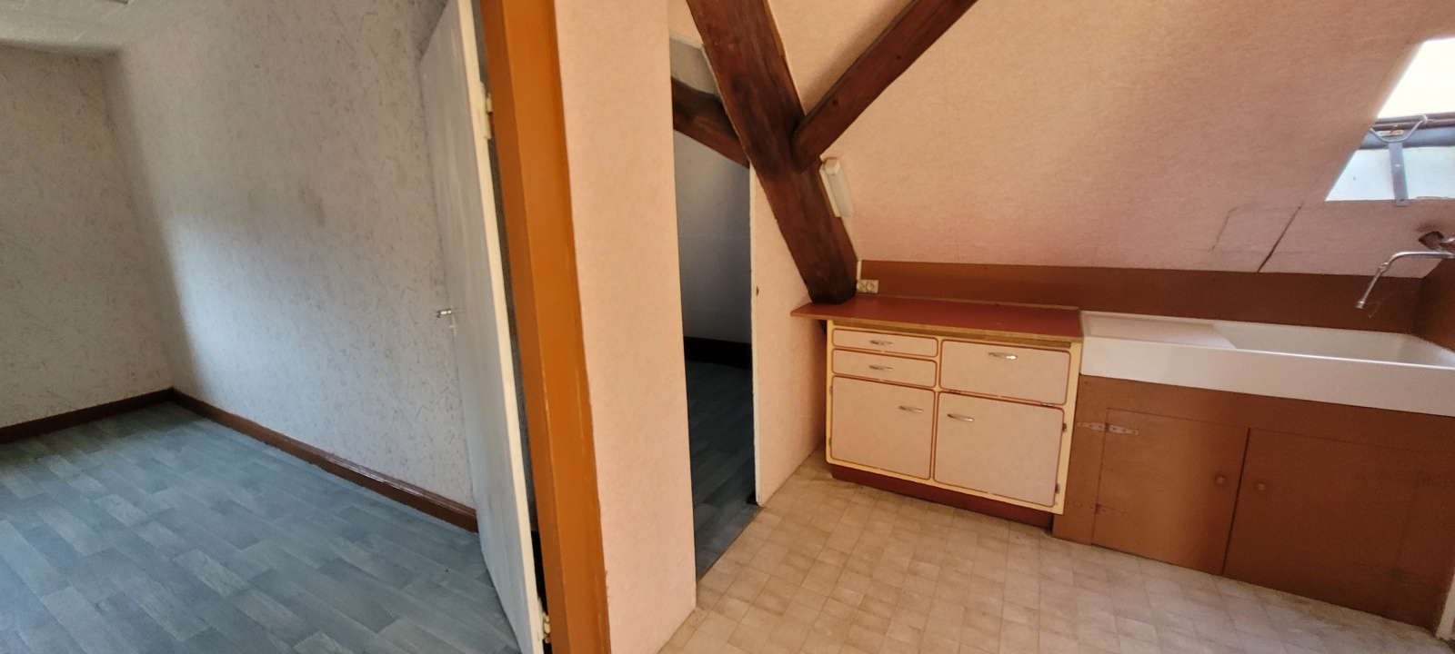 Aux combles : Une cuisine, une pièce, une SDE avec un WC.
