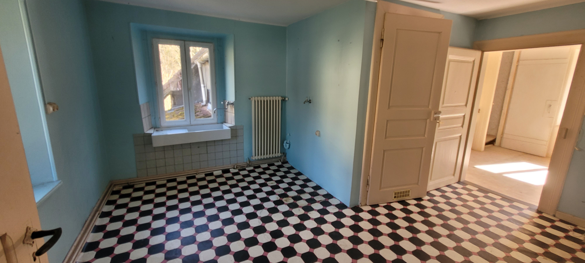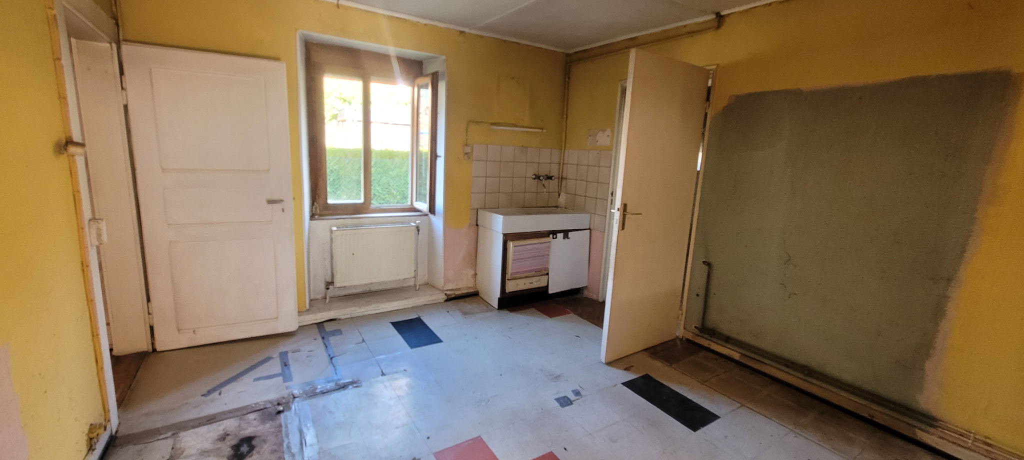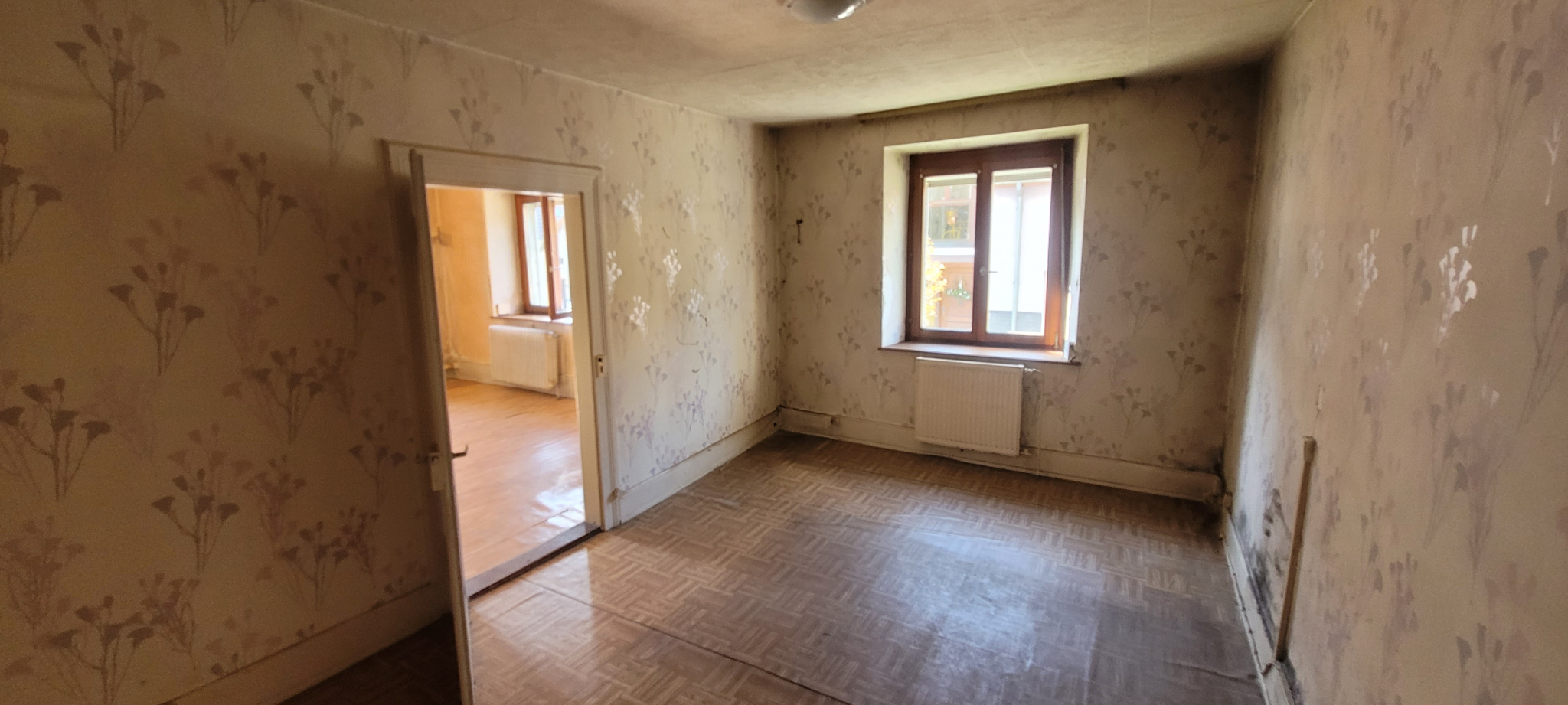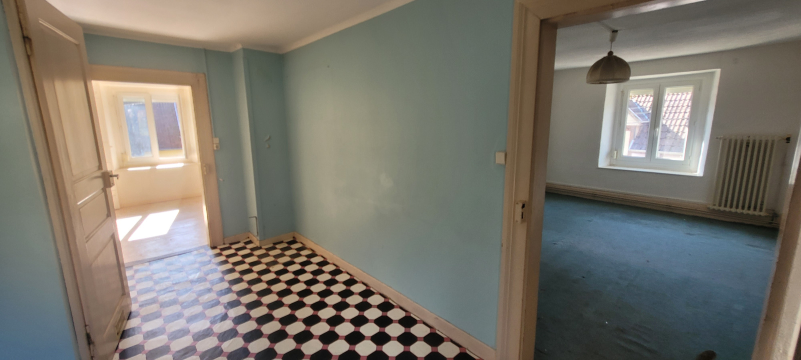Grande maison familliale à rénover au calme offrant 150 m² habitables répartis en deux logements sur 13.63 ares de terrain plat et ensoleillé avec une grande grange attenante.