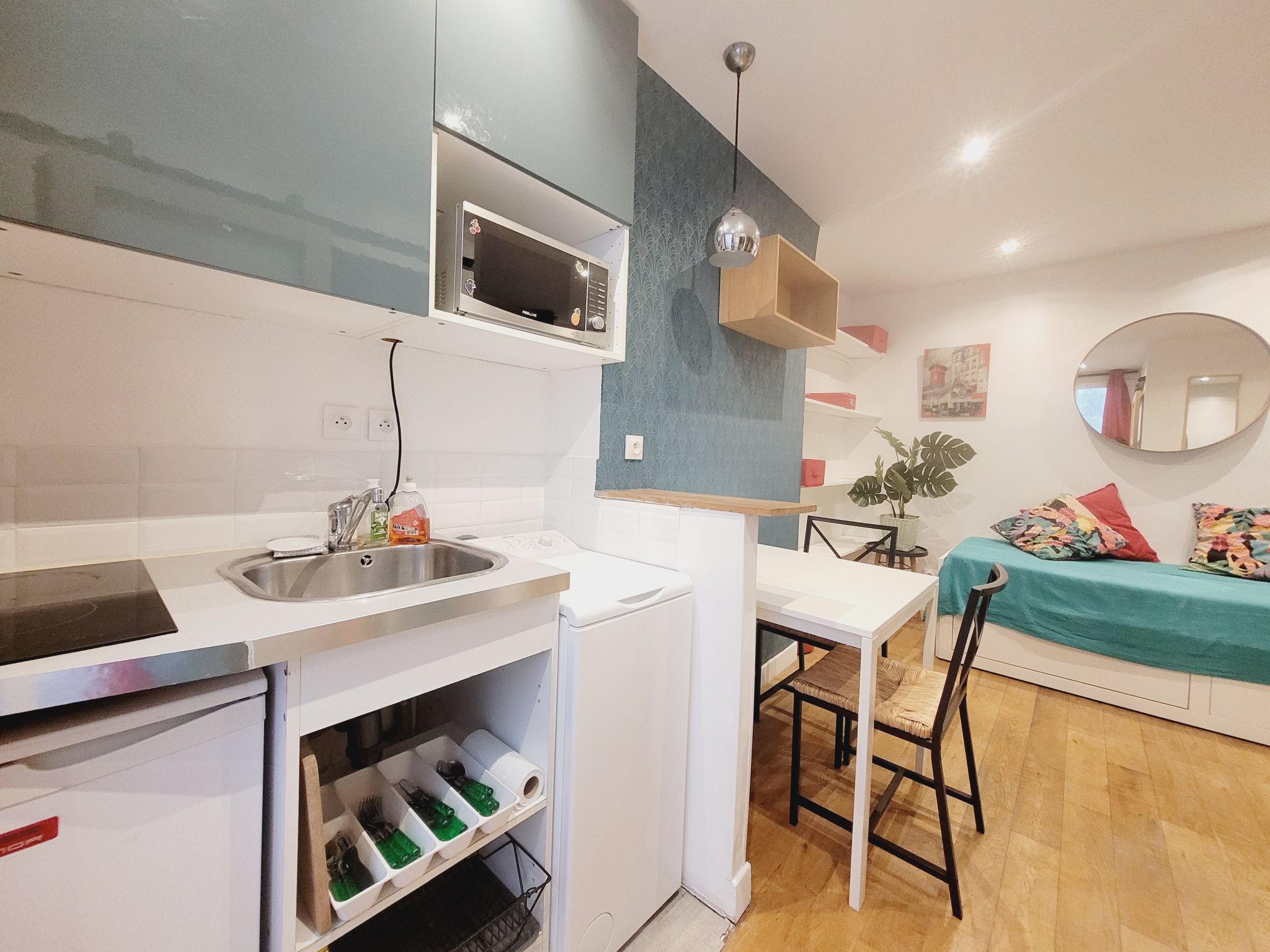 Métro Anvers. Au 2ème étage sur cour d'un bel immeuble haussmannien, beau studio meublé très bien agencé et en parfait état avec un coin cuisine fonctionnel et équipé, une salle d'eau avec toilettes. Lave linge, placard penderie, espace bureau avec télévision. Proximité immédiate des commerces et transports. Libre de tout locataire. Chauffage et eau chaude individuels électriques. Charges de copropriété : 150 euros / trimestre. Taxe foncière : 430 euros