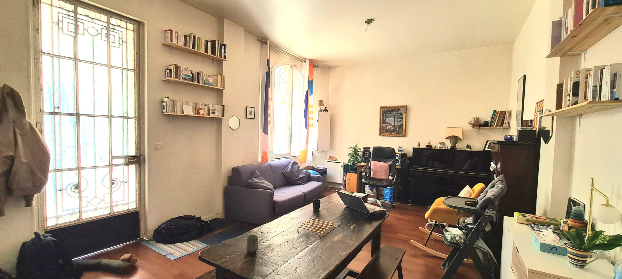 XIX ème – Pont de Flandre / Rouvet : Dans un bel immeuble ancien au calme, nous vous proposons un charmant deux pièces lumineux orienté Sud- Ouest d'environ 50 m² au rez-de-chaussée, situé dans un quartier vivant.Il se compose d'un grand salon / salle à manger avec une cuisine ouverte, d'une belle chambre à coucher, d'une salle de douche, et de wc séparés.Très bon plan sans perte de place,avec une belle hauteur sous plafond ( 3,20 m).Une étude réalisée par un architecte permet d'envisager une mezzanine. Cet appartement est également idéal pour une profession libérale ou pour de la location saisonnière ( commercialité / RCP), avec un accès rue et cour.A proximité de tous commerces , des transports et du square Dampierre -Rouvet.Métro Corentin Cariou ( Ligne 7) .Charges annuelles 1100 € (1 lot). Honoraires 3% charge acquéreur (RSAC 352137756- Paris)