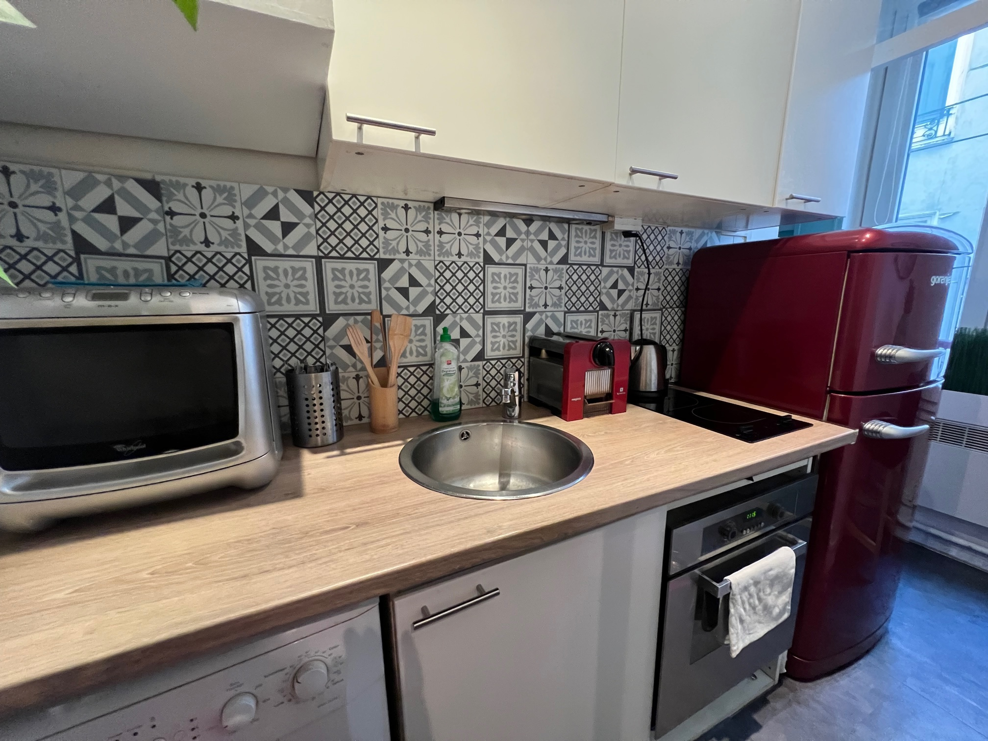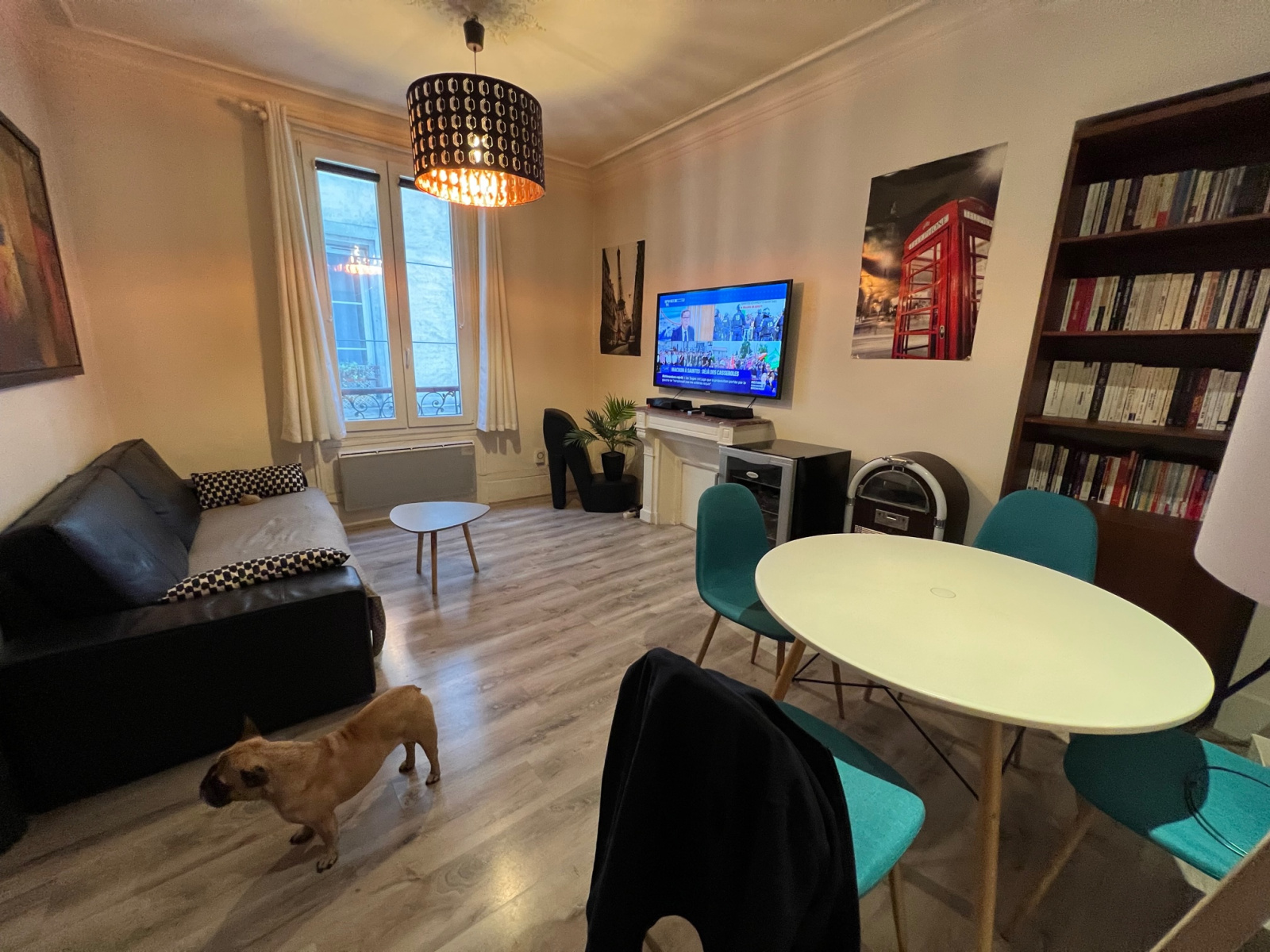 C'est un 2 pièces sans perte de place , traversant à proximité du Marché Saint pierre , il est orienté sud ouest et donne sur une courette calme . Il y a une belle hauteur sous plafond ,des moulures, une cheminée , du double vitrage , une cave complète ce bien .