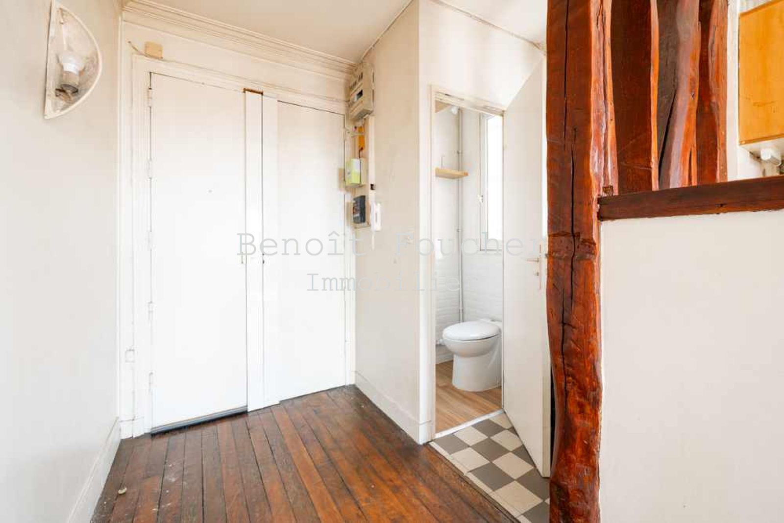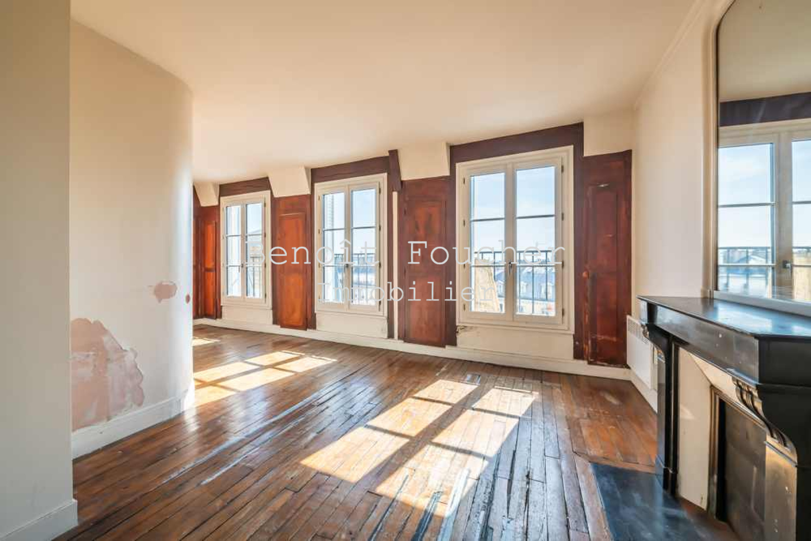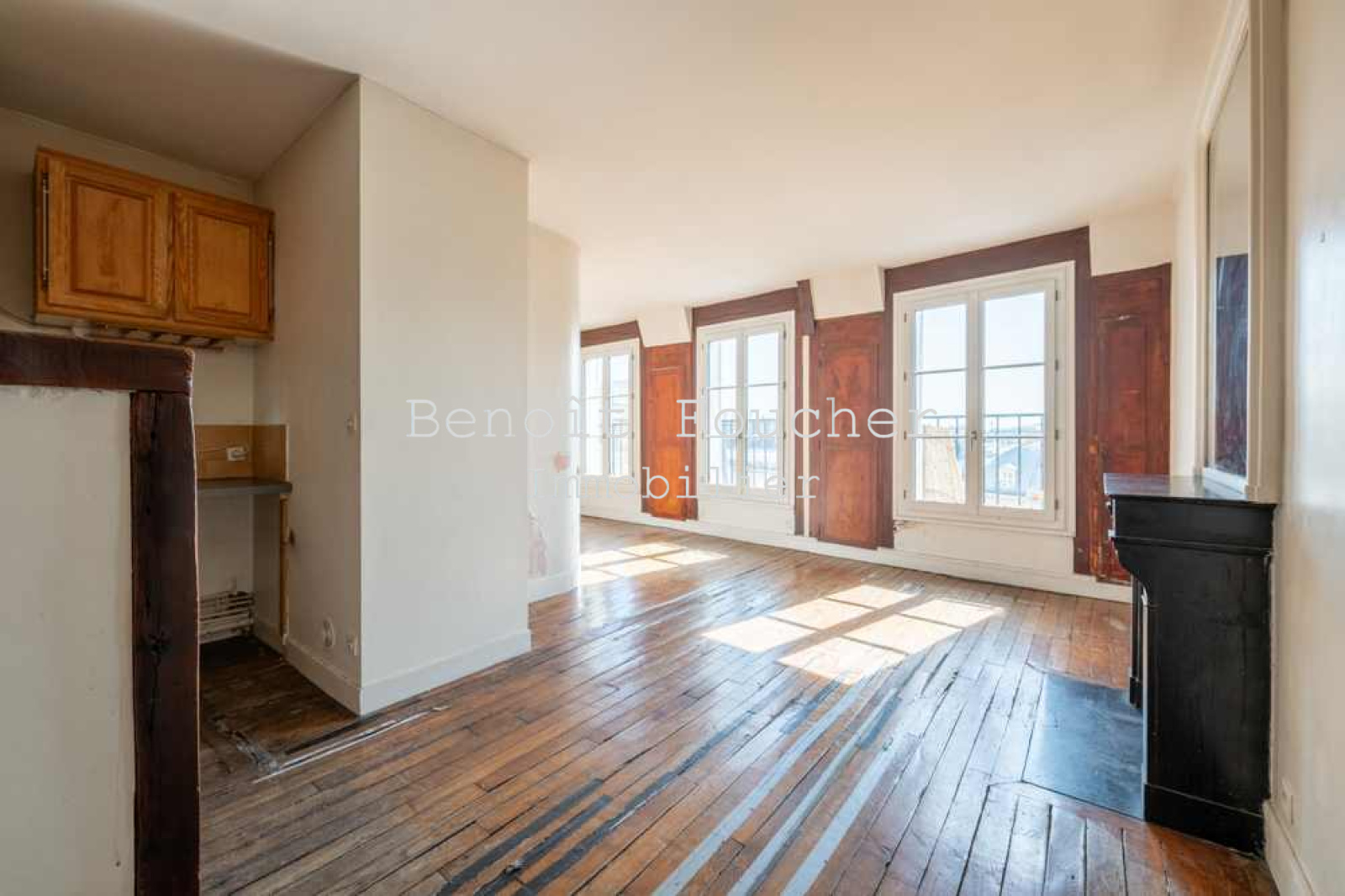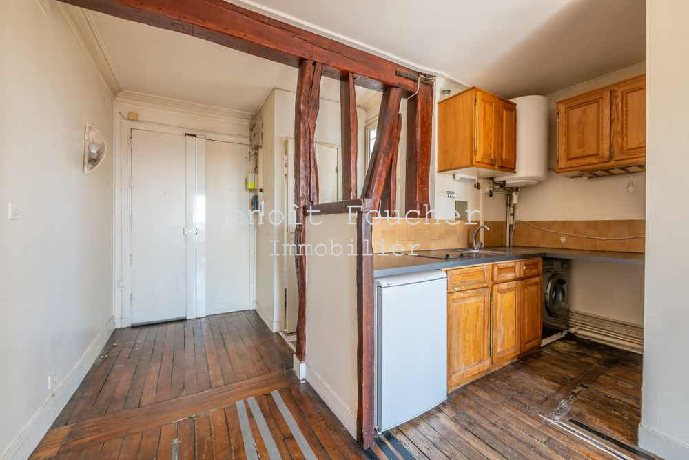 Paris Centre, Bonne Nouvelle, appartement deux pièces de 42m2 au 6ème et dernier étage avec ascenseur (jusqu'au 5ème) dans un bel immeuble 1860. Baigné de lumière, cet appartement au plan optimal se compose d'une entrée, un séjour avec un espace cuisine, une chambre, une salle de bain et des WC séparés. Des travaux sont à prévoir mais cet appartement offre de belles prestations : vaste séjour avec ses trois grandes fenêtres récentes (double vitrage et huisseries bois) et ses balconnets, parquet, poutres, cheminée et belle hauteur sous plafond.