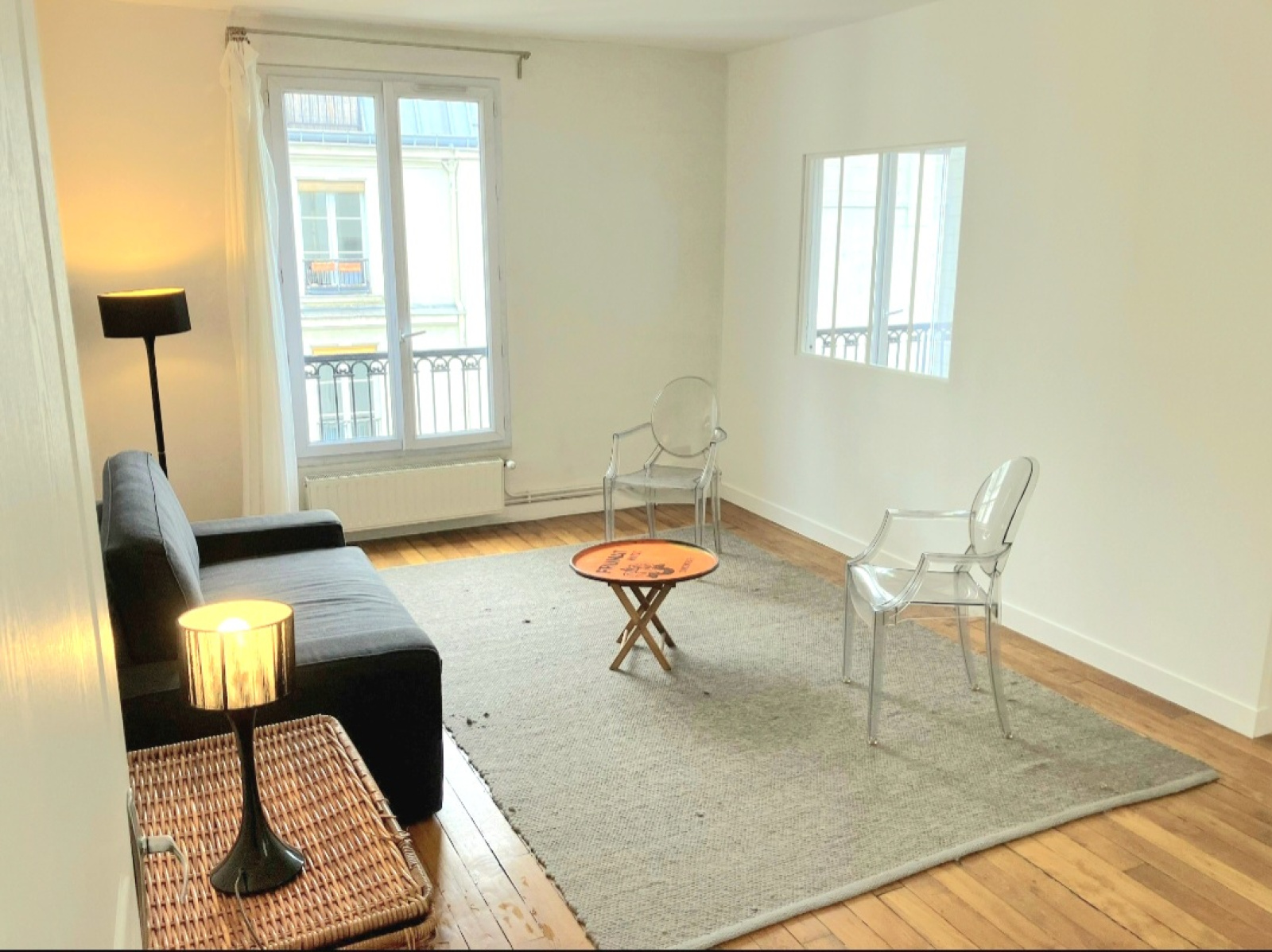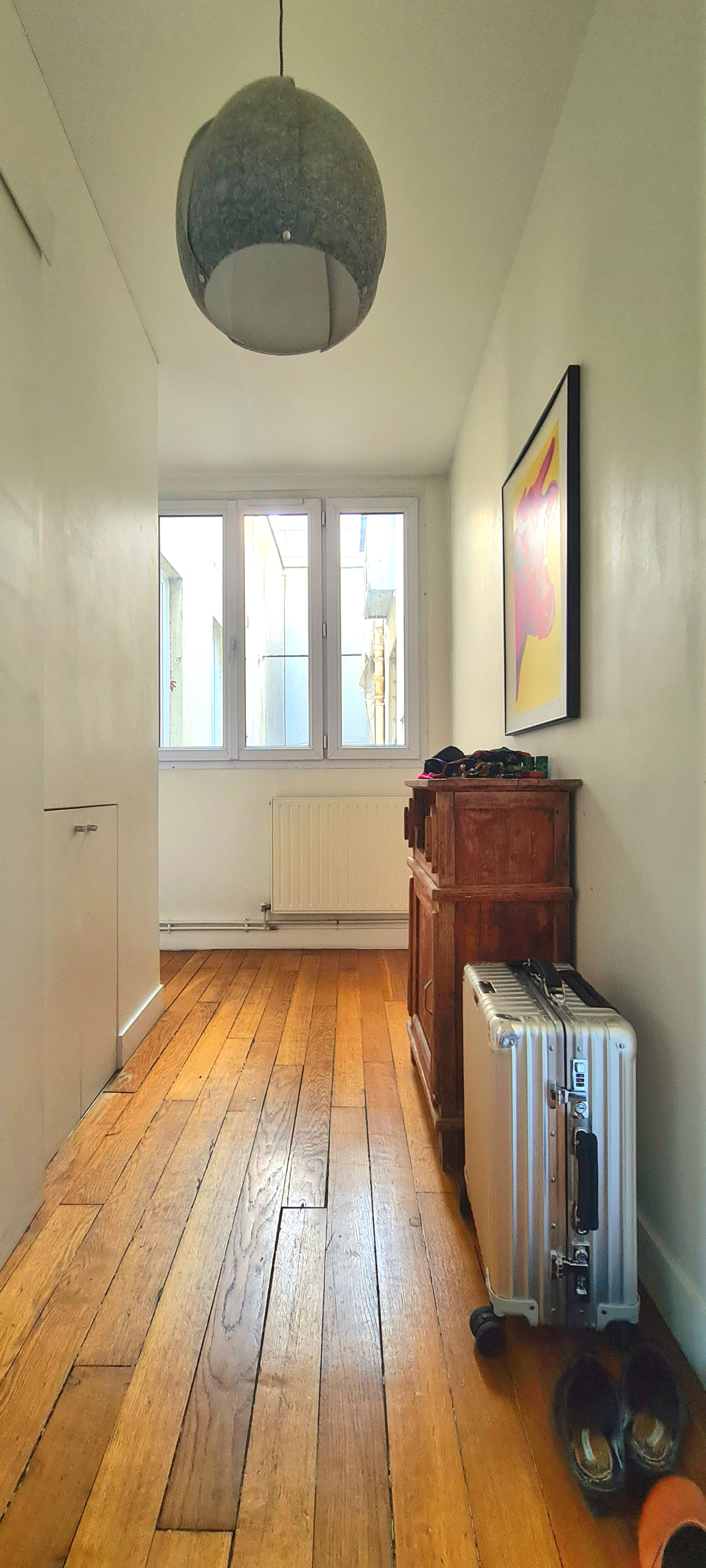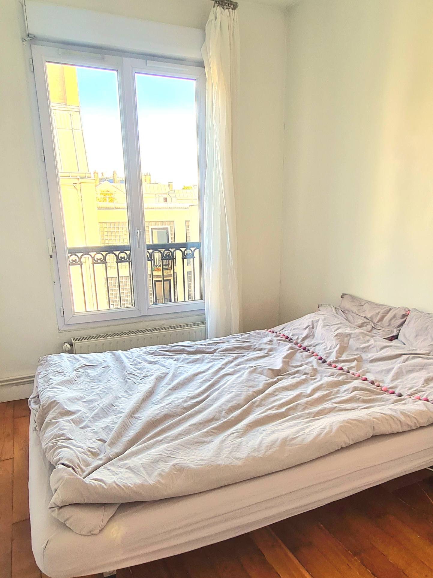 XVIIIème -Goutte d'Or - Square Léon : Dans un bel immeuble ancien, charmant 2 pièces au 5ème sans ascenseur, très lumineux et au calme, avec vue sur les toits donnant sur une grande cour.Sa surface est d'environ 43,1 m² (43.65 au sol) avec un plan très bien exploité: Il se compose d'un grand séjour (20 m2 environ) , d'une chambre, d' une belle cuisine séparée et équipée, d'une salle de douche,d'un wc. Il est possible de créer une deuxième chambre en faisant une cuisine ouverte dans le séjour. Double vitrage, parquet.Une cave complète ce bien. Local à vélo, digicode. Métro Barbès- Rochechouart .Charges annuelles 1200 €, (2 lots). Honoraires 3% charge acquéreur (RSAC 352137756- Paris)