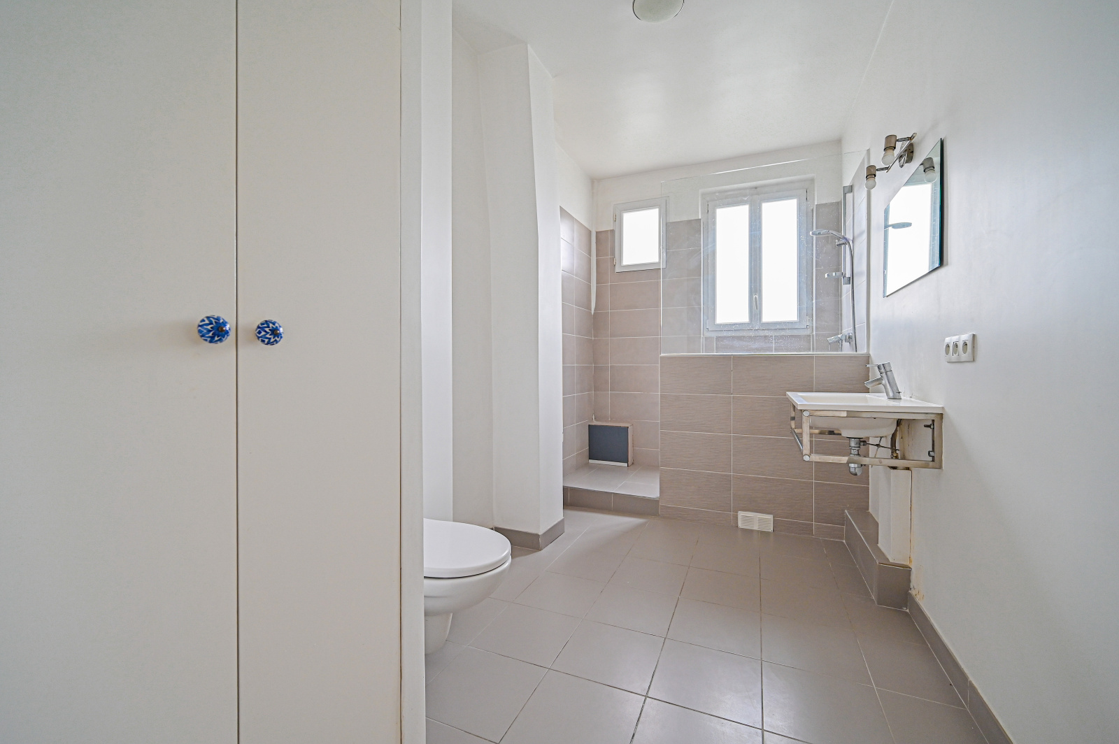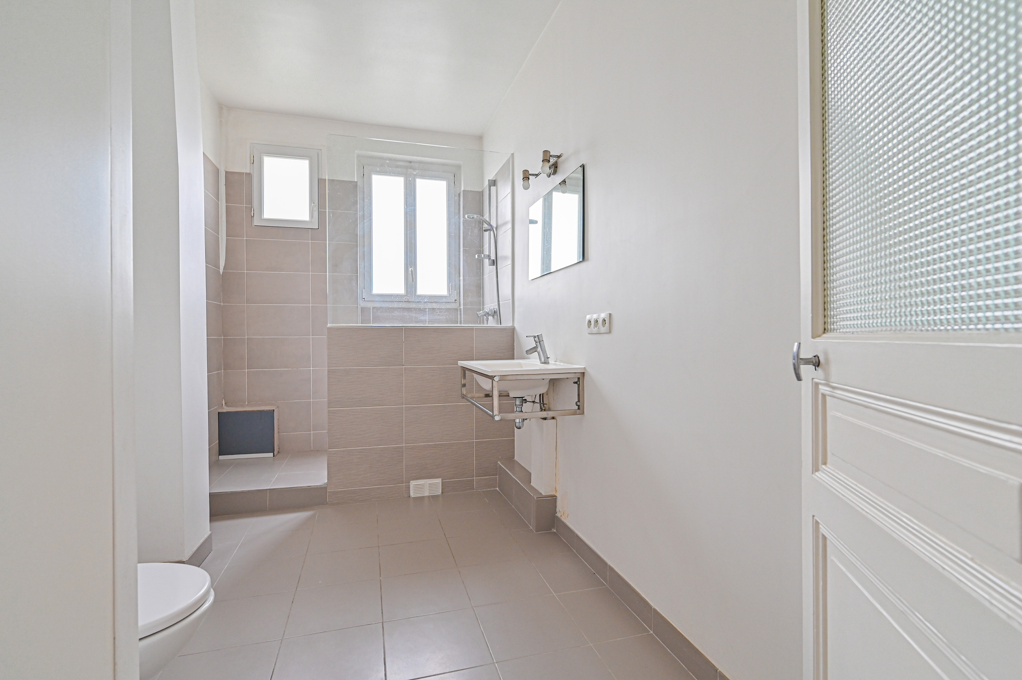 L’appartement traversant se compose d’une entrée desservant une grande salle de bain avec WC, une chambre, un dressing, et une pièce de vie baignée de lumière.