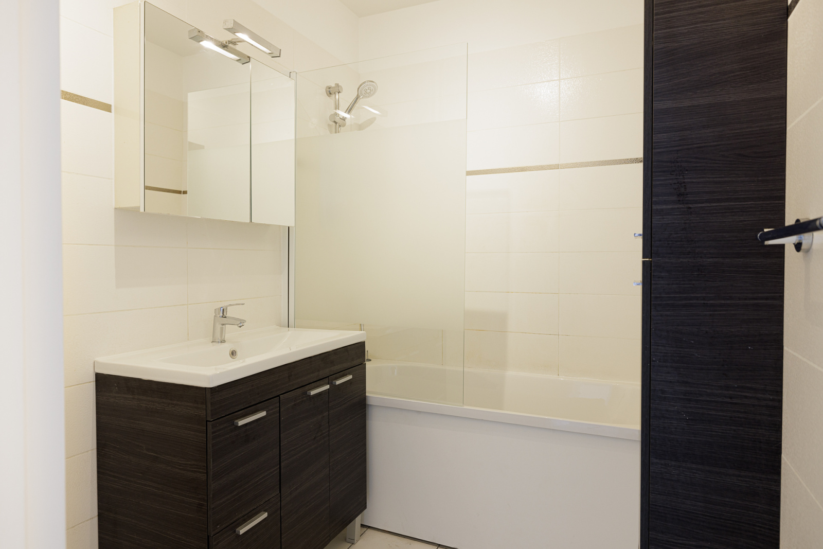 Il se compose d’une entrée en étoile, d’un salon (22 m2), d’une cuisine (6 m²), d’une chambre (12 m²), d’une salle de bain (4 m2) et d’un WC séparé. Excellente distribution. Une cave en sous-sol.