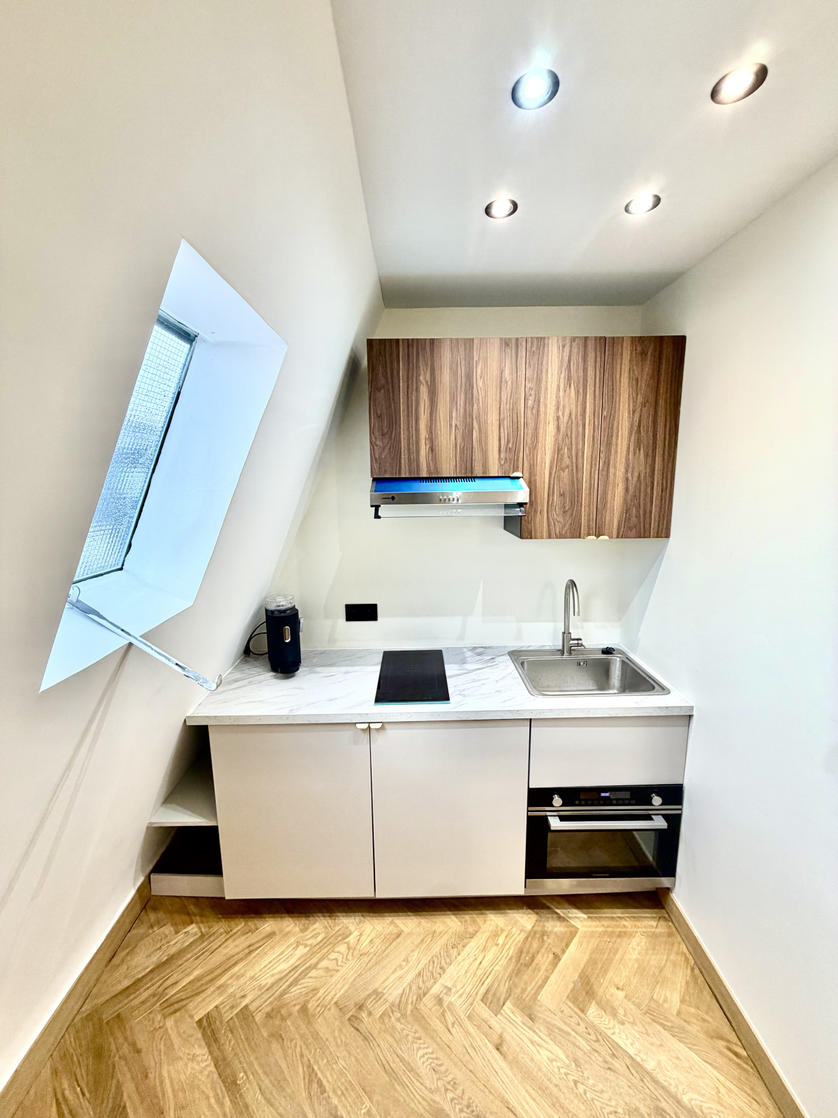 •Parquet contemporain en point de Hongrie dans l’ensemble de l’appartement.