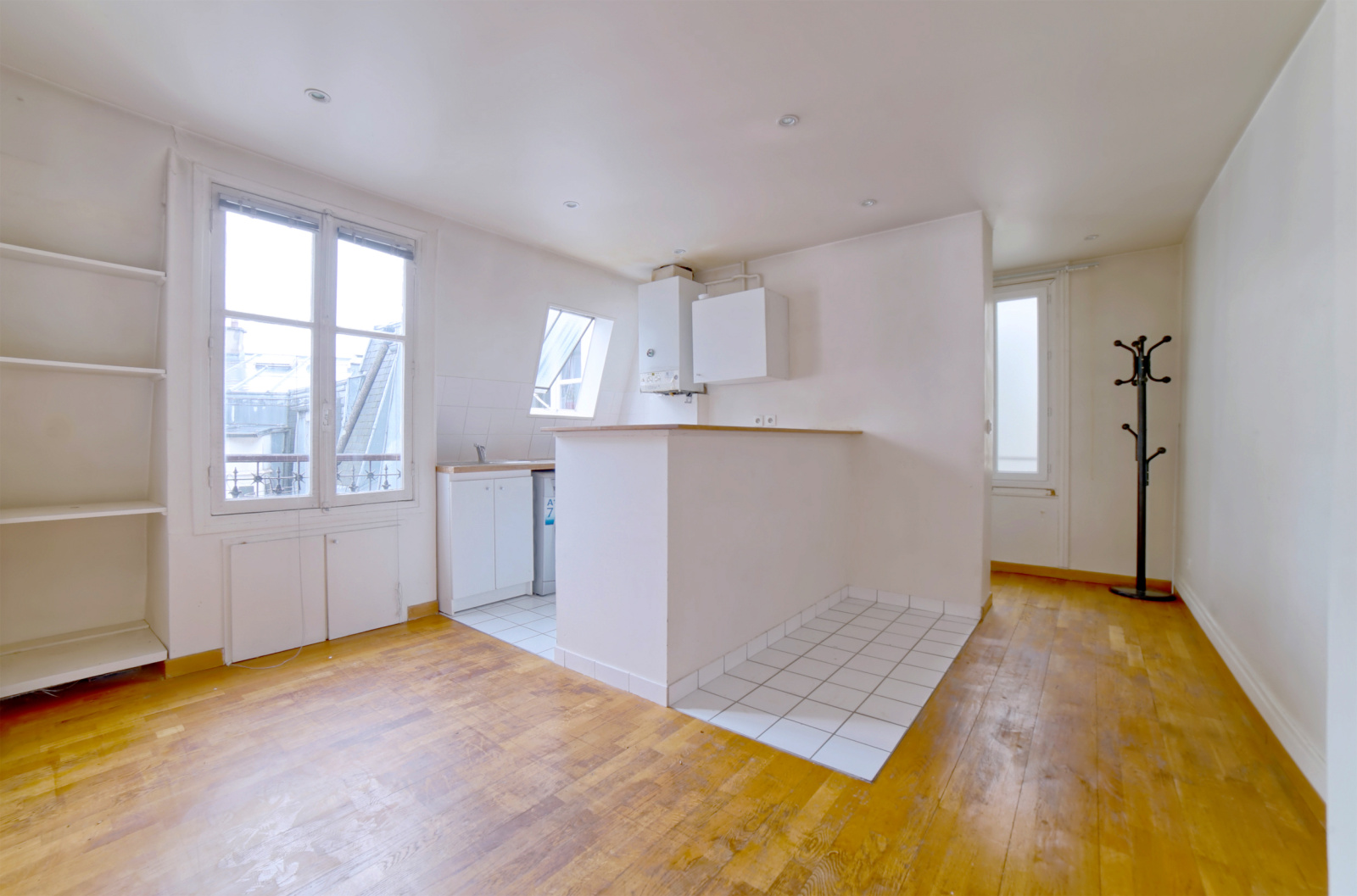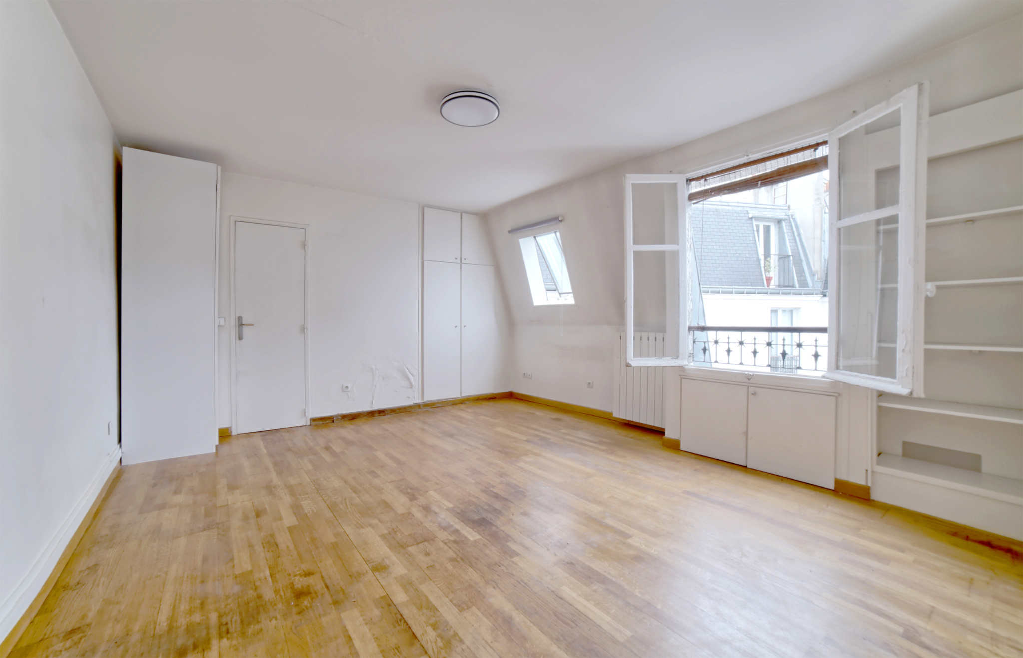 Paris 7ème arrondissement, au 6ème et dernier étage d’un immeuble typiquement parisien et qui plus est historique pour avoir appartenu à la Société du Louvre, je vous propose de découvrir ce F2 de 42,27 m2.