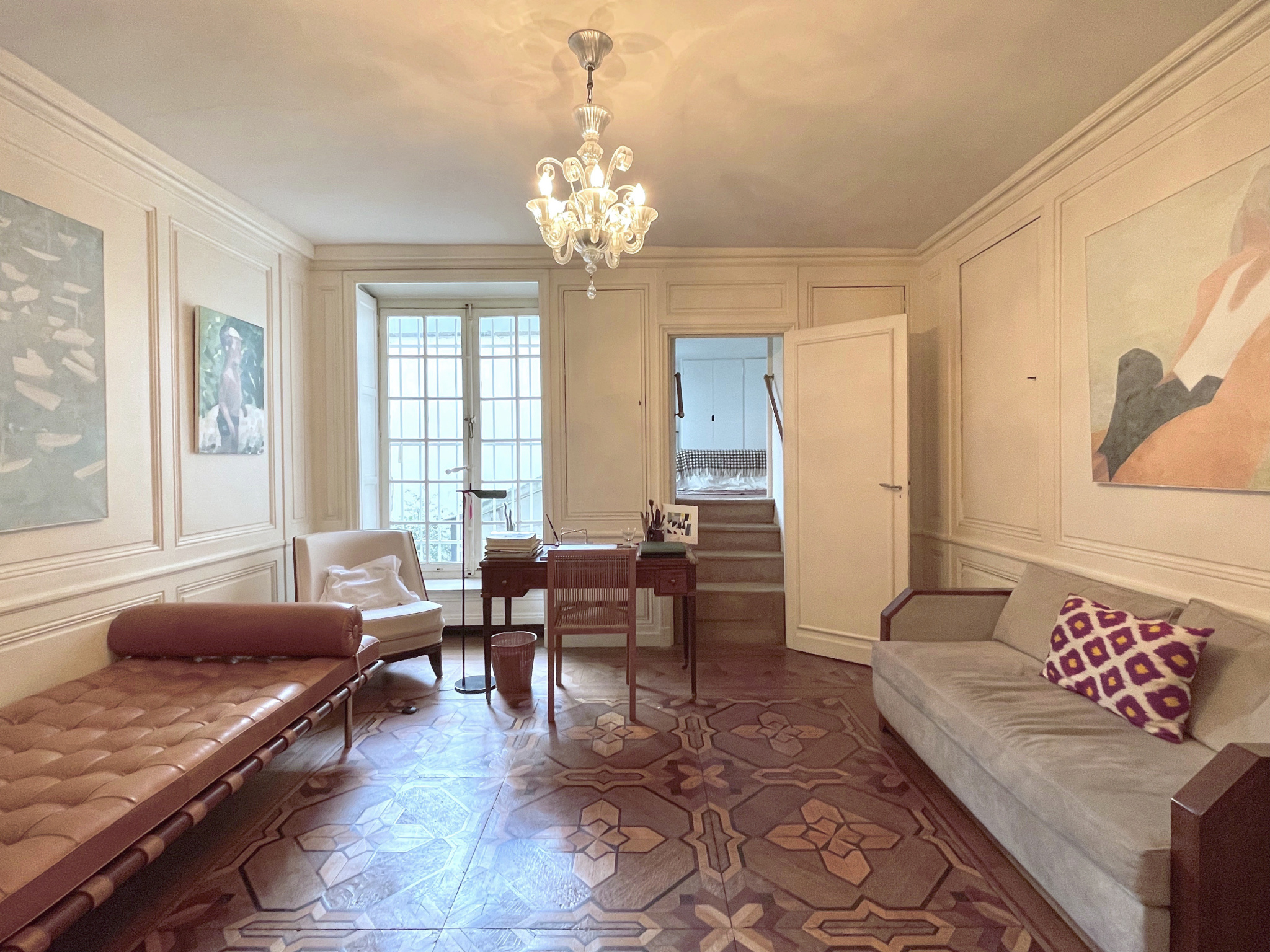 AU COEUR DE SAINT-GERMAIN DES PRÈS 75006, APPARTEMENT DE CHARME DE 78 M2 AU SOL AU CALME PARIS VI - QUARTIER DE LA MONNAIE - MAZARINE, Yanna Fournier immobilier EXPERTIMO vous propose, appartement T3 de charme, dans un immeuble du XVIIIème siècle, au calme, appartement 68,50 m2 Loi Carrez, (78m au sol), sur deux niveaux. Après avoir franchi la porte cochère de l’immeuble équipée d’un d’un interphone, le porche couvert vous donne un accès direct à l’appartement par une porte blindée. Au rez-de-chaussée une entrée de 6 m2, avec toilettes séparées, donne accès par un escalier intérieur à l'étage supérieur. Le palier dessert la cuisine aménagée et équipée, un beau salon séjour avec deux grandes fenêtres, exposé Sud-Ouest et de multiples rangements, une salle de bain avec douche et toilettes. Côté cour, un deuxième salon (bureau ou chambre) avec un magnifique parquet Versailles et boiseries d'époque. Dans son prolongement, séparée par une porte et quelques marches, une chambre sur cour avec placard et cabinet de toilette. Pour compléter ce bien une grande cave de 14m2 environ. Appartement Idéalement situé, avec multiples possibilités d'aménagement. Quartier calme, copropriété sécurisée avec gardienne, professions libérales autorisées. Proche d’Odéon, du pont des Arts, du Boulevard Saint-Germain, bus et stations de métros proches. Coup de cœur assuré ...