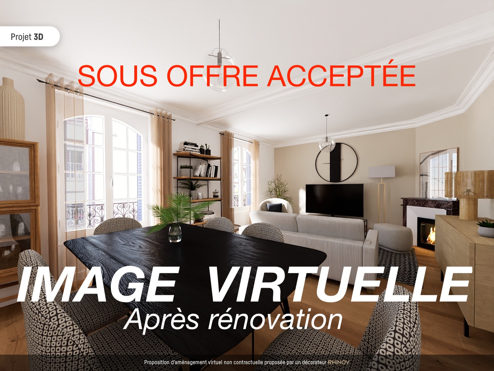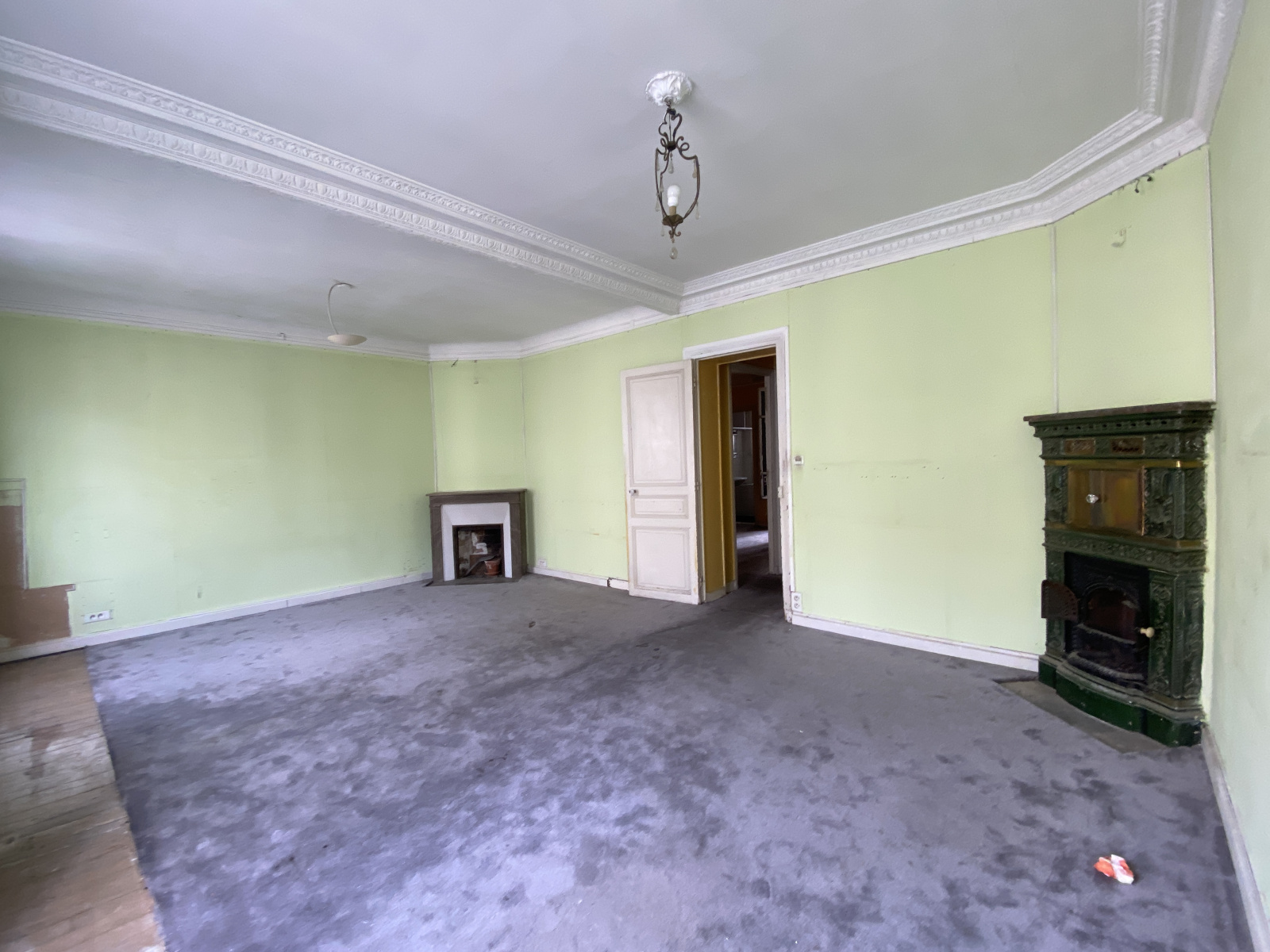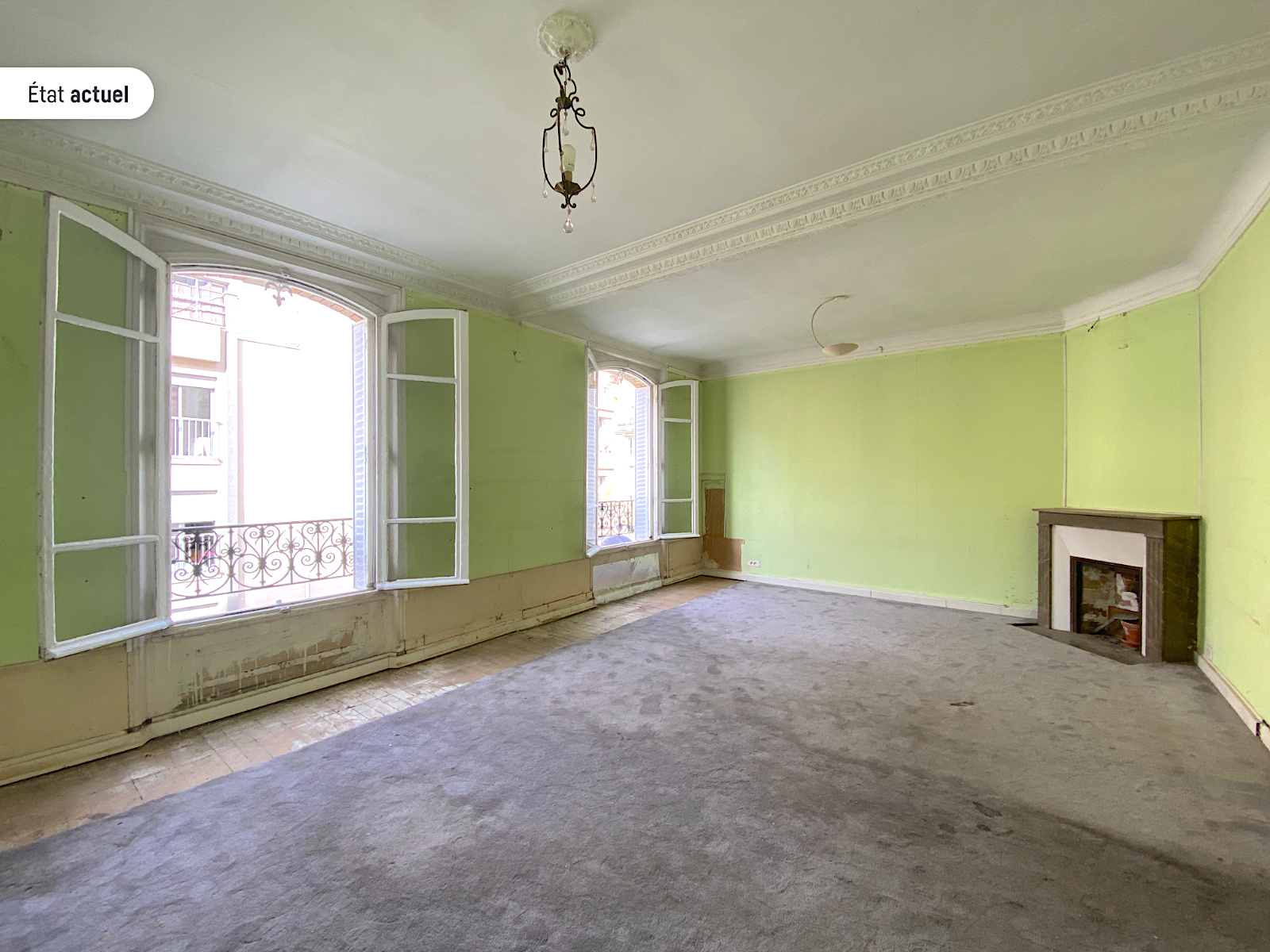 Beaucoup de POTENTIEL pour cet appartement au 3ème étage avec ascenseur qui, une fois rénové, aura un charme indéniable avec ses moulures au plafond et de jolis détails comme ses deux cheminées (une en marbre et l'autre de style alsacien en fayence). Le salon est très lumineux avec deux grandes fenêtres donnant sur la rue calme. (voir image virtuelle du salon une fois rénové)