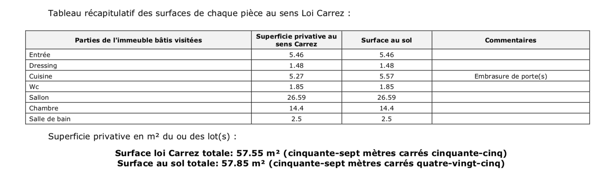 Un réagencement pourrait être possible en déplaçant la salle d'eau pour avoir un grand dressing dans la chambre et une salle de bain avec wc. (voir plan)