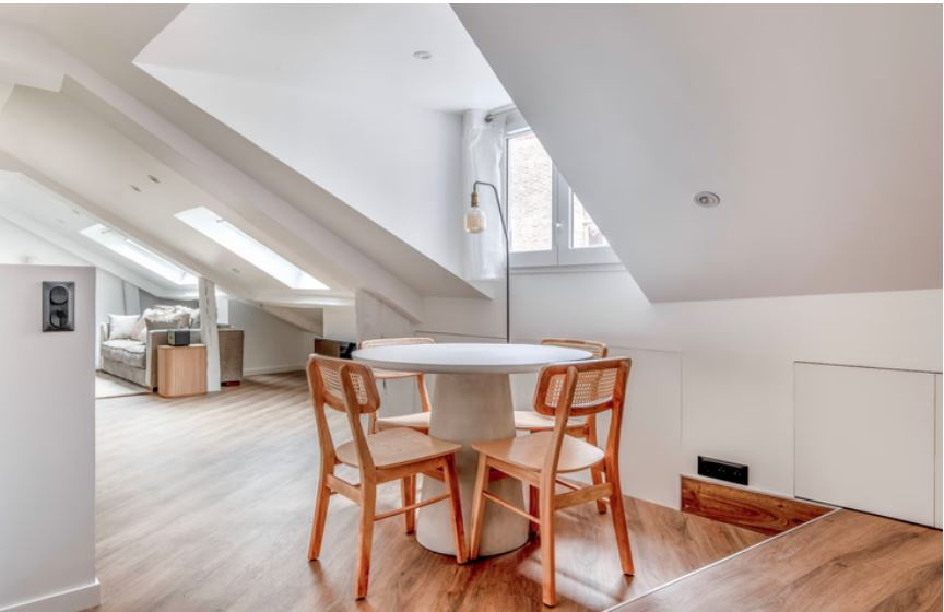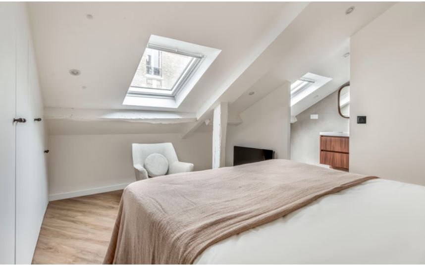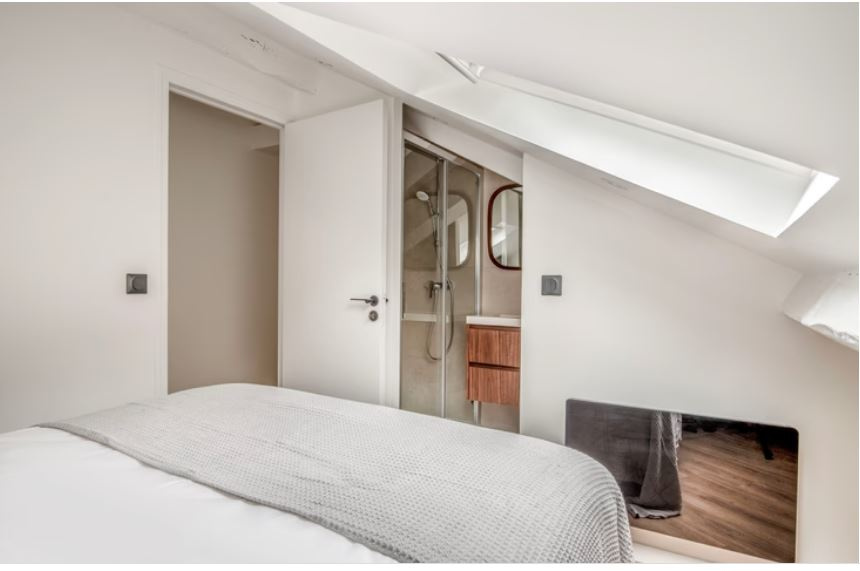 IIIème -Enfants Rouges / Turenne :Dans un bel immeuble ancien, à proximité du Carreau du Temple, vous serez charmé par ce 3 pièces au calme et lumineux, orienté Sud-Ouest sans vis-à -vis, de 60 m² pondérés ( 41,08 m² loi Carrez et 82,04 m² au sol) avec un plan très bien exploité.Il se situe au 4ème et dernier étage sans ascenseur et se compose d'un séjour, d'une belle cuisine équipée ouverte ,de 2 chambres avec chacune leur salle de douche,d'un wc.Placards,dressings sur mesure,double vitrage, parquet, porte blindée.Rénové entièrement avec des matériaux de qualité.Digicode, interphone. Métro :Filles du Cavaire ou République .(1 lots). Honoraires 3% charge acquéreur (RSAC 352137756- Paris)