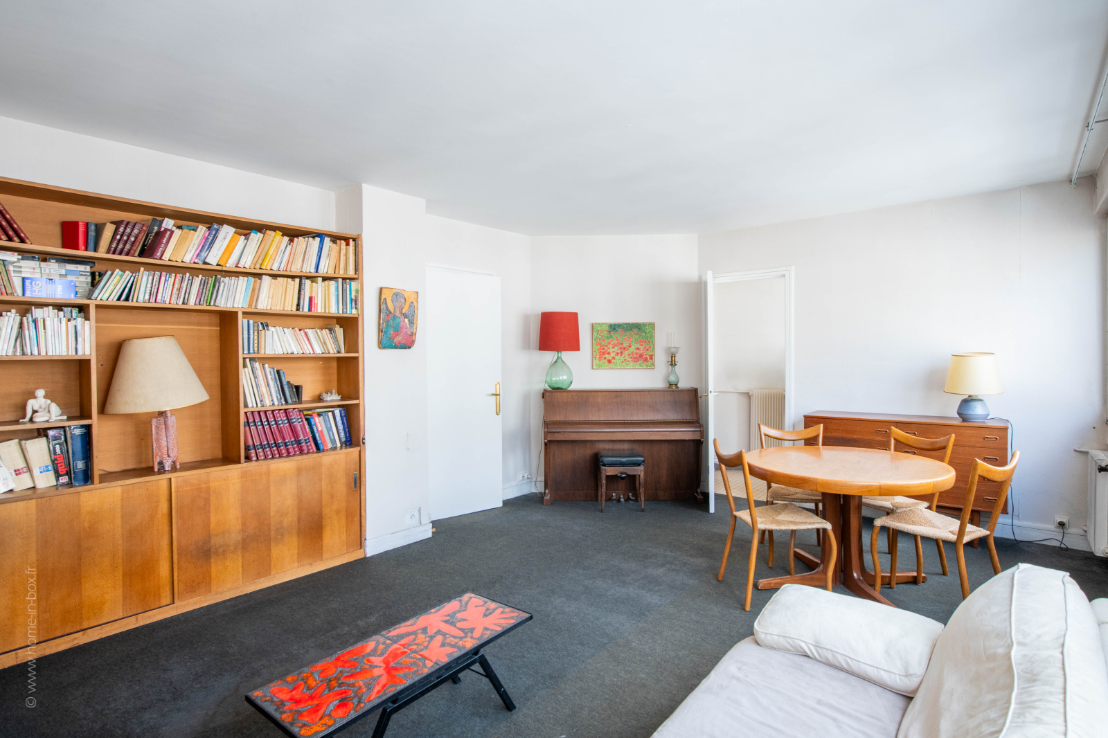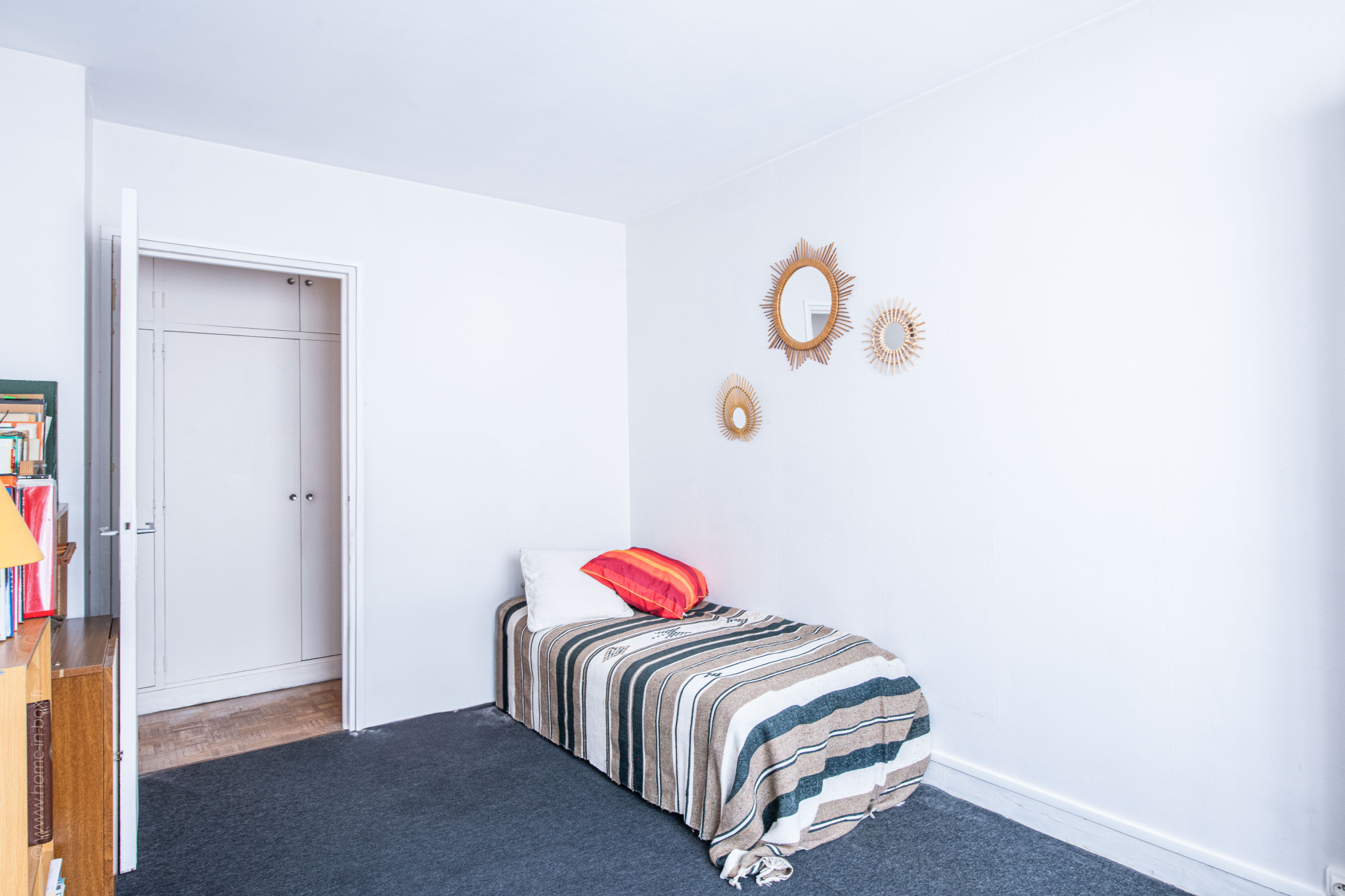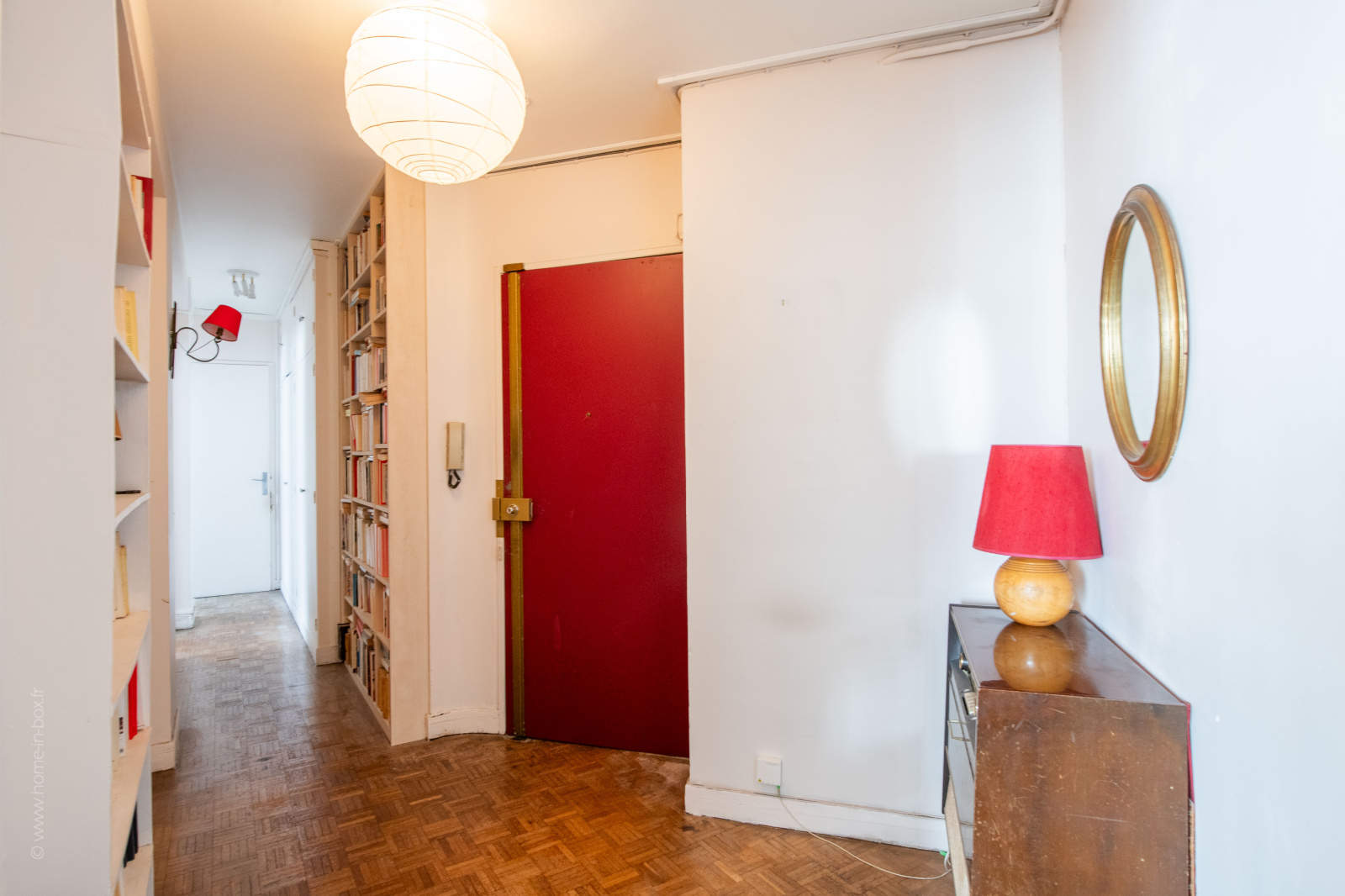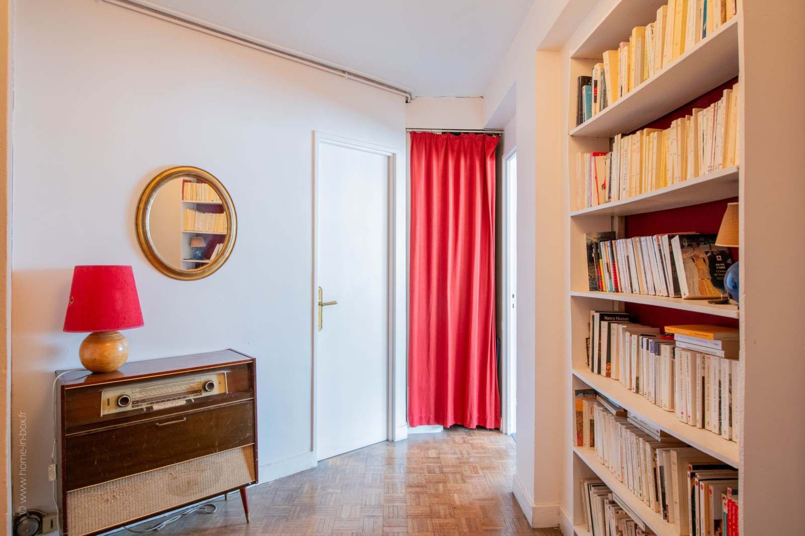 L’espace nuit comprend deux chambres et une salle de bain. Le couloir dispose de grands placards intégrés et de 2 bibliothèques.