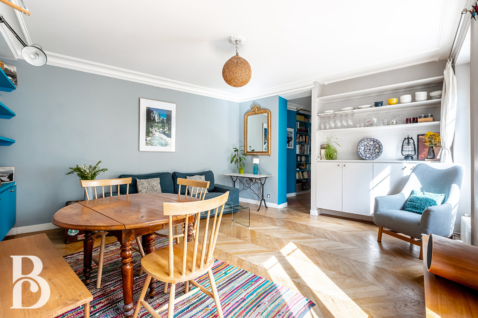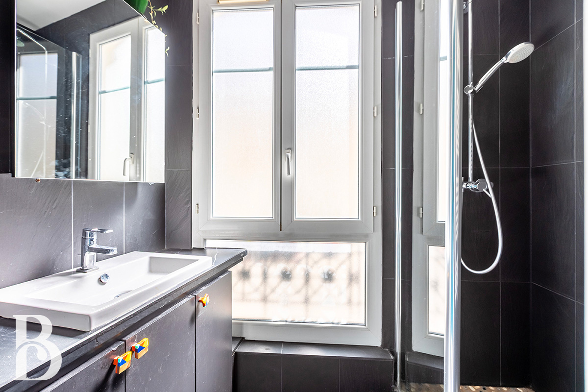 L’appartement dispose de tous les attributs de l’ancien (parquet en point de Hongrie et moulures). Enfin, la copropriété est conviviale et les espaces communs bien entretenus.
