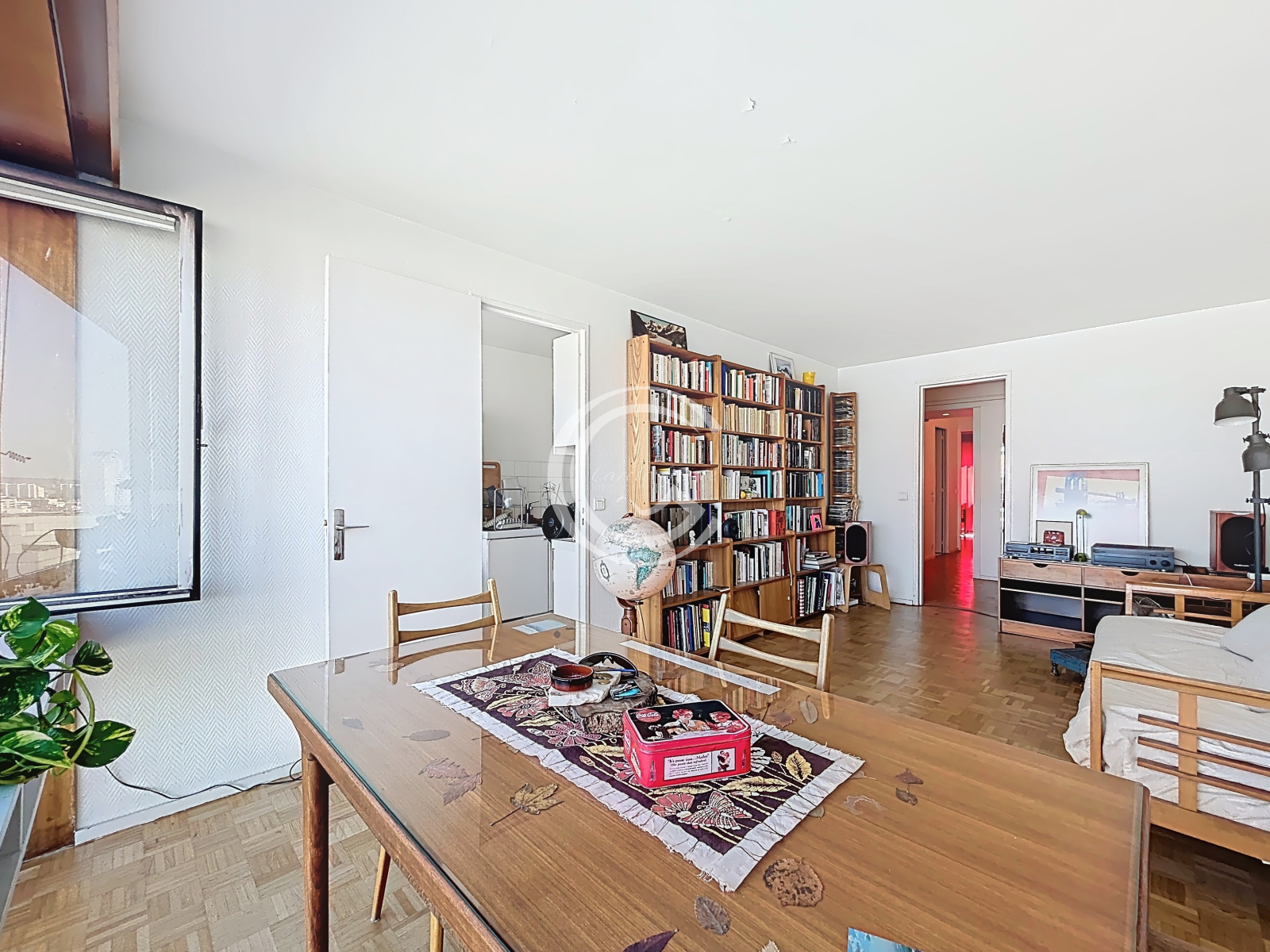 > L'appartement se compose d'une entrée avec rangements, d'un séjour baigné de lumière exposé OUEST / NORD OUEST, d'une cuisine attenante (cuisine ouverte possible), de 3 chambres, d'un dressing, d'une buanderie, d'une salle de bains et de wc séparés. Meubles et tablettes Dubuisson d'origine en très bon état. Une cave complète le bien. Les résidents bénéficient également d'un local vélo, d'un jardin potager partagé, d'un gardien et de la possibilité de louer ou d'acquérir un emplacement de parking au sein de la résidence.