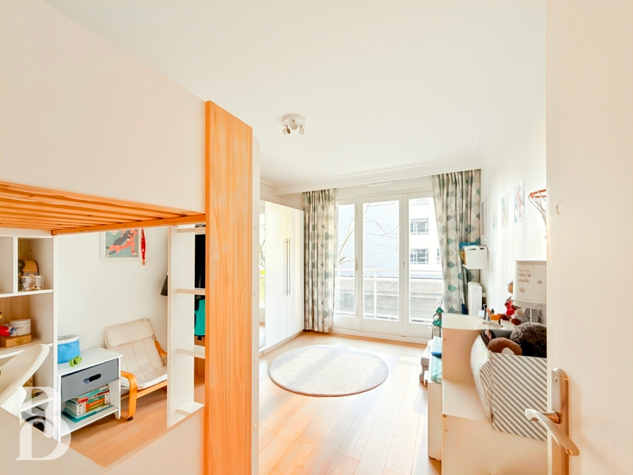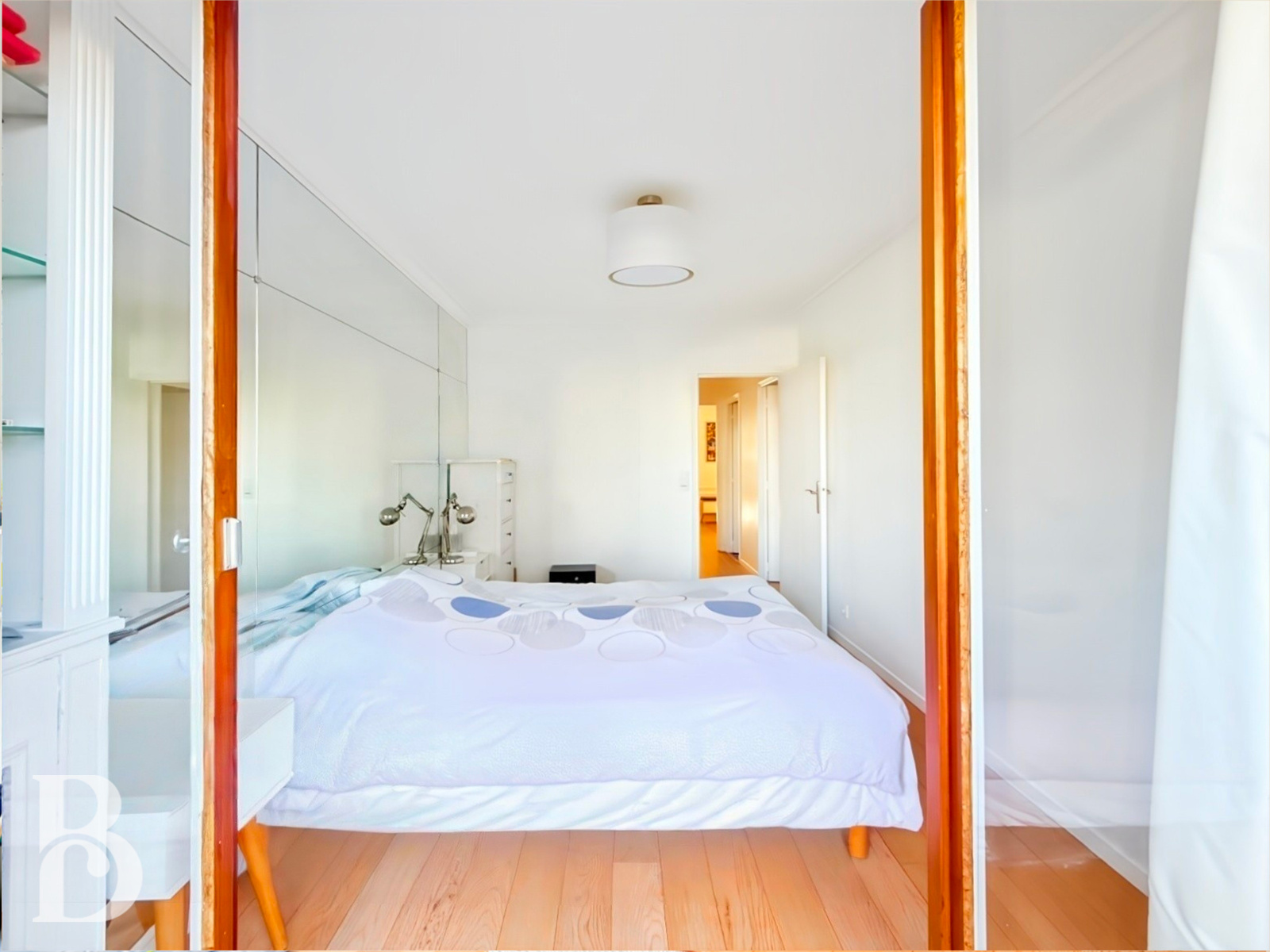 La partie nuit comprend 3 chambres confortables situées au calme, donnant toutes sur un balcon filant qui offre une vue également dégagée (vue Tour Eiffel). L'appartement dispose de 2 salles de bains, 2 toilettes dont un indépendant, ainsi que d'une pièce complémentaire, pouvant faire office de bureau, chambre d'appoint ou dressing.