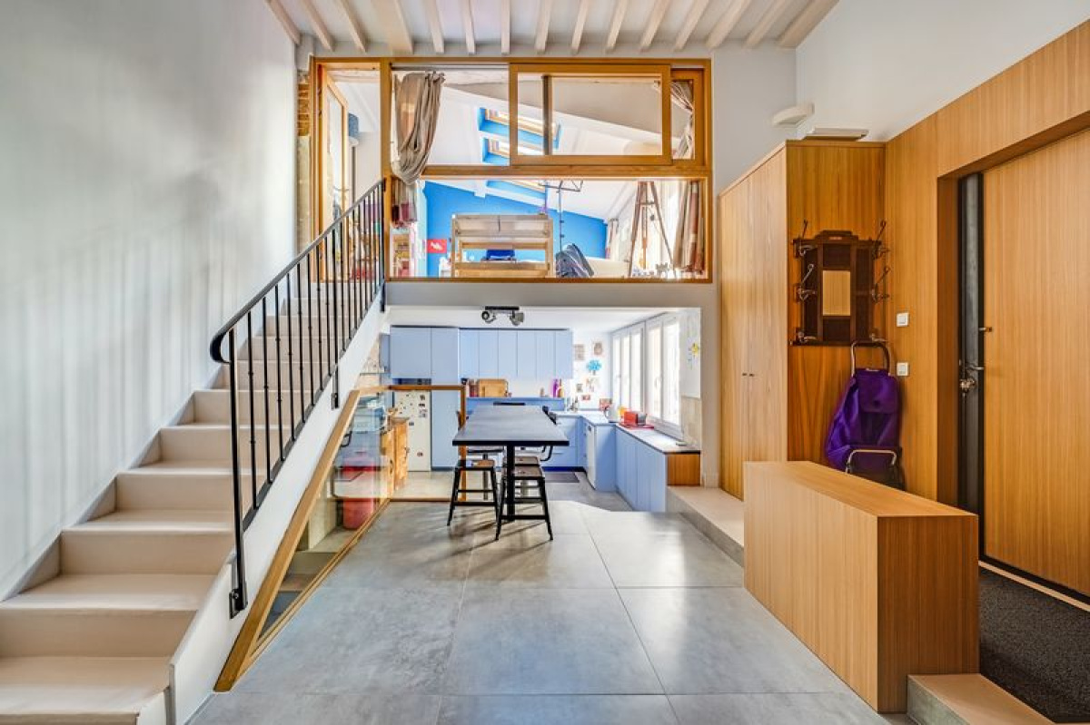 Développé sur 3 niveaux, il séduit immédiatement par ses volumes spectaculaires, dont près de 6 mètres de hauteur sous plafond dans la pièce de vie.